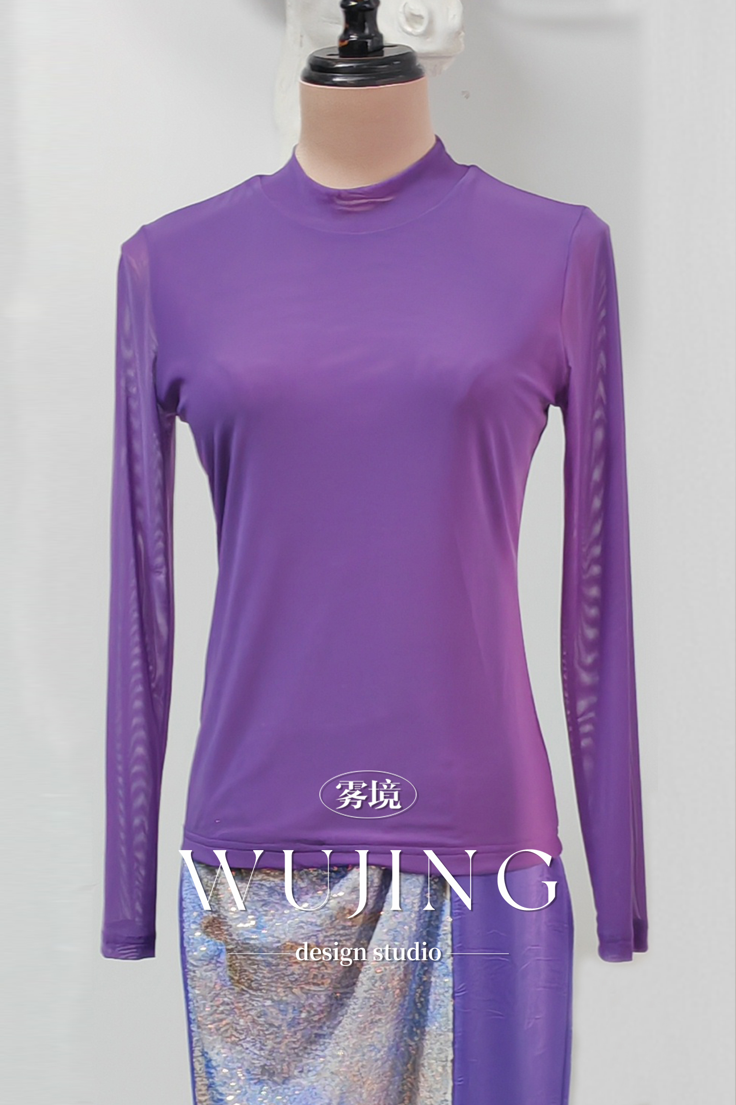 3205149 紫金梦雨 定制高弹网纱内搭上衣 雾境
