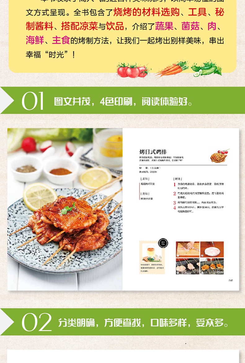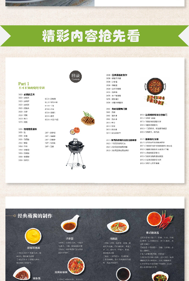 《烧烤原来这么简单》收录了*人气的近百种美味烧烤,以简单易懂的图文方式呈现。全书主要包含了烧开的材料选购、烧烤工具、秘制酱料、配餐凉菜、搭配饮料等基层知识。按爽脆素食、美味肉类、鲜美水产、主食小吃、甜点等分类介绍了近130道烧烤配方,贴心的推荐了*适宜搭配的饮料、美酒。让您轻松做烧烤,尽享美味欢聚时刻。