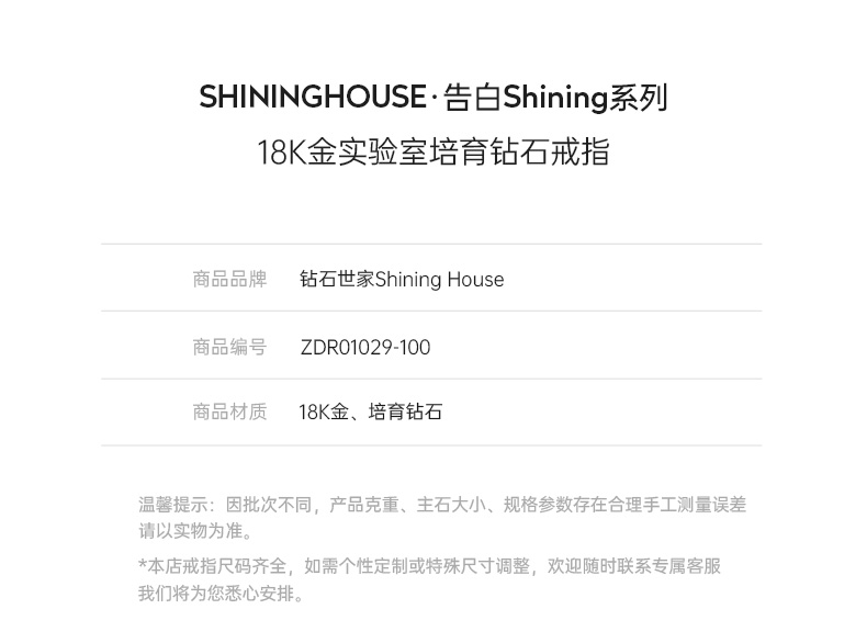 告白·Shining系列 ShiningHouse[培育] 18k金钻石戒指 水滴形1克拉钻人工真钻人造钻石K金戒指时尚钻石戒指卓越匠心奢耀臻献【此商品不支持7天无理由退货退款】