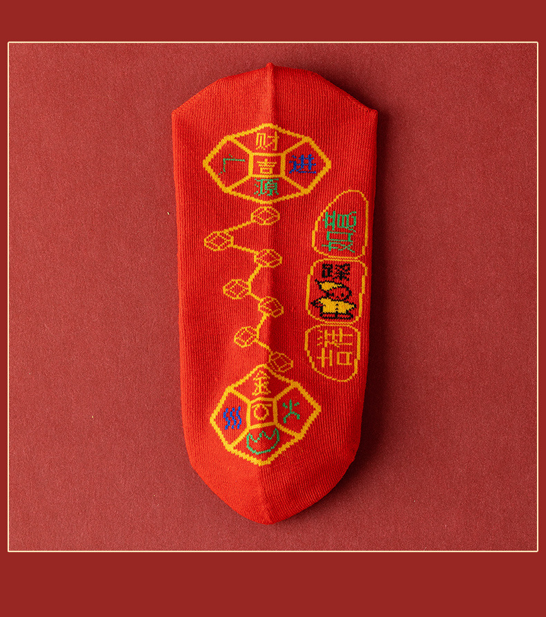【七星红袜子本命年】男女脚踏铜钱结婚鸿运 男士新年鸿运连珠大红袜  商品图4