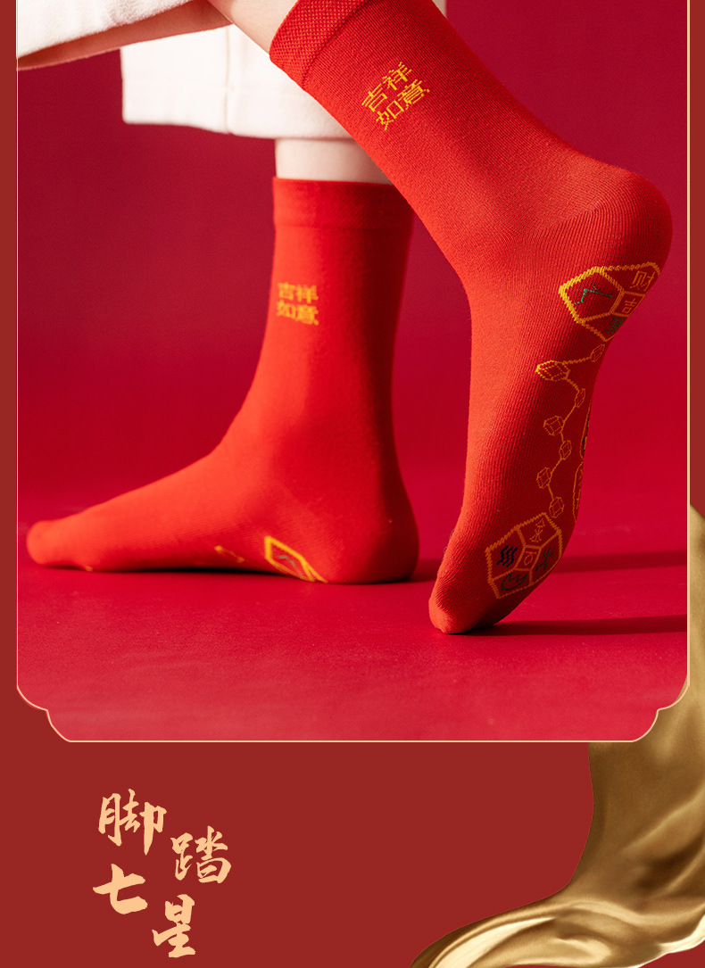 【七星红袜子本命年】男女脚踏铜钱结婚鸿运 男士新年鸿运连珠大红袜
