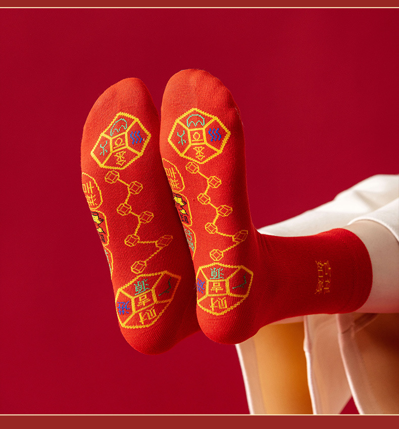 【七星红袜子本命年】男女脚踏铜钱结婚鸿运 男士新年鸿运连珠大红袜  商品图3
