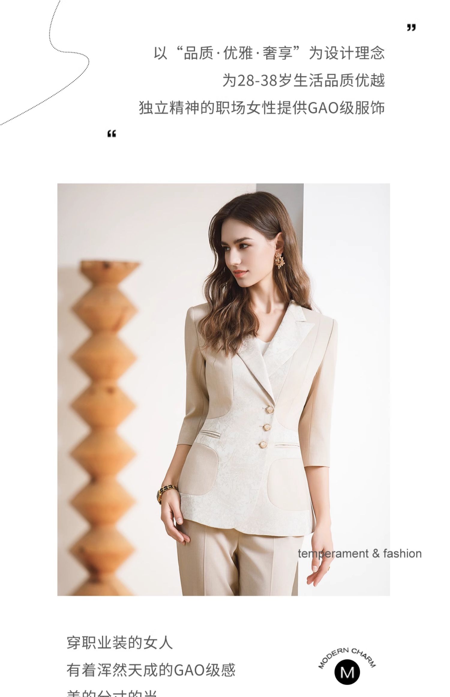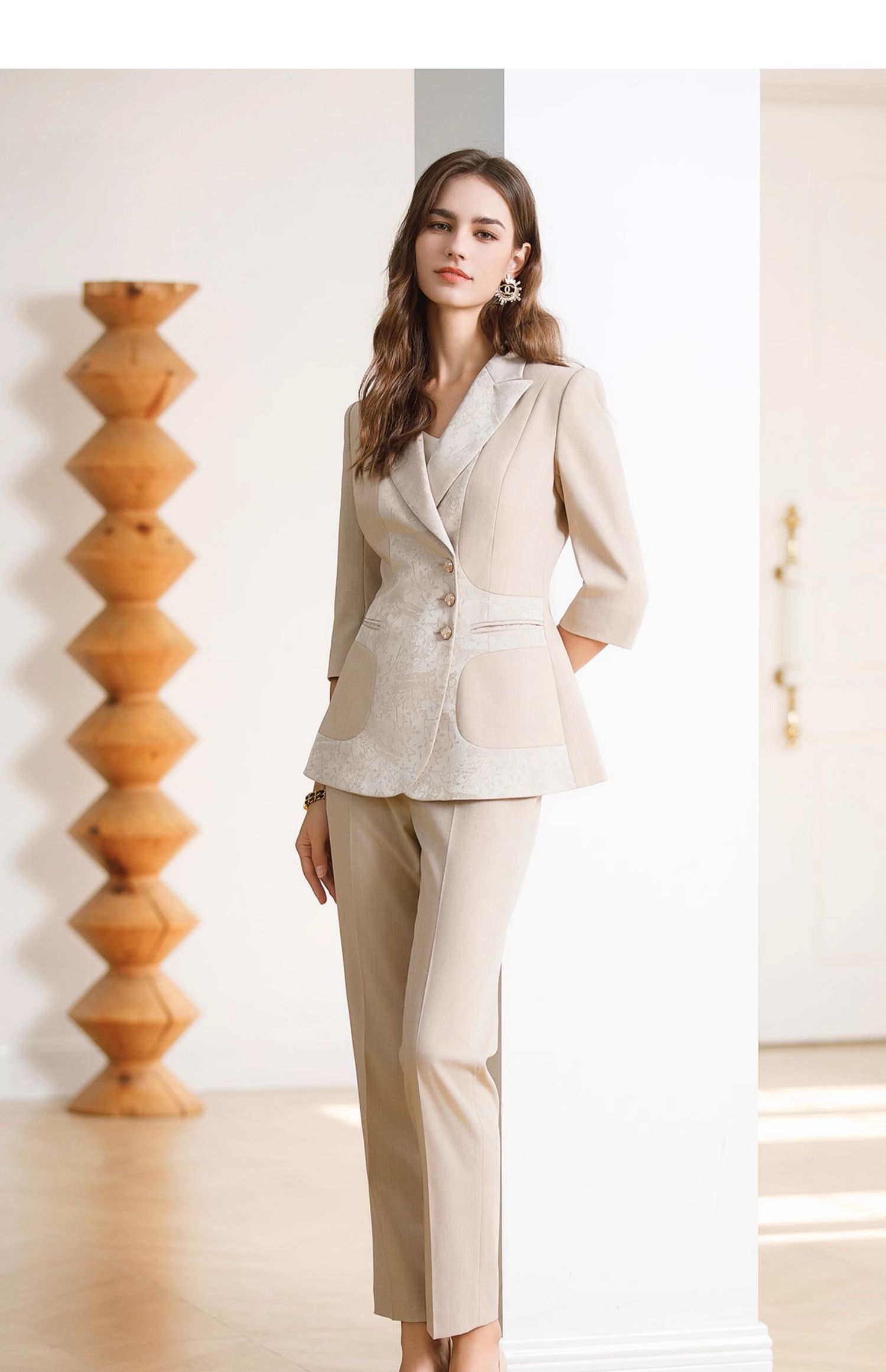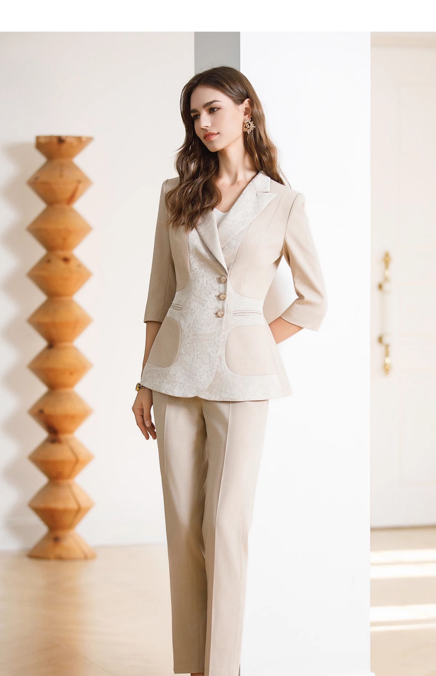 IWY/高级感缎面西装套装女七分袖职业装新中式提花西服正装CP1969