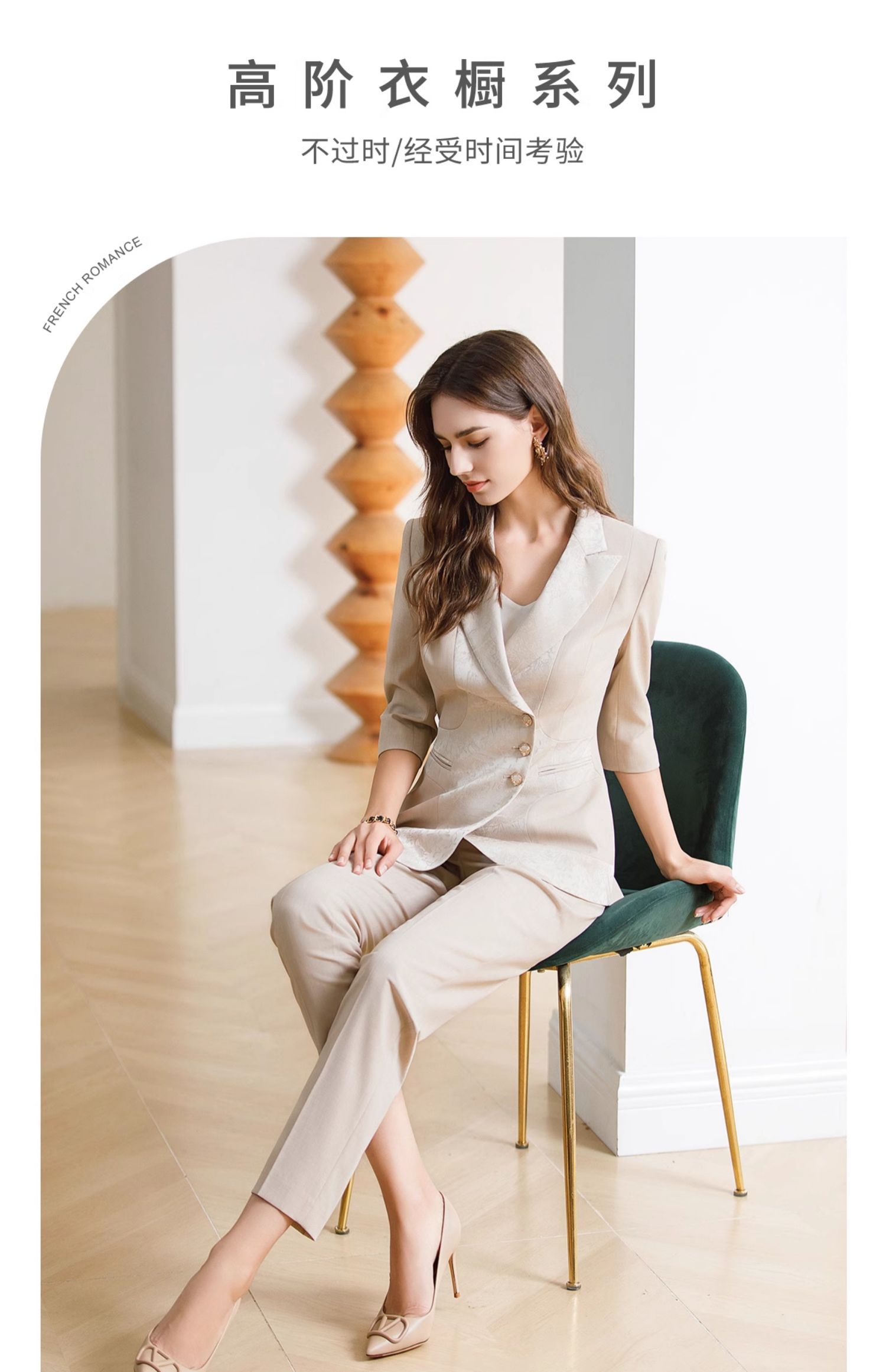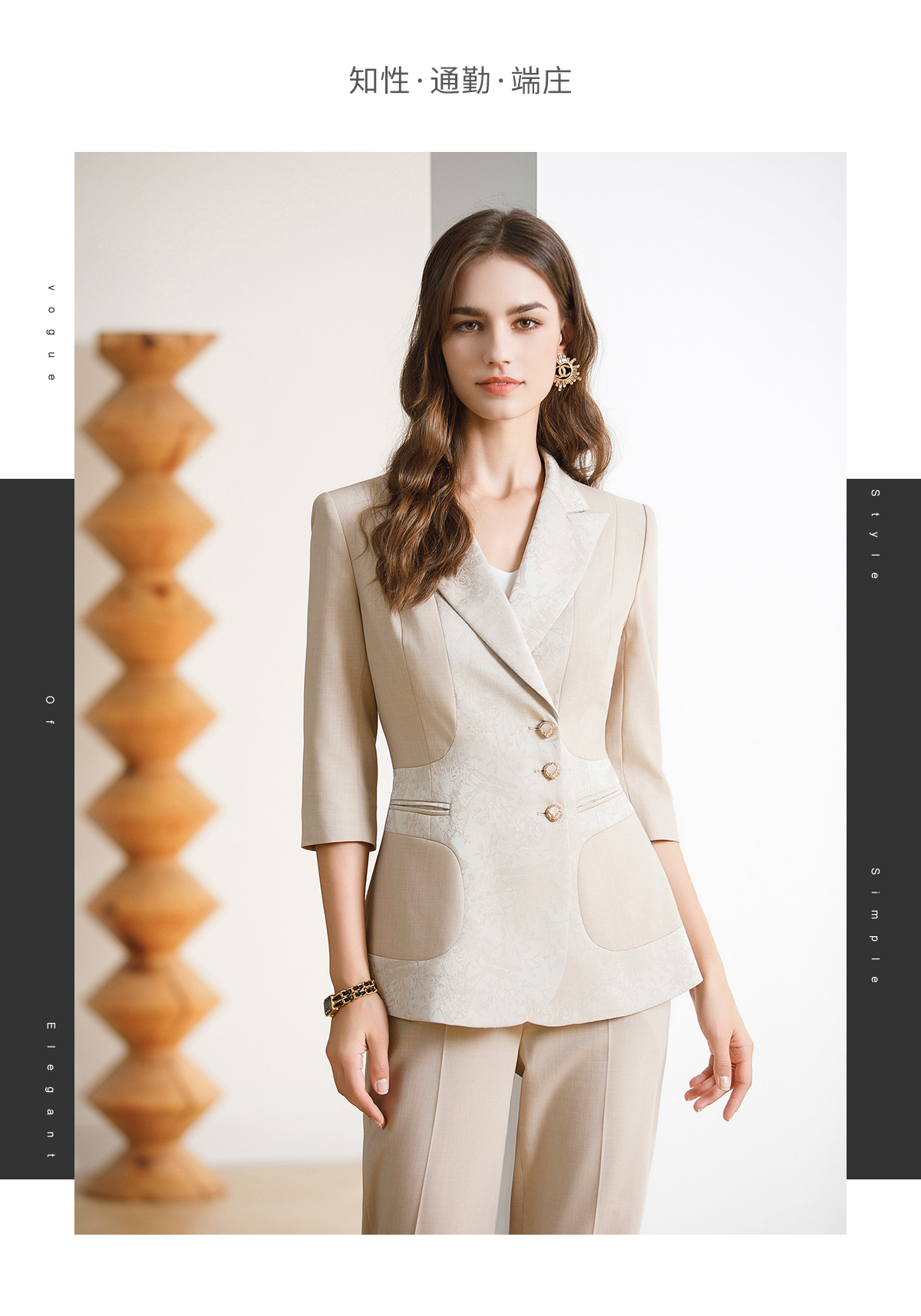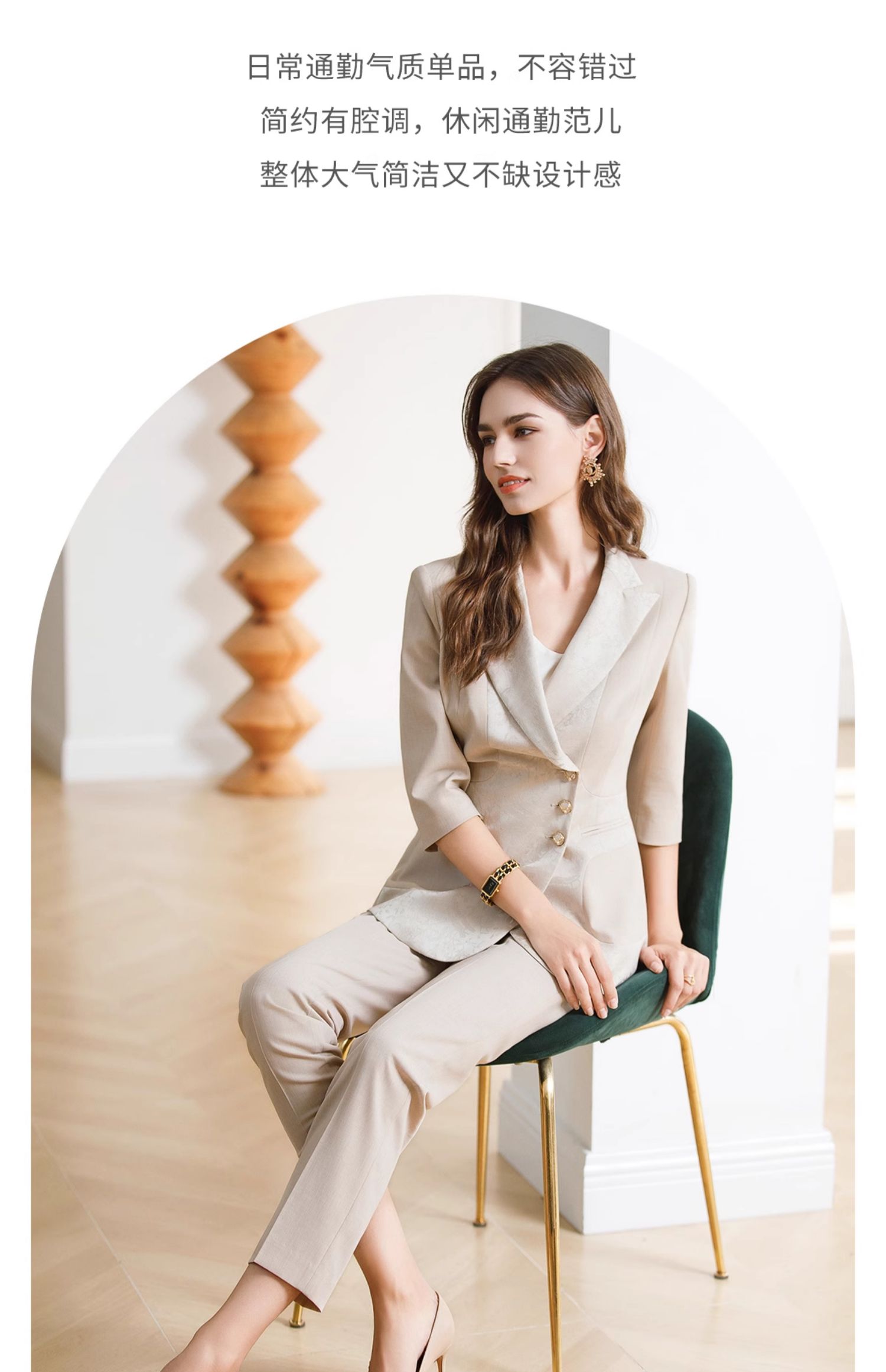 IWY/高级感缎面西装套装女七分袖职业装新中式提花西服正装CP1969