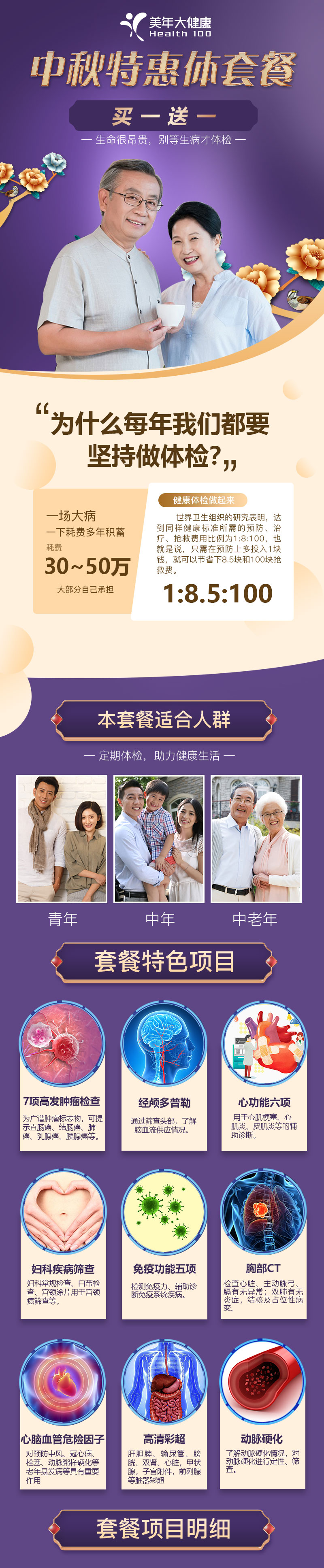 【国庆钜惠 买一送一】美年大健康 深爱浓情套餐 超性价比折扣全身体检 包含胸部CT、心脑血管检测,甲状腺、心脏多部位彩超、免疫功能5、7项肿瘤检查、肝肾功能等