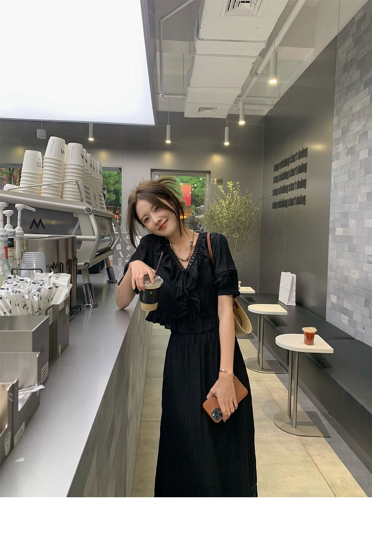 (清仓现货)【社群供V】茶系穿搭一整套约会套装裙夏款两件套连衣裙涤纶(