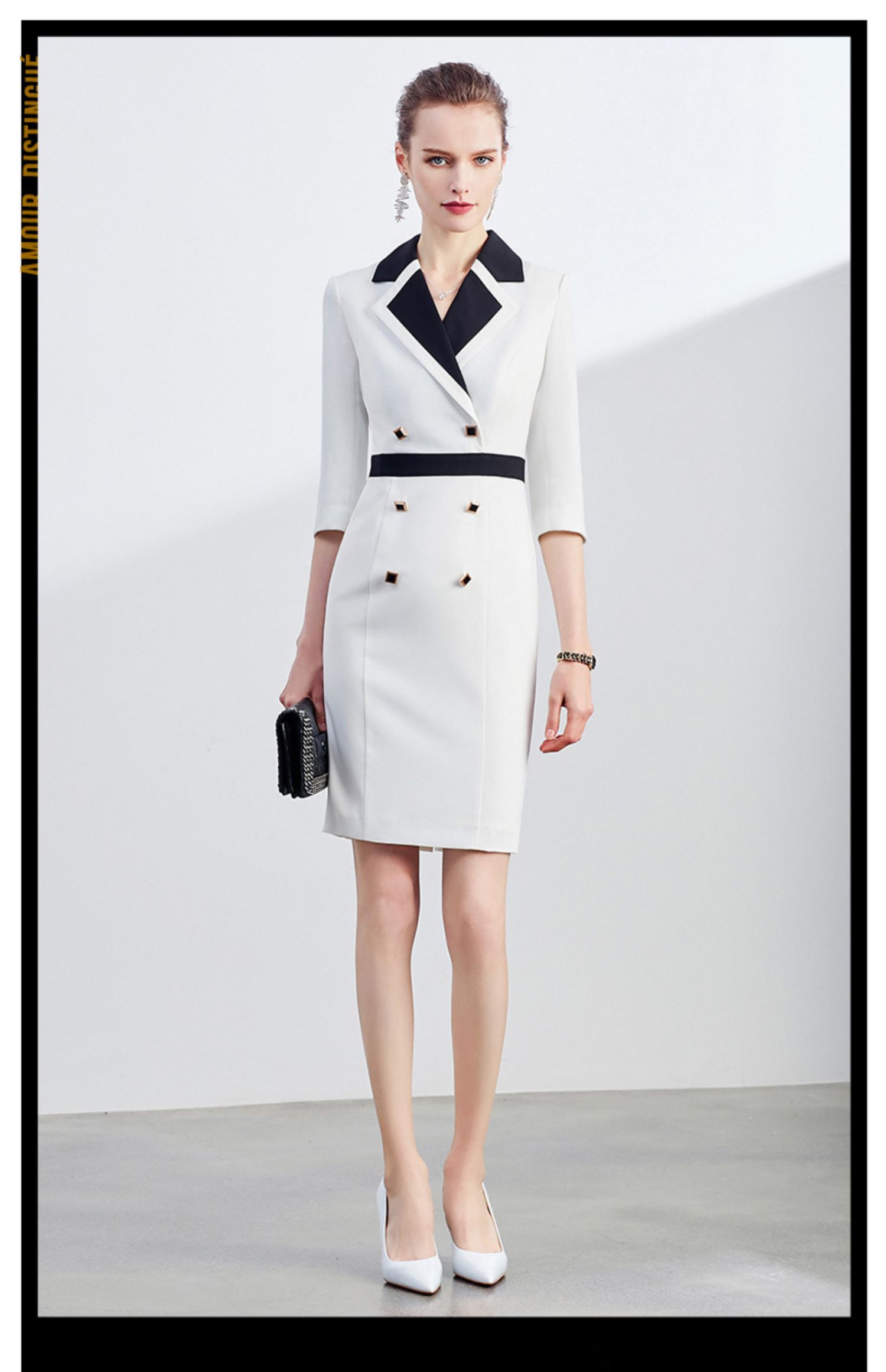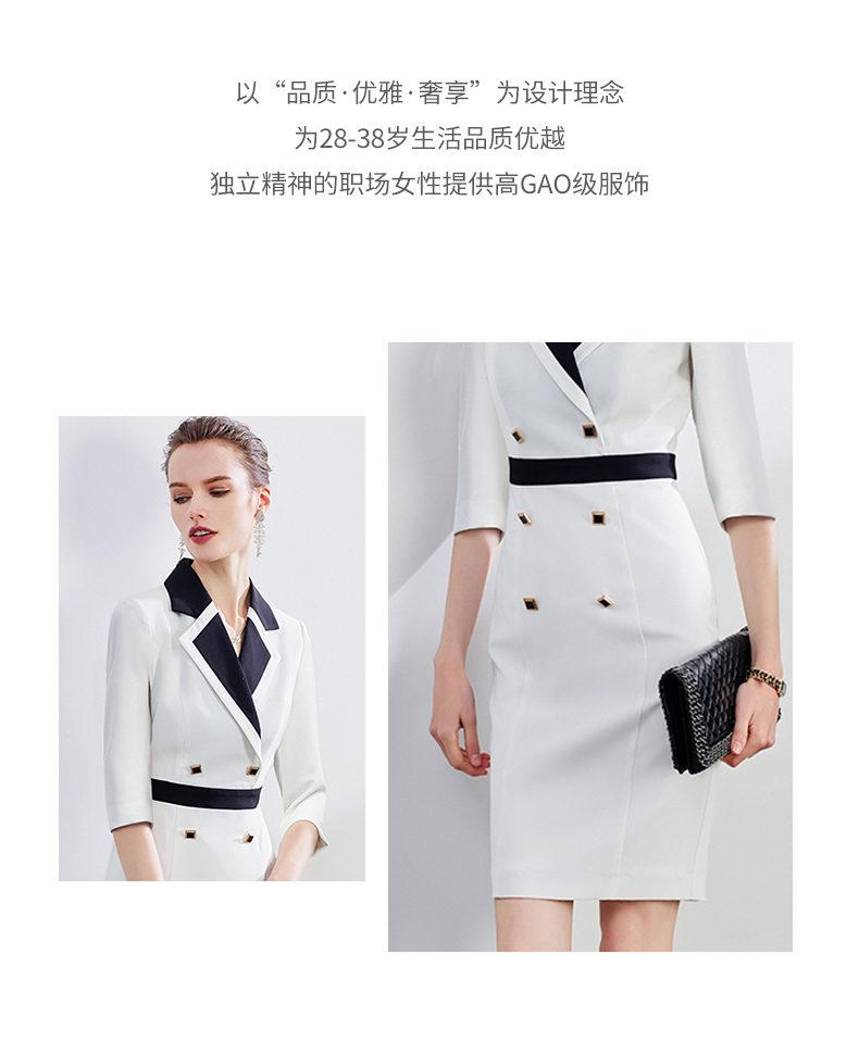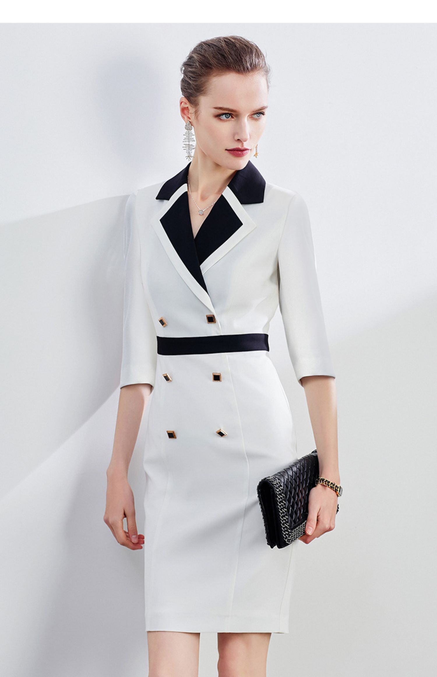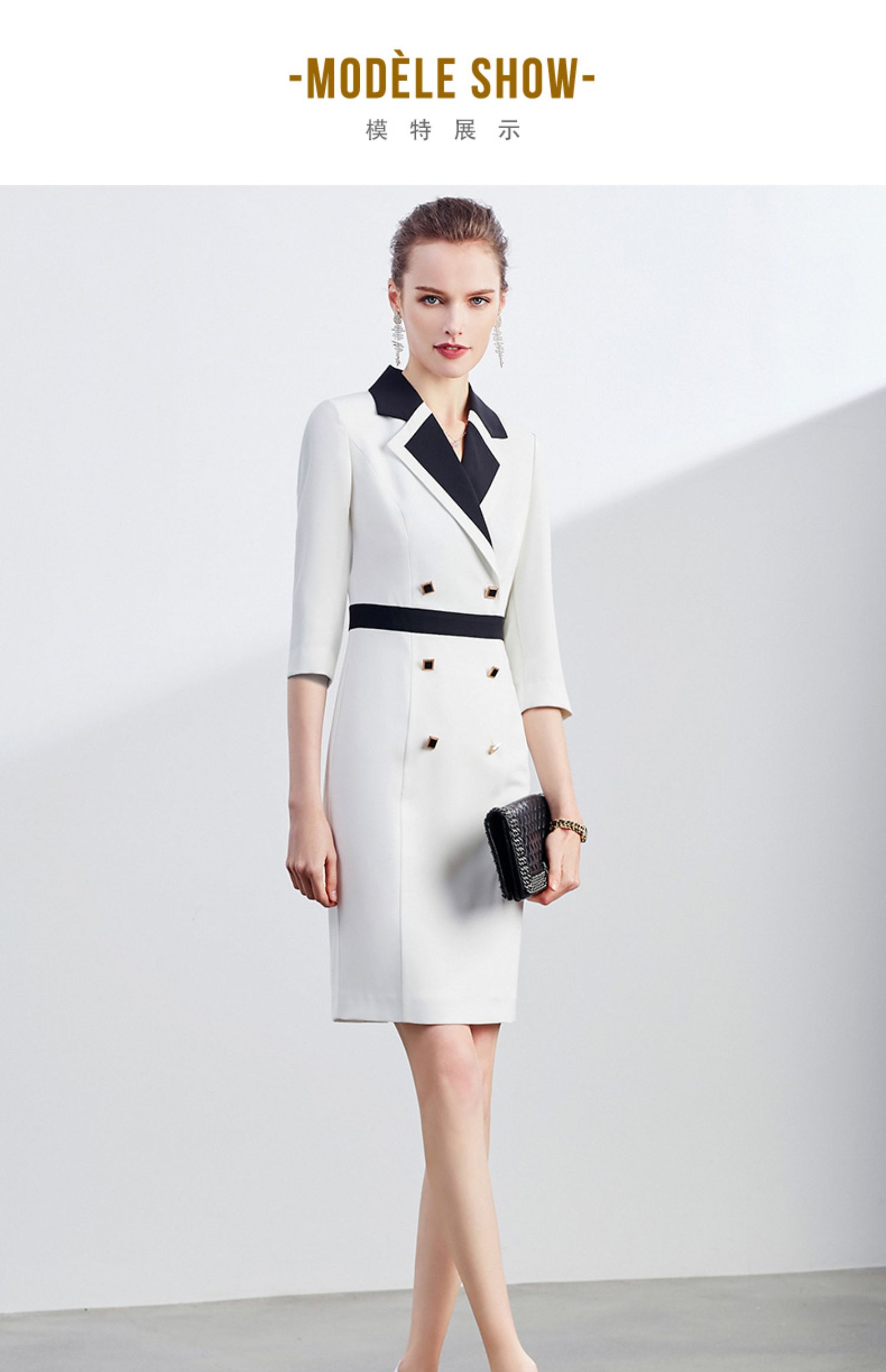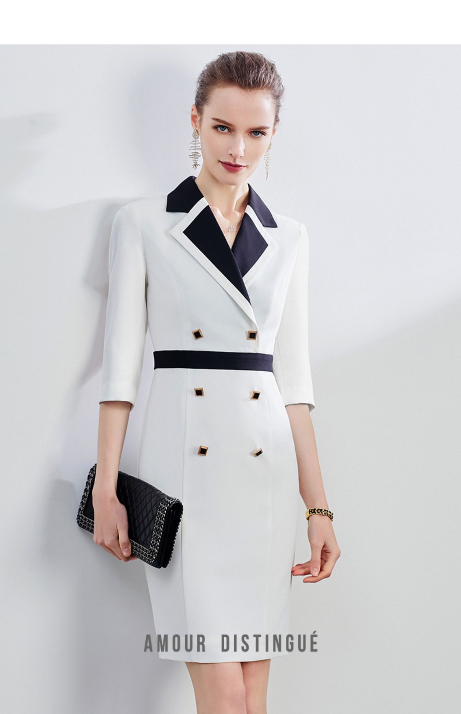 IWY/白色职业套装女气质名媛正装通勤西装七分袖连衣裙白领工作服Q643