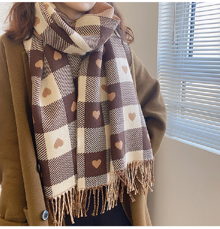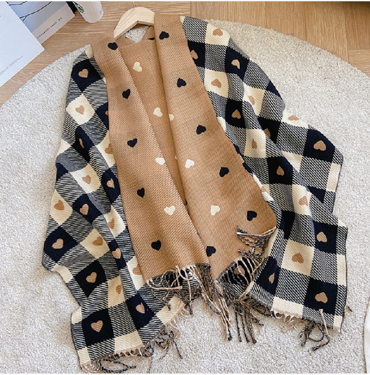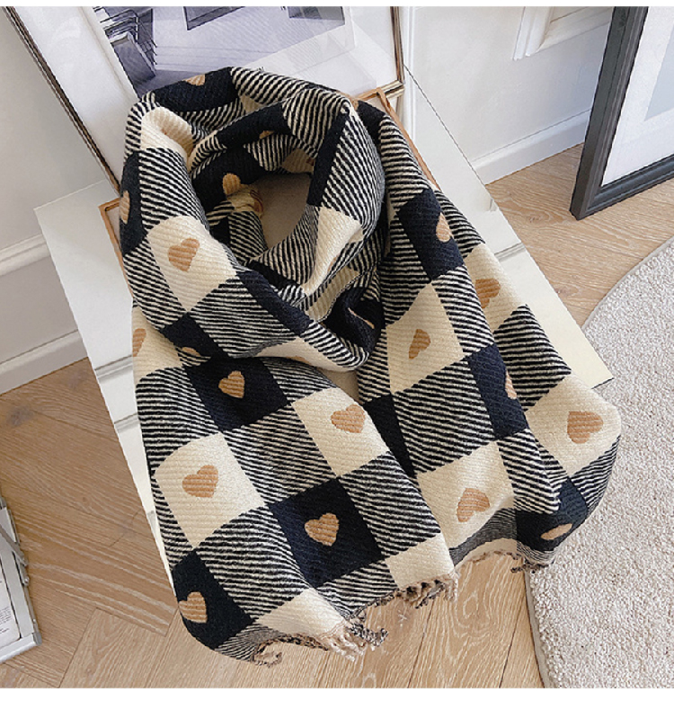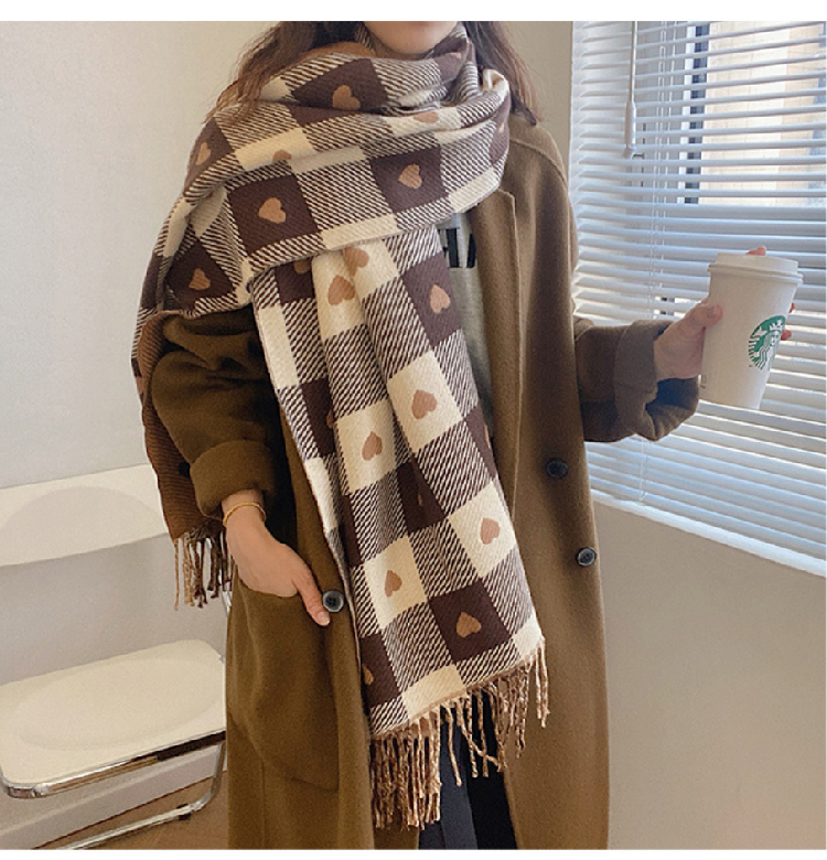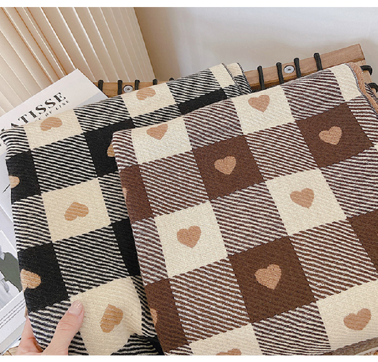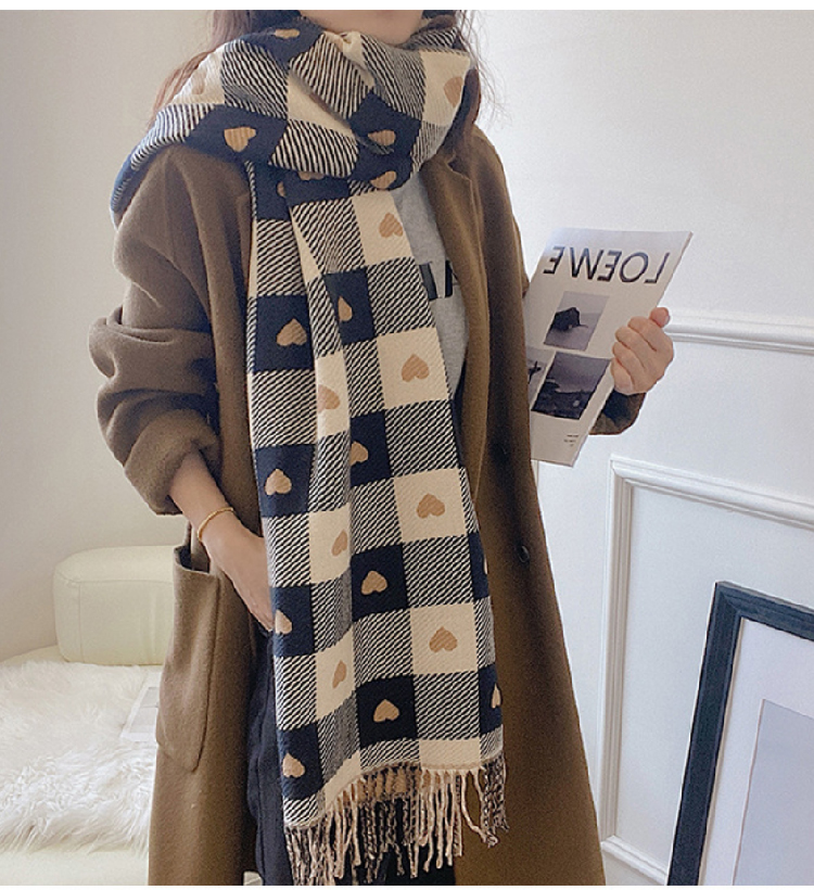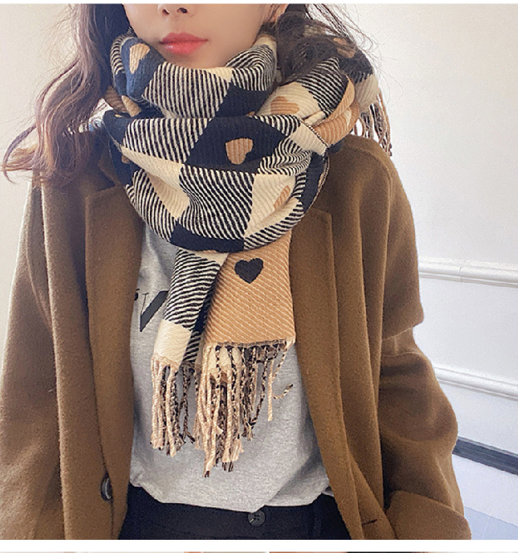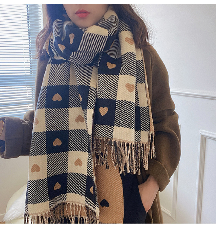 【格子加厚围巾】潮流韩版保暖格子长披肩 爱心围巾H字母拼色仿羊绒拉毛围巾