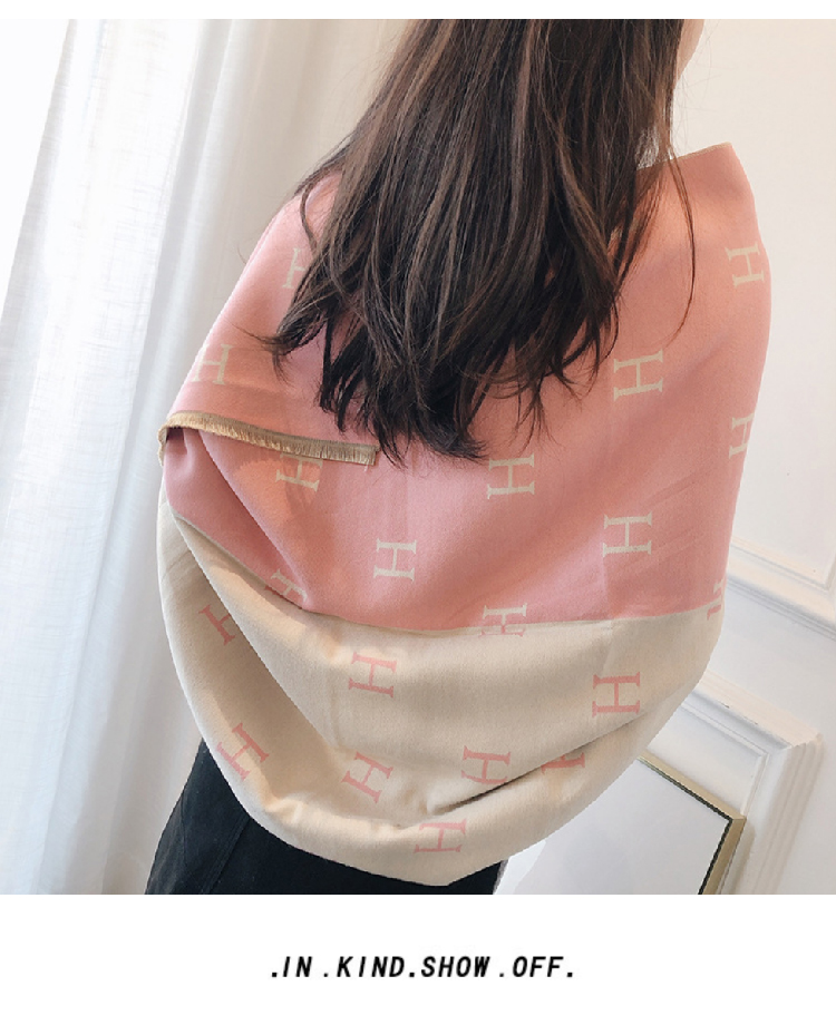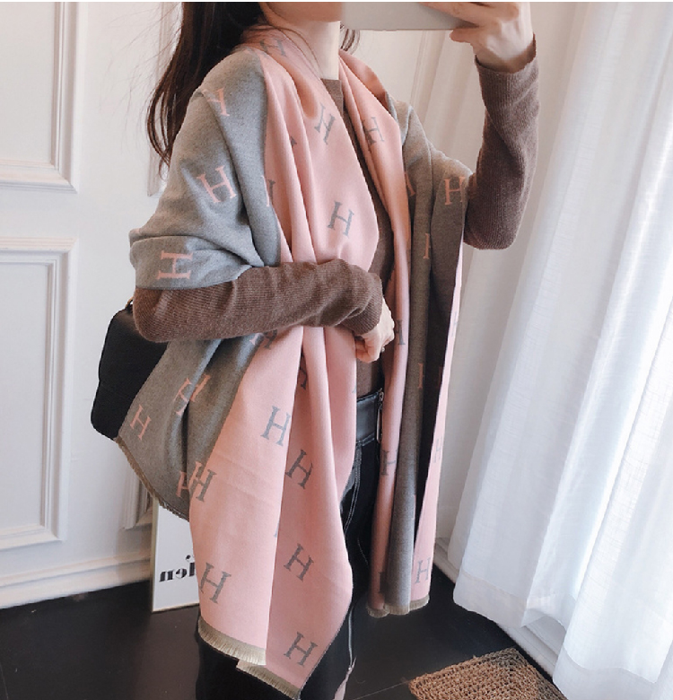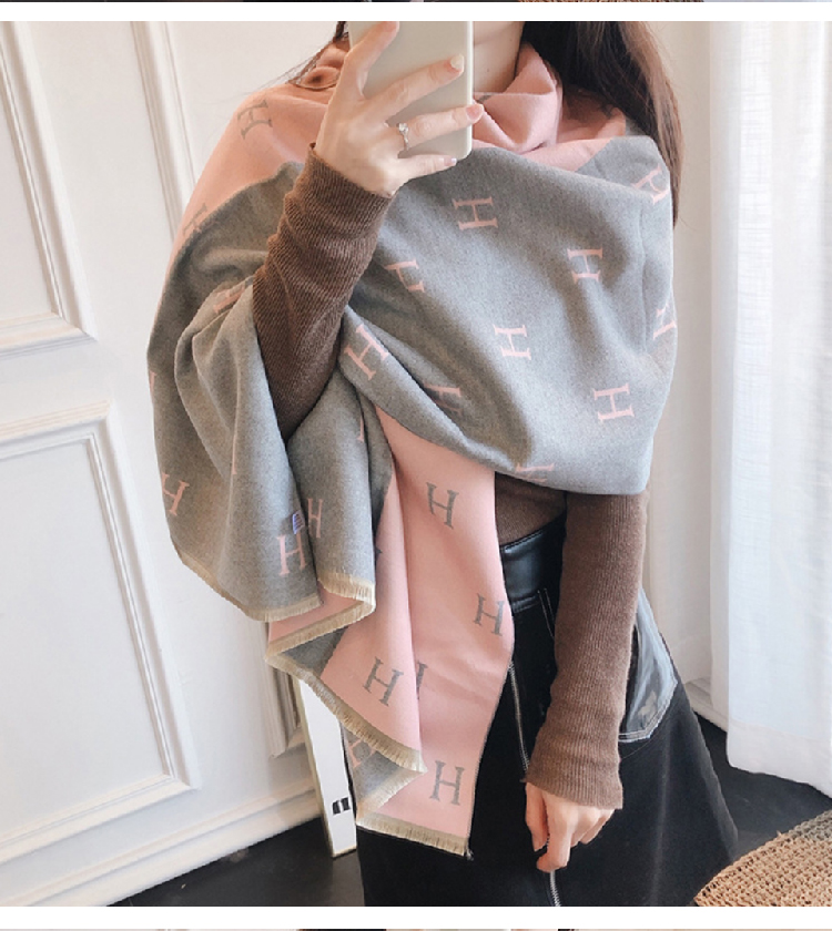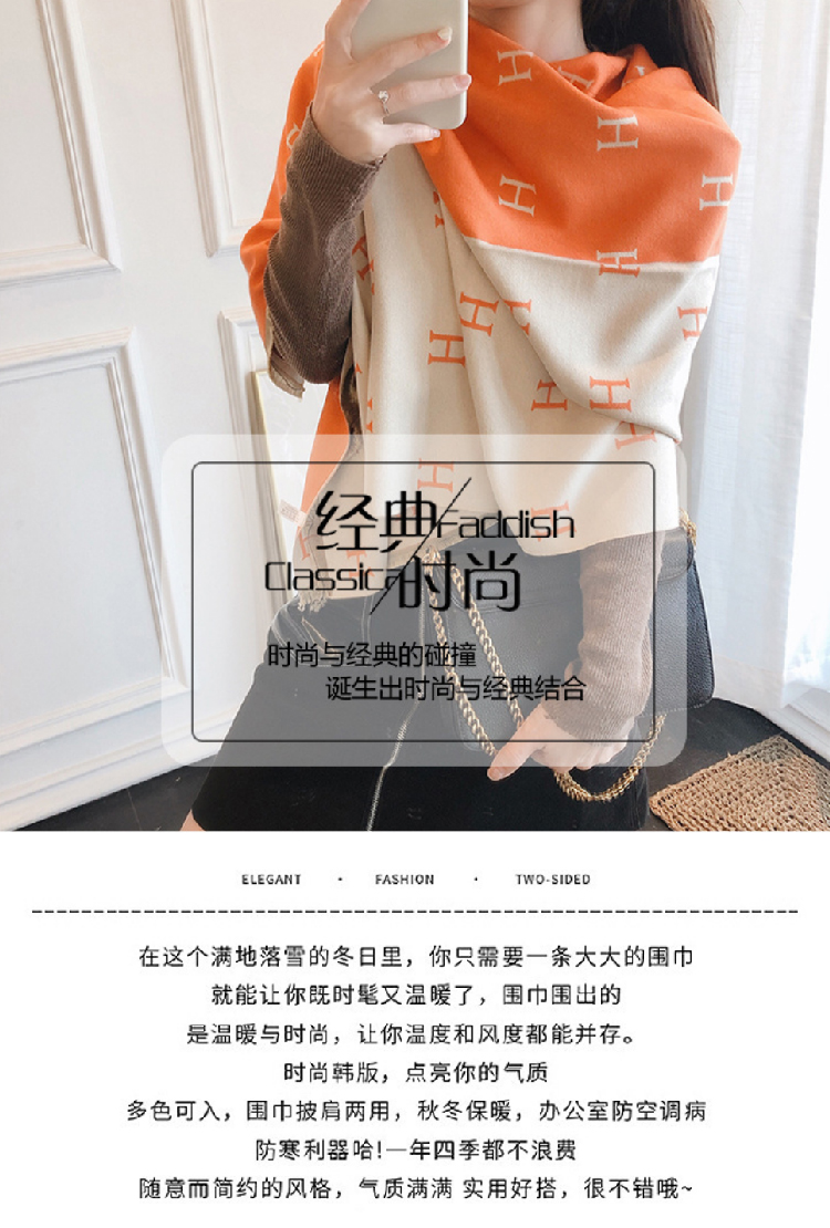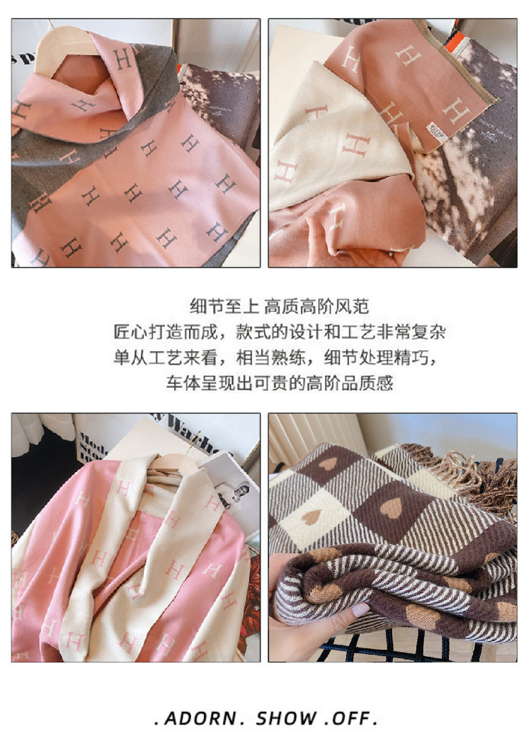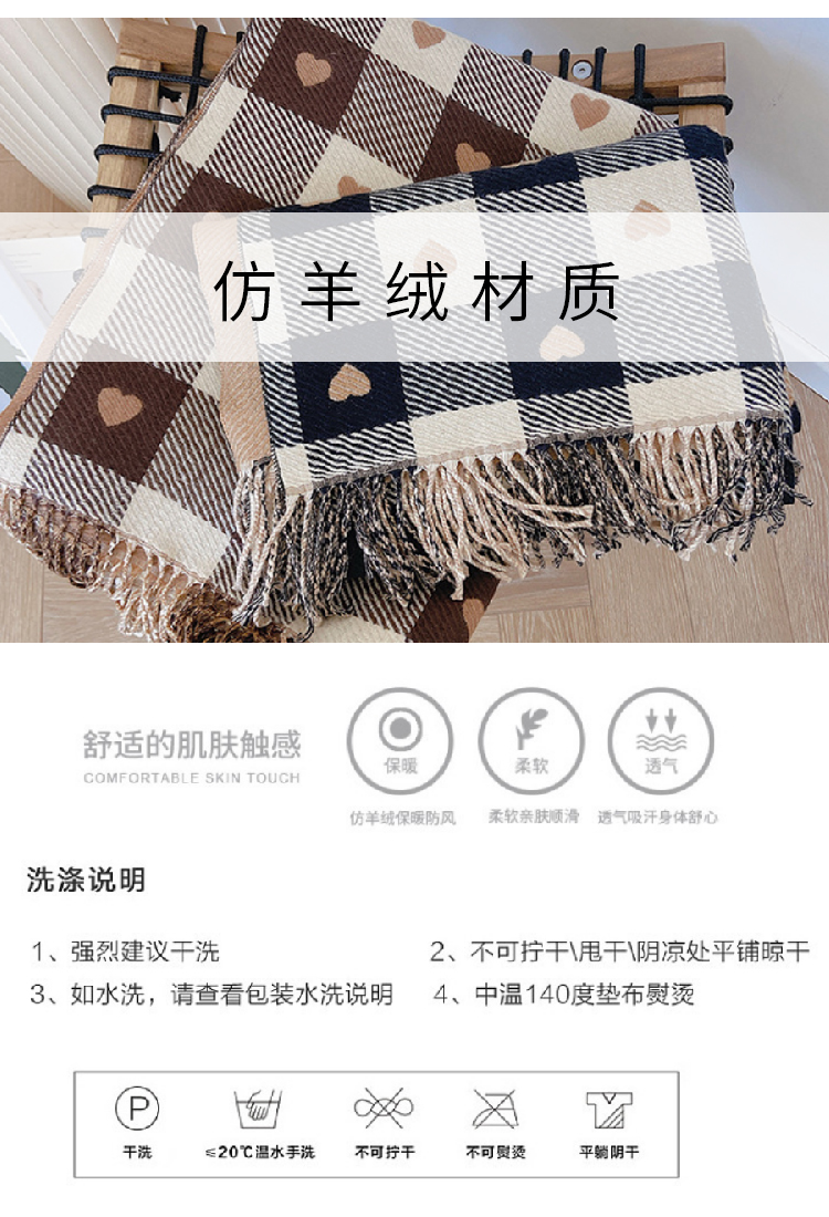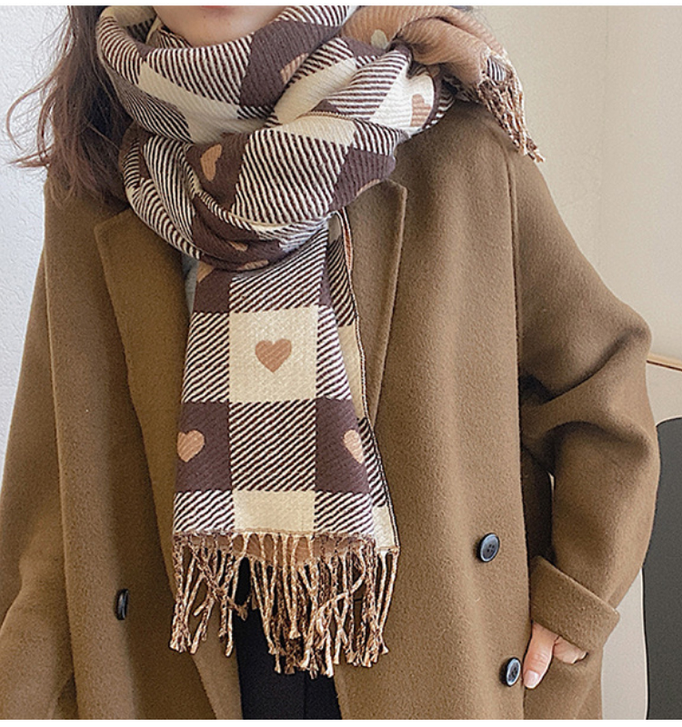 【格子加厚围巾】潮流韩版保暖格子长披肩 爱心围巾H字母拼色仿羊绒拉毛围巾