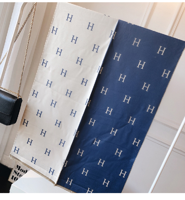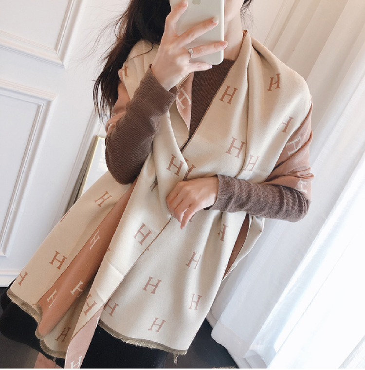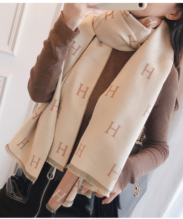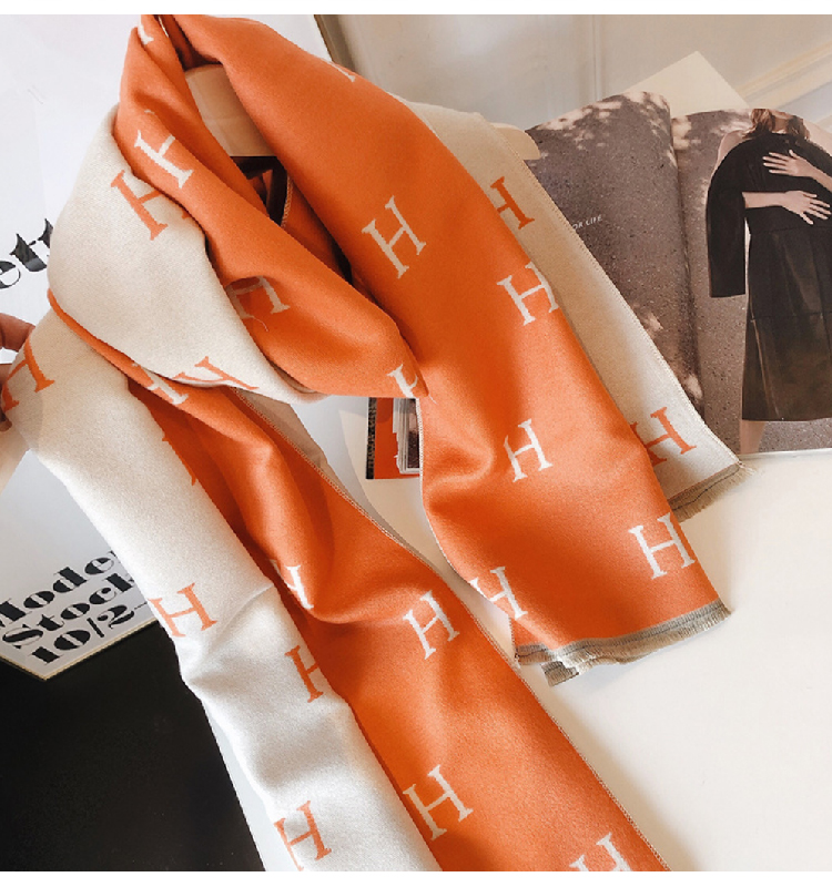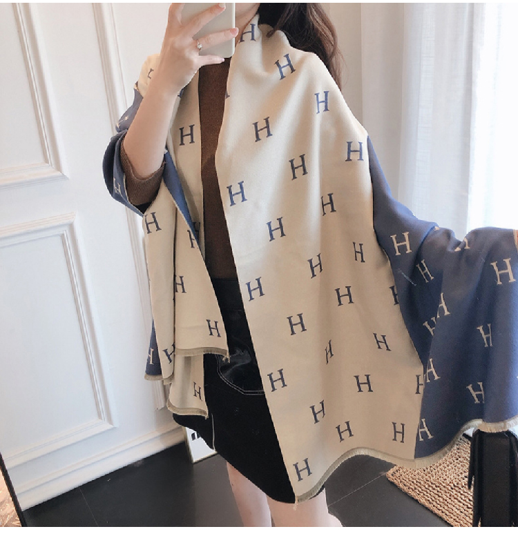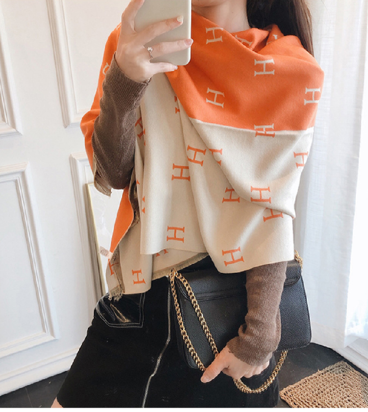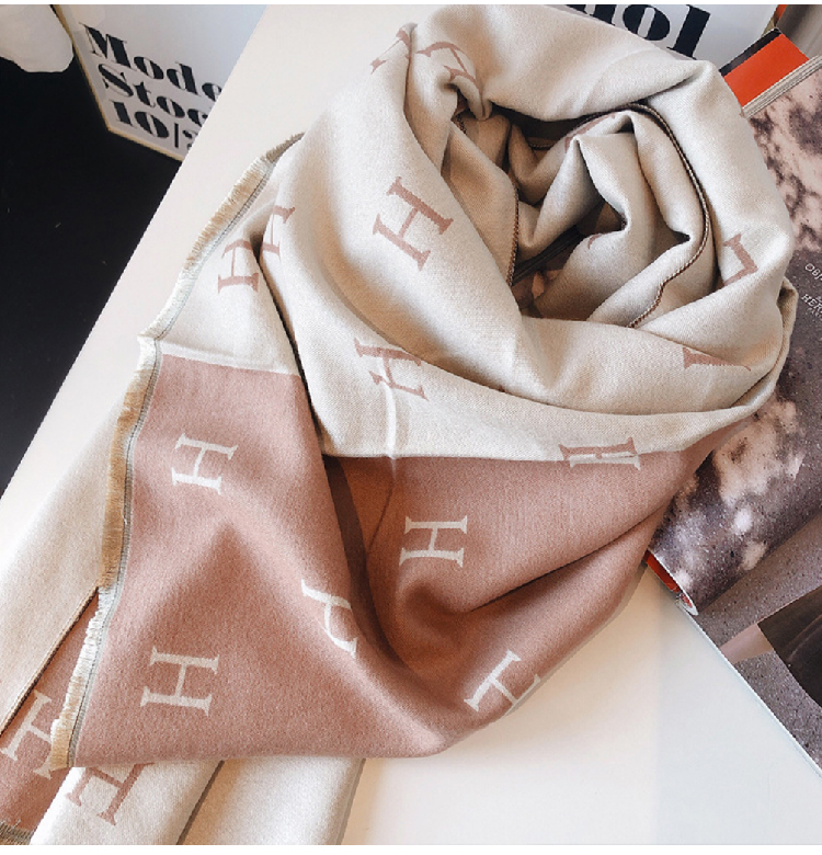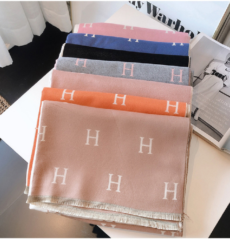 【格子加厚围巾】潮流韩版保暖格子长披肩 爱心围巾H字母拼色仿羊绒拉毛围巾