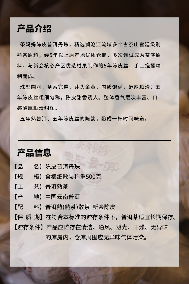 澜沧古茶茶妈妈陈皮普洱丹珠古树宫廷普洱熟茶新会陈皮丝超十年藏养散称