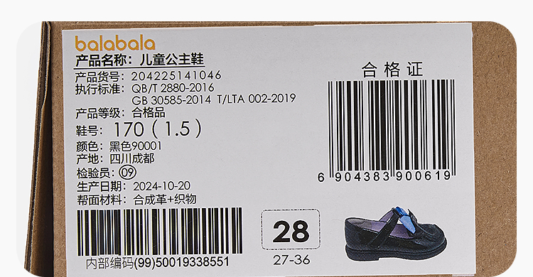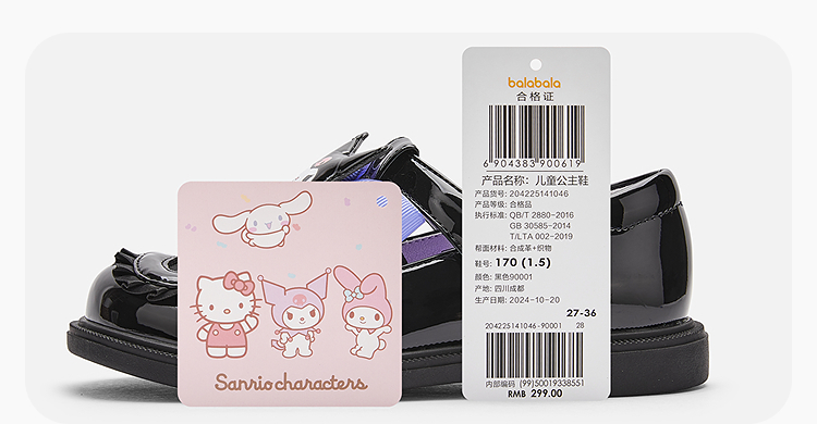 【库洛米IP】巴拉巴拉女童公主鞋2025夏季新款黑色小皮鞋