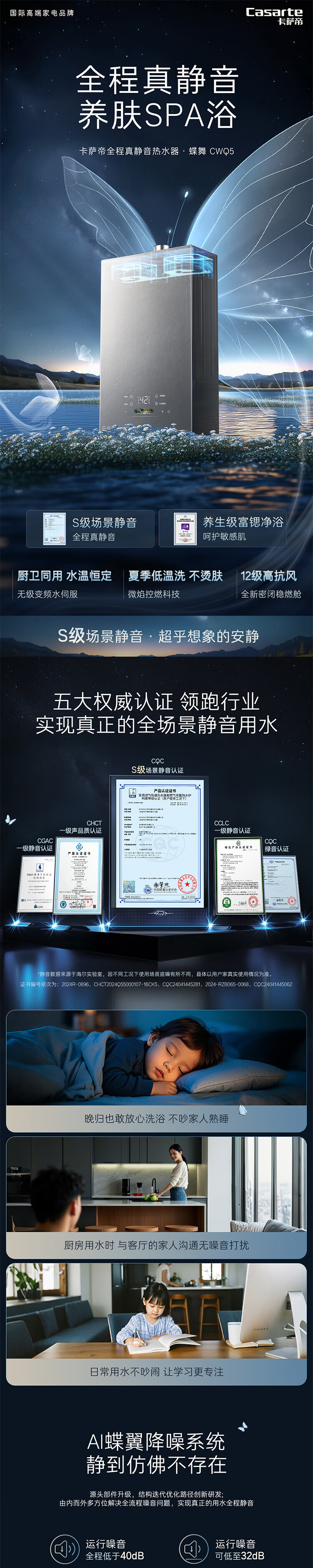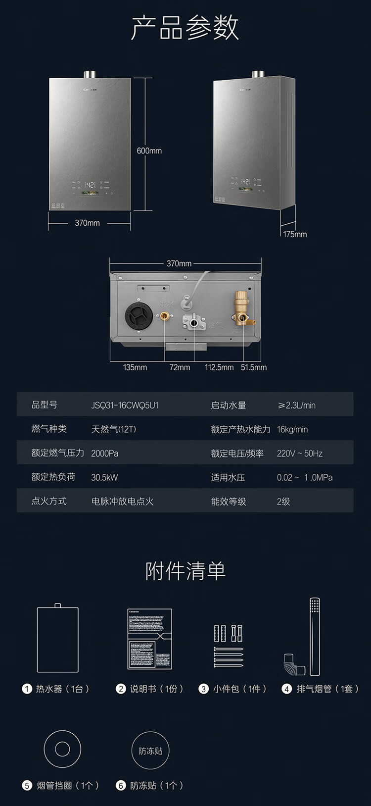 卡萨帝(Casarte)16升揽光套系【蝶舞CWQ5】家用富锶燃气热水器天然气 国家补贴以旧换新 S级静音 JSQ31-16CWQ5U1