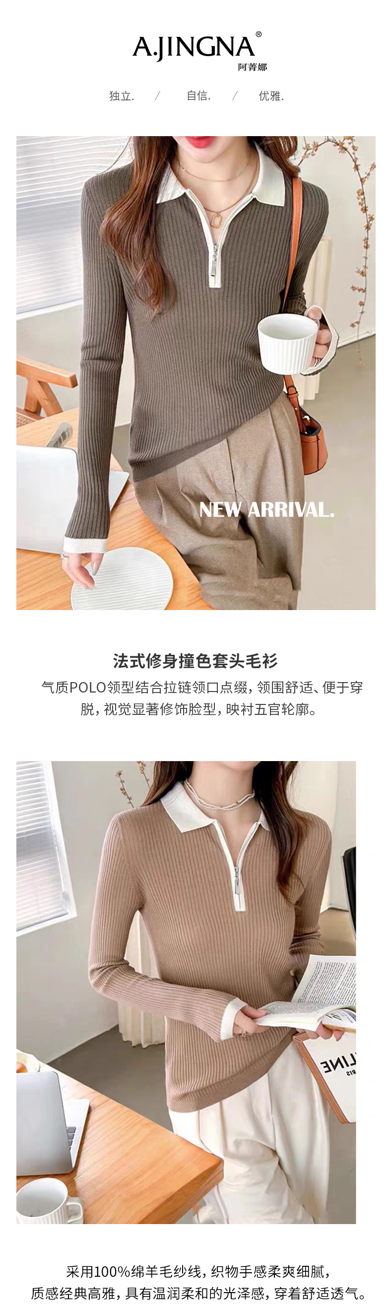 【经典高雅】阿菁娜POLO领纯羊毛修身撞色套头毛衫F30Q302057