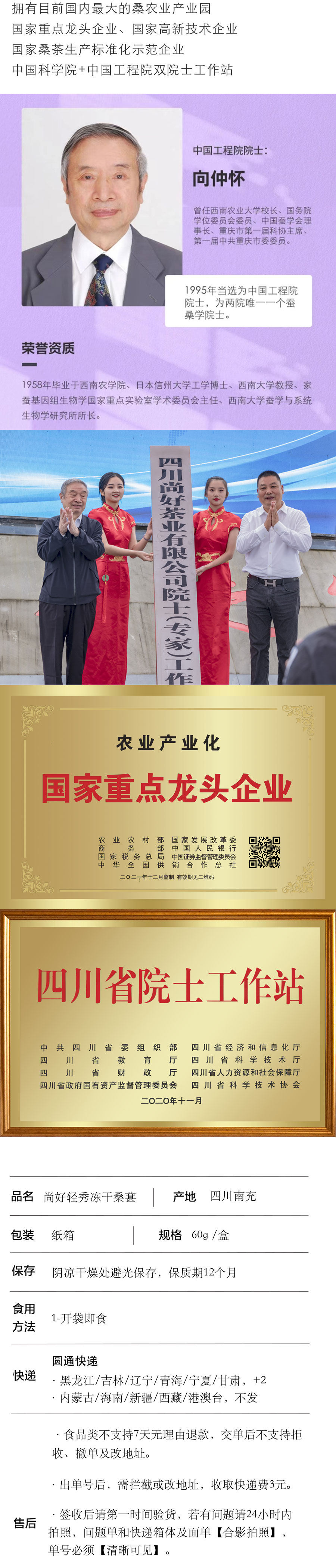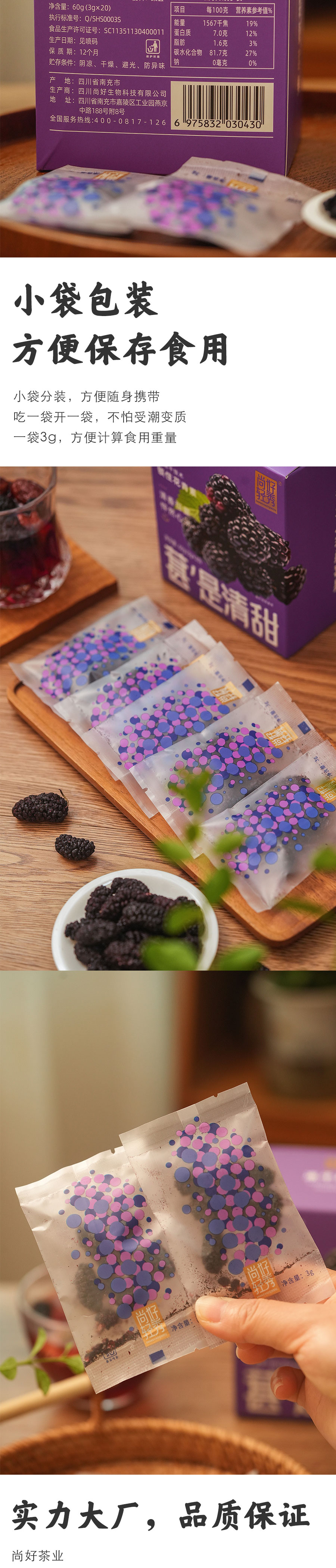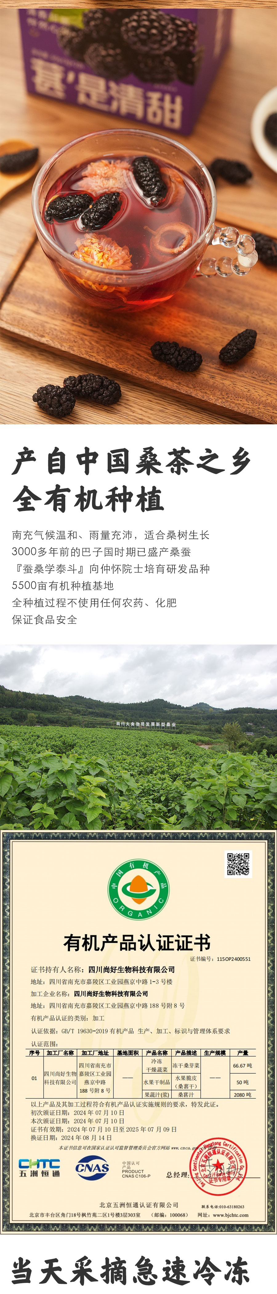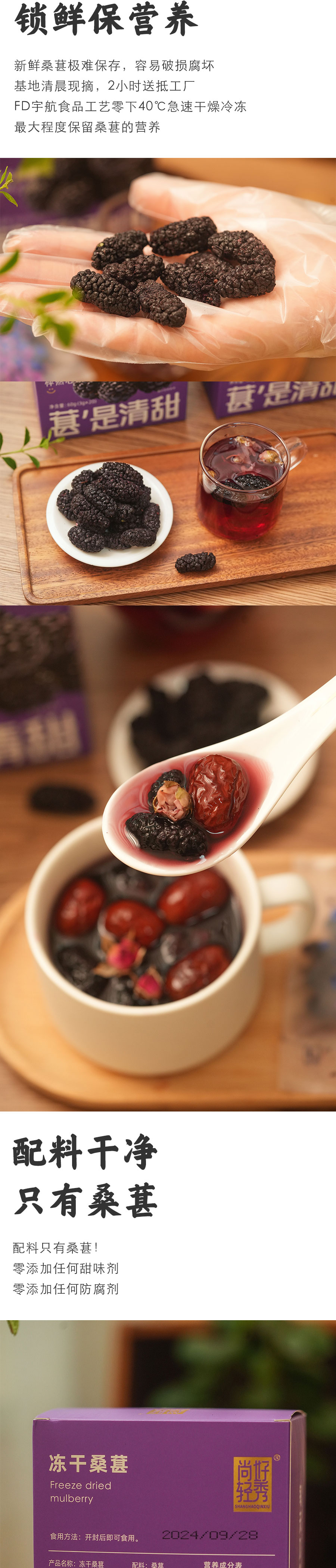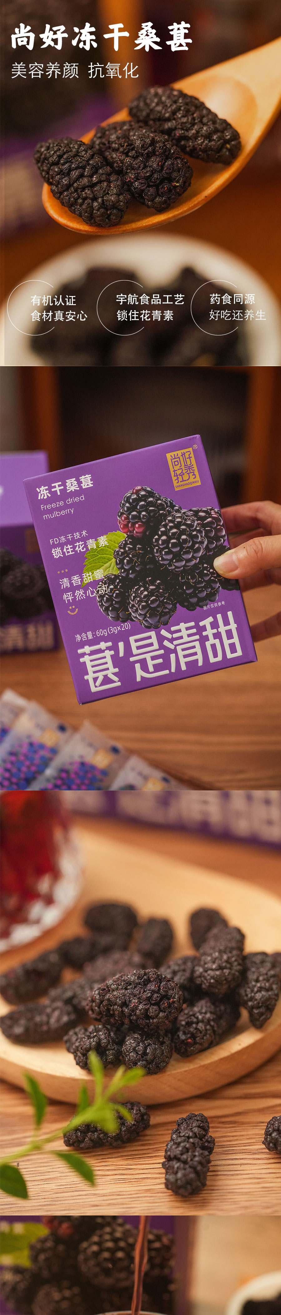 尚好轻秀冻干桑葚 产地四川南充 西南大学向仲怀院士培育研发 绿色有机认证 工艺零下40℃急速冷冻 锁住花青素