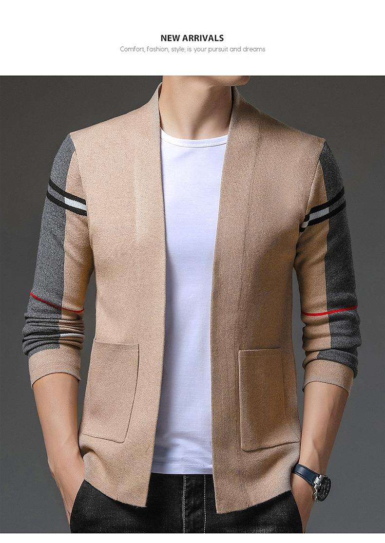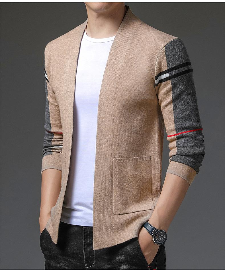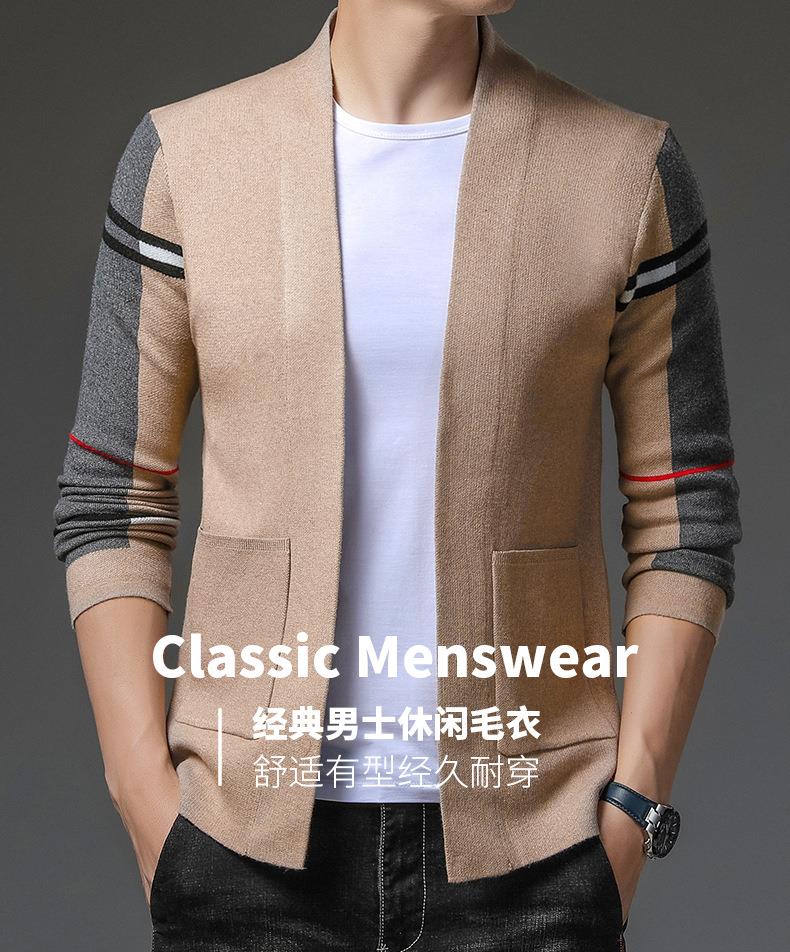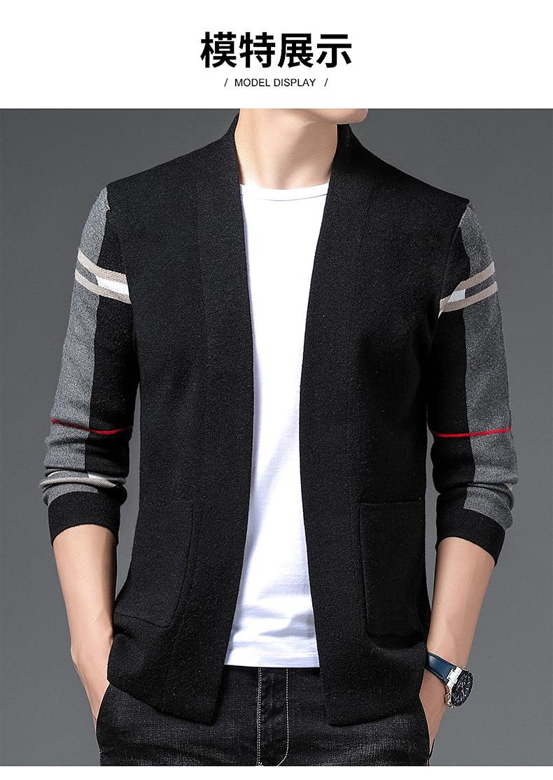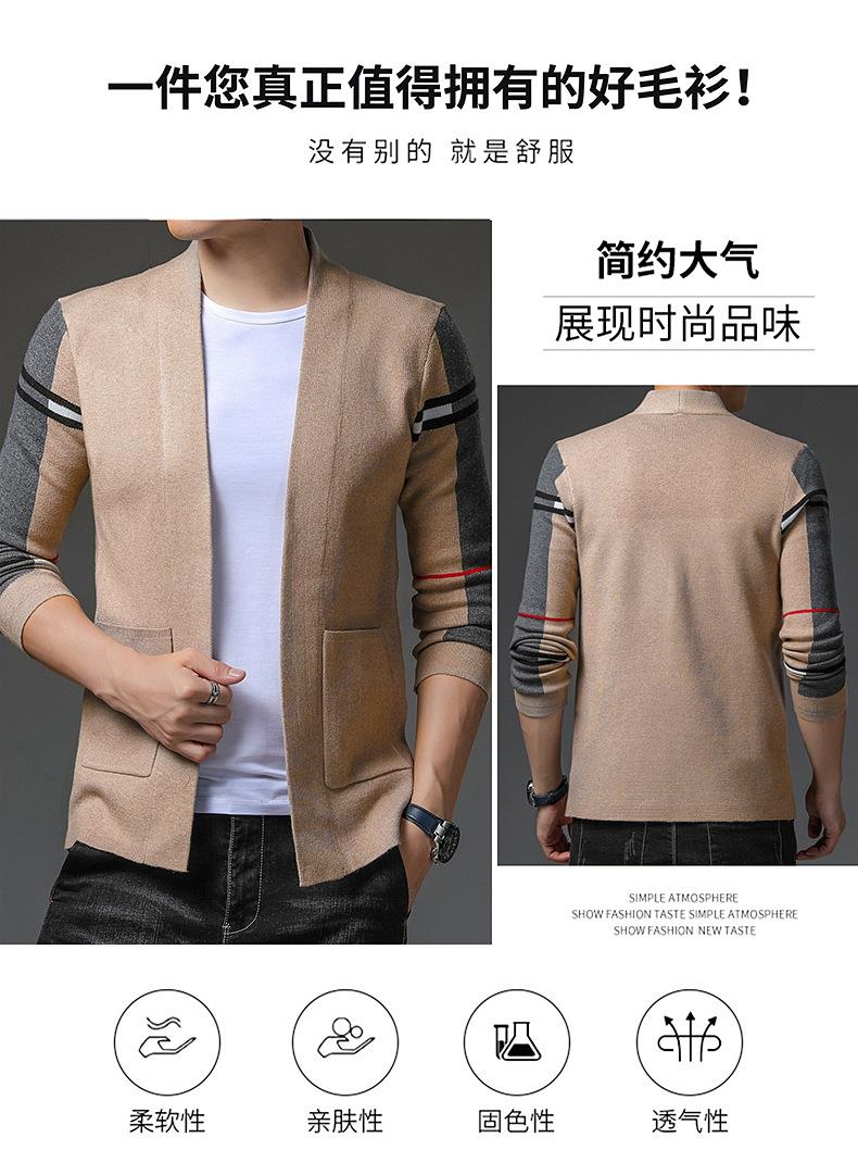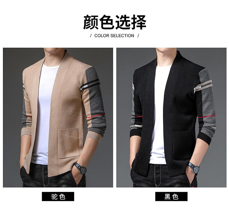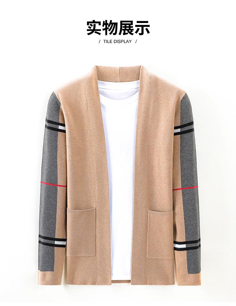秋冬季男士长袖格子针织开衫外套冬季保暖上衣服