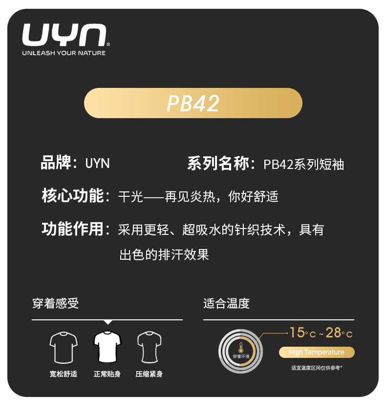 UYN运动短袖PB42系列 上衣男女款夏季训练透气吸汗弹力速干衣压缩衣