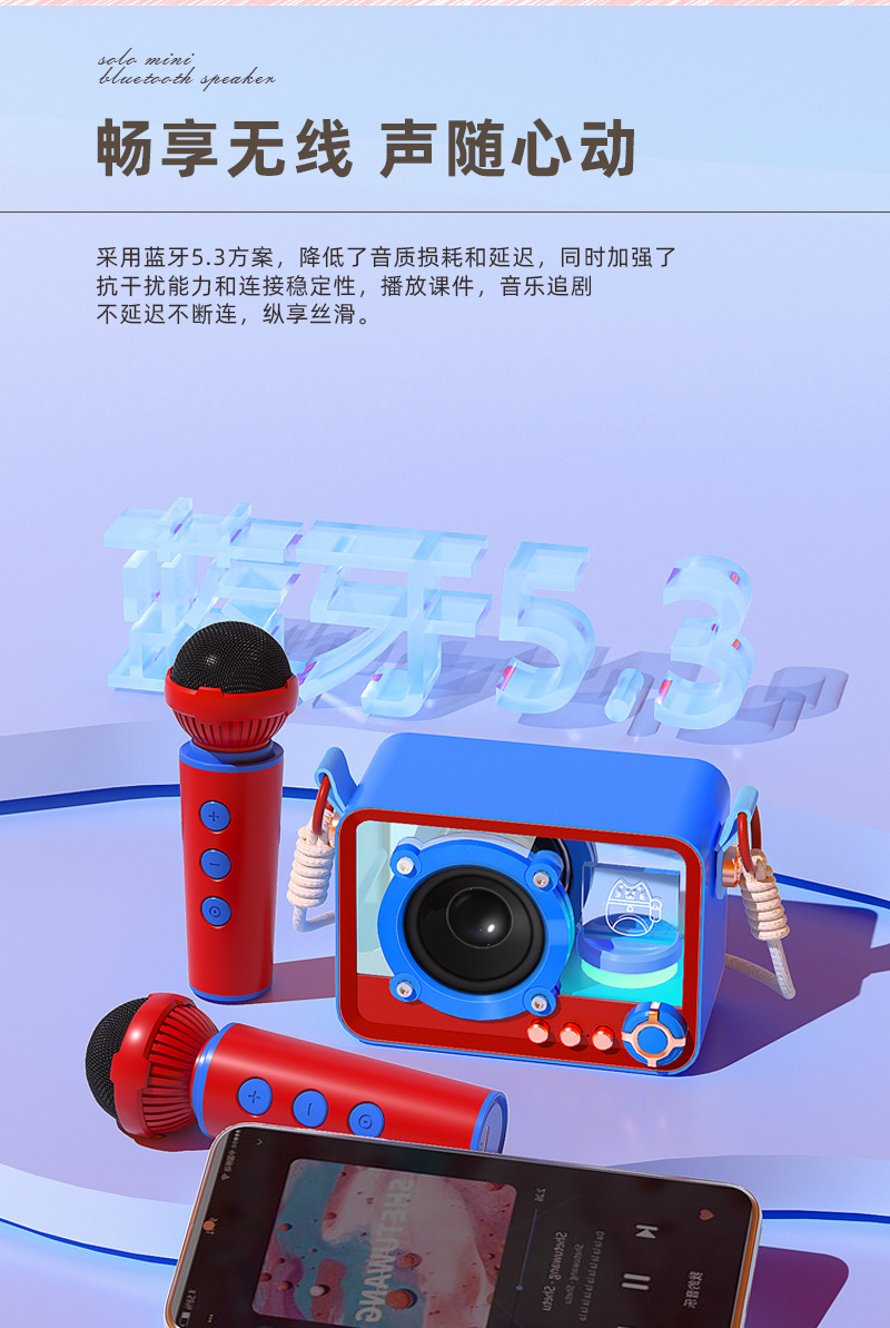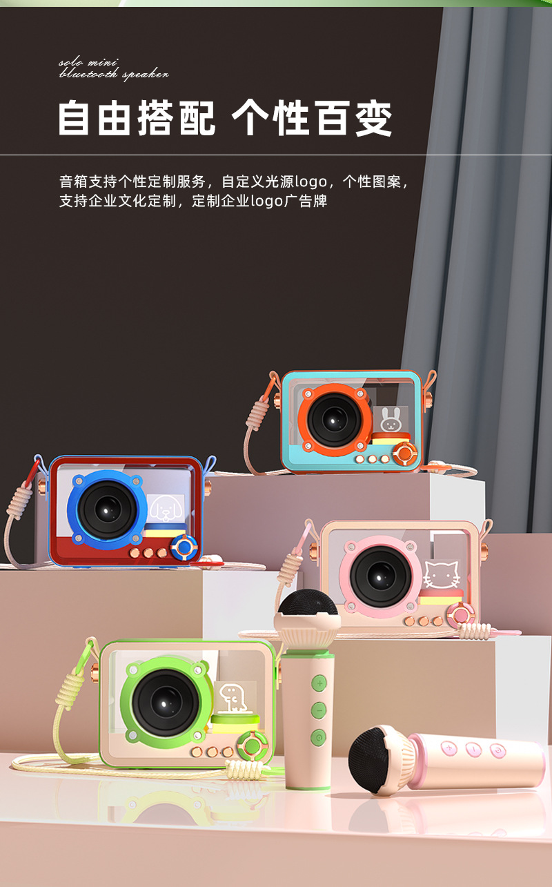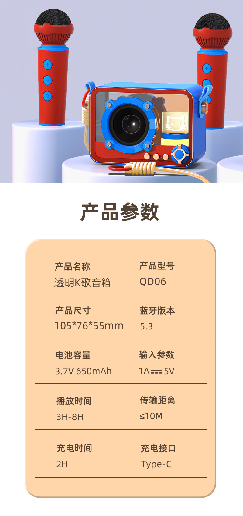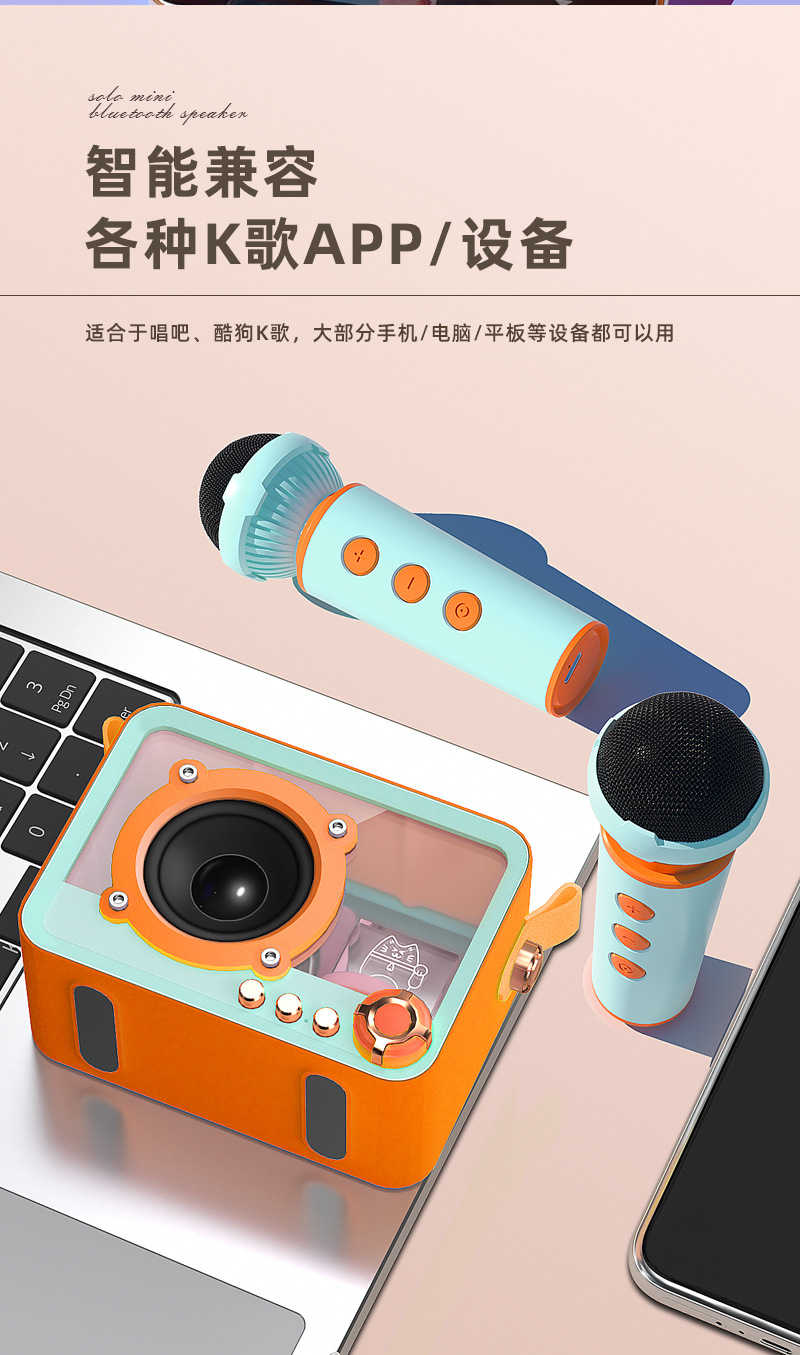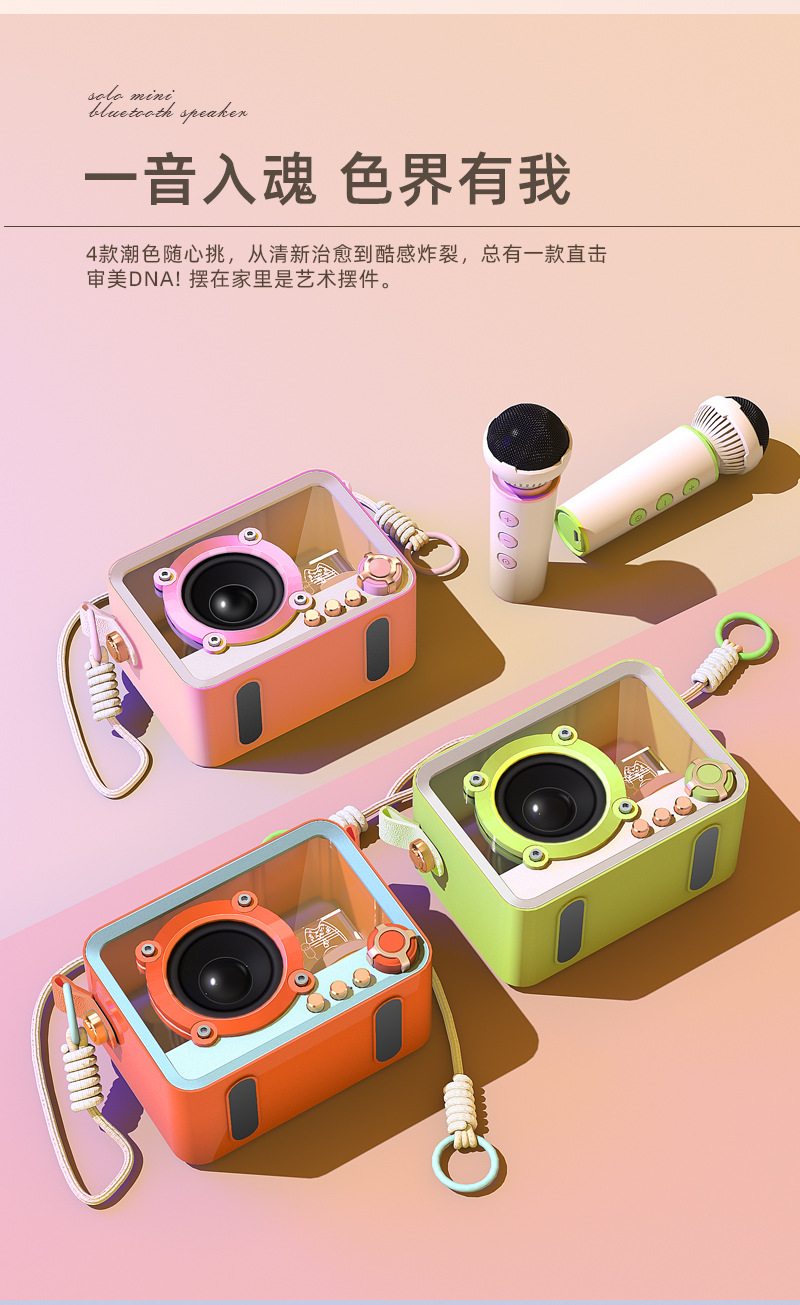 【轻奢小巧,透明K歌音箱!】朋克琉璃K歌蓝牙音箱 家用户外带话筒一体式 唱歌机迷你音响低音炮-QA