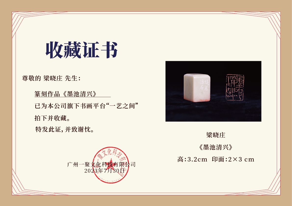 梁晓庄篆刻印章2x3x3.2CM丨墨池清兴(晓庄治石)手工巴林石篆刻作品[原作编号:ZK006]