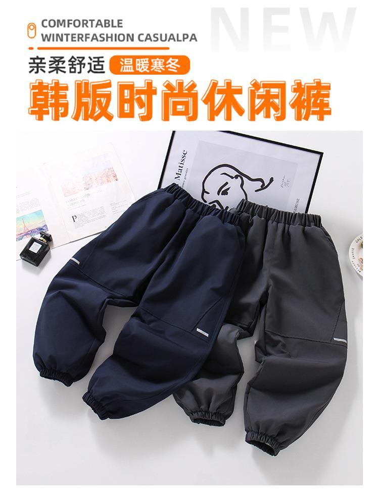 男童裤子加绒2025新款冲锋裤儿童春秋冬款简约保暖中大童运动长裤