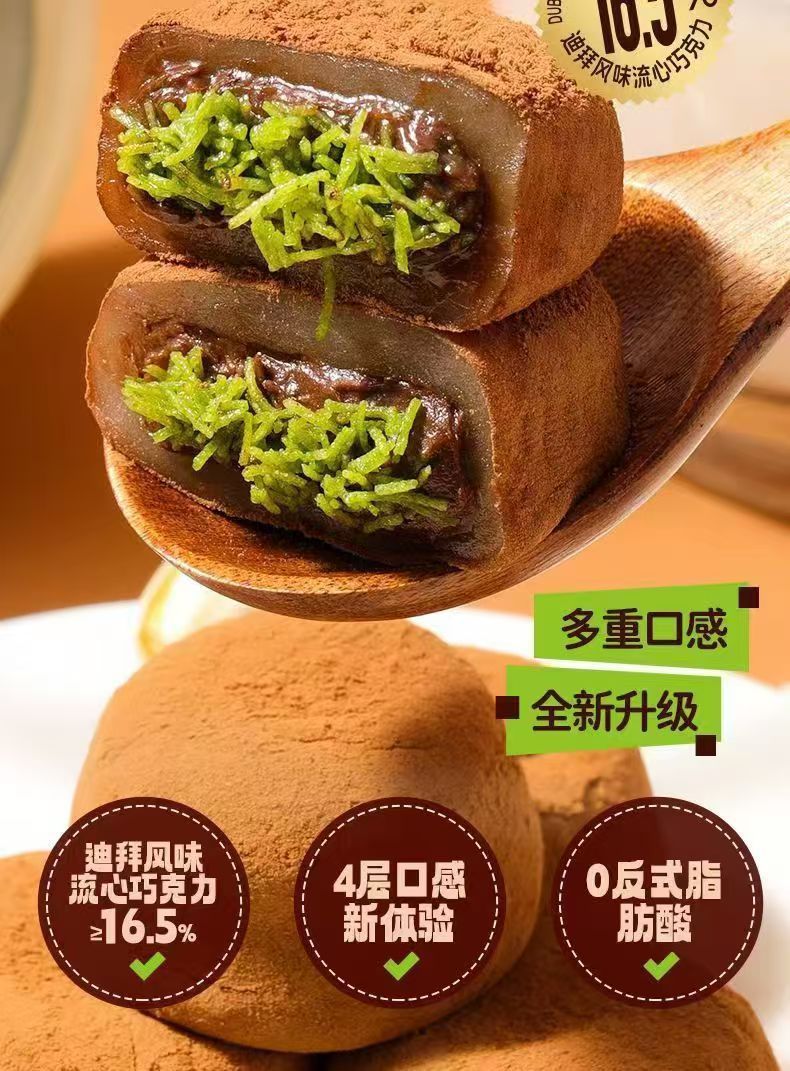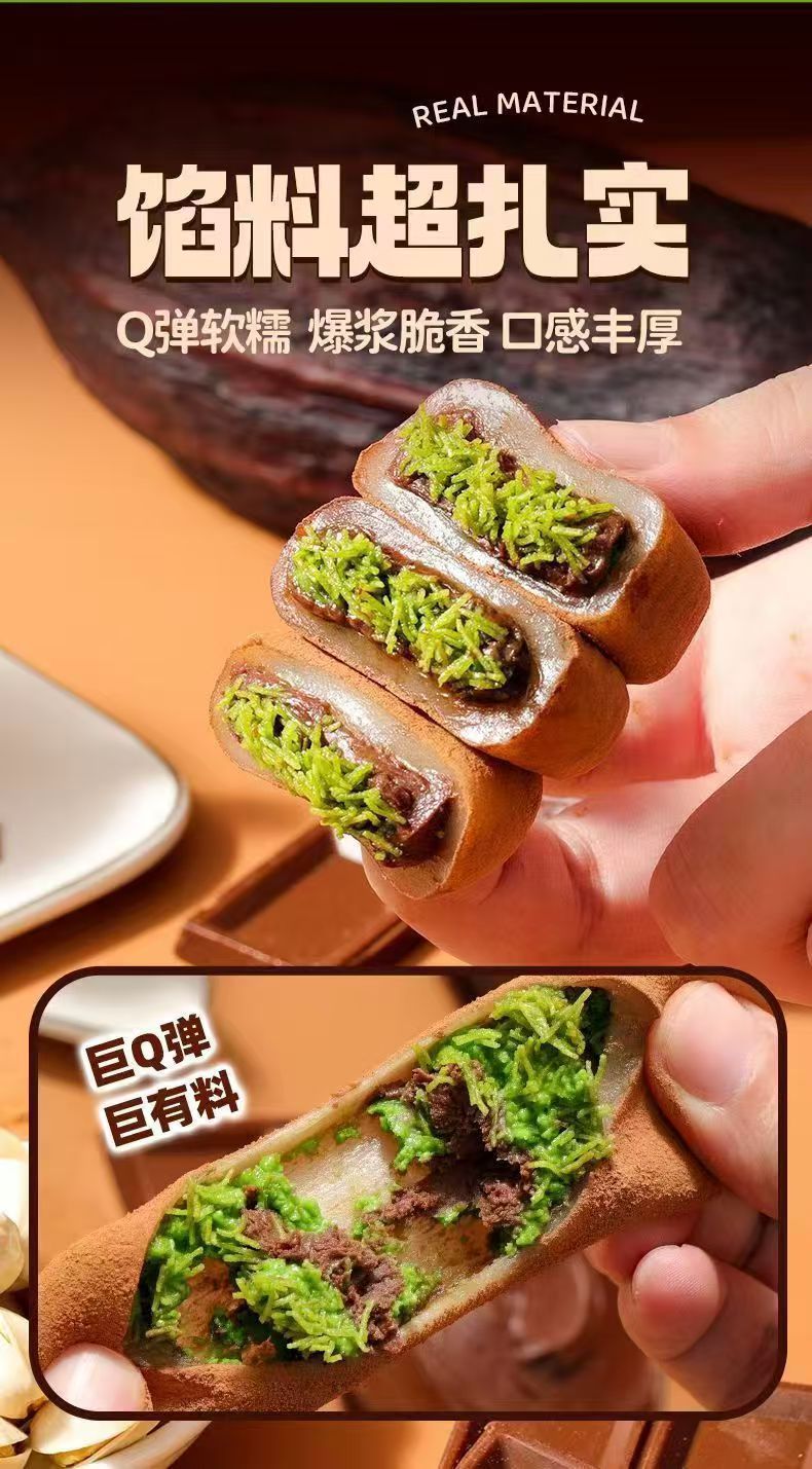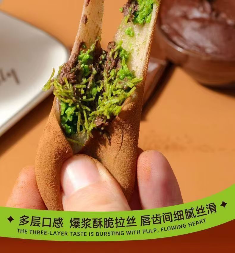 【丝滑爆浆脆爽❗迪拜风生巧福团】一口咬下,口腔传出咔嚓美妙乐章,巧克力与开心果酱的碰撞,醇香酥脆口感美味,干丝酥夹心L