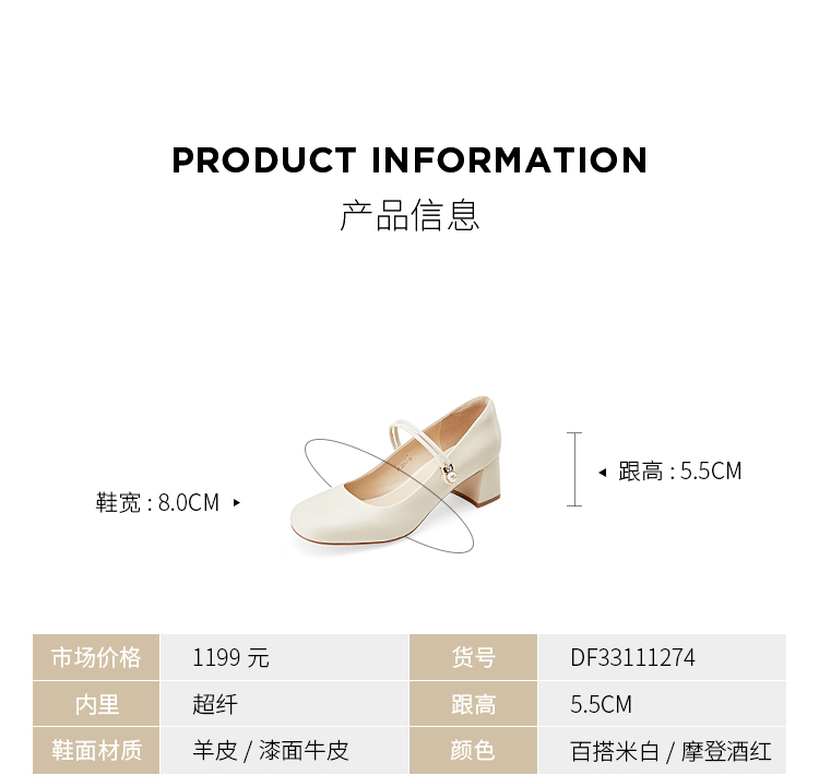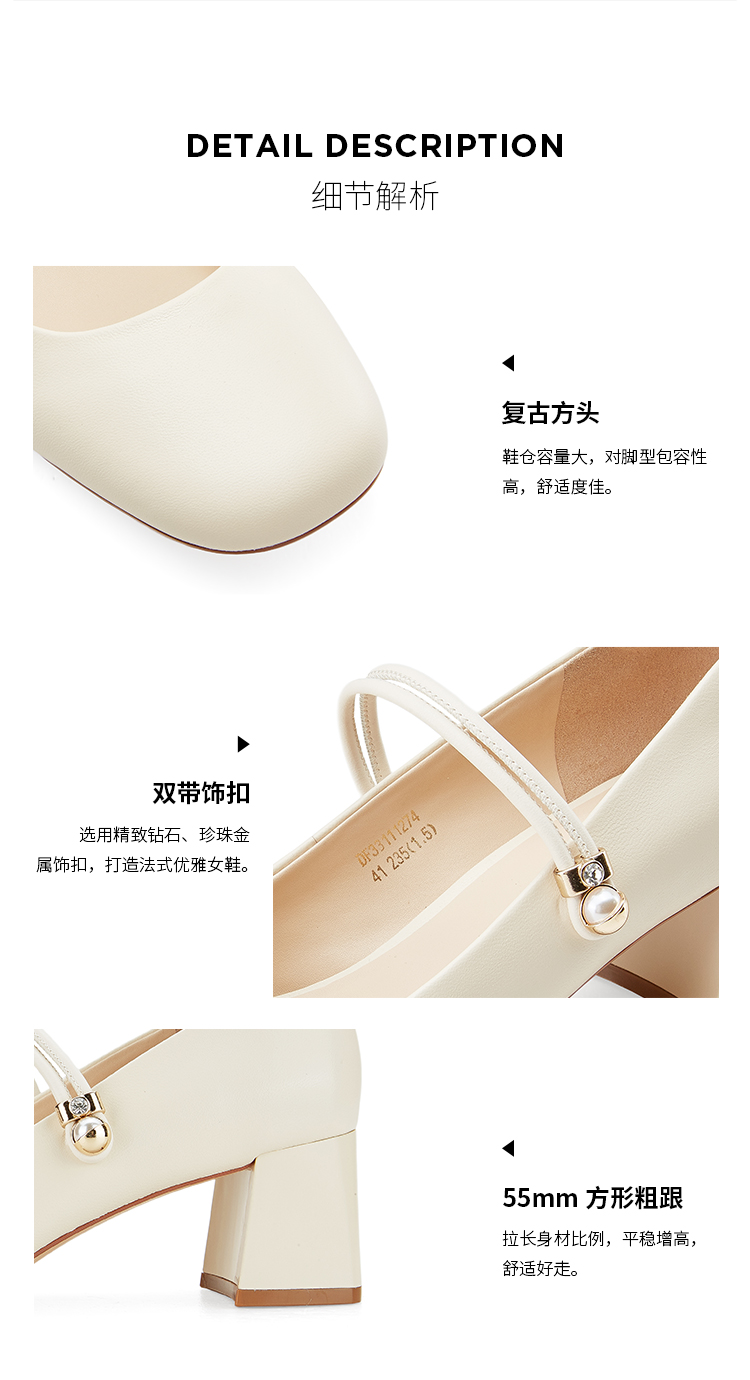 【甜梦少女】Dfuse迪芙斯2023秋季新款法式方头珍珠饰扣玛丽珍单鞋DF33111274