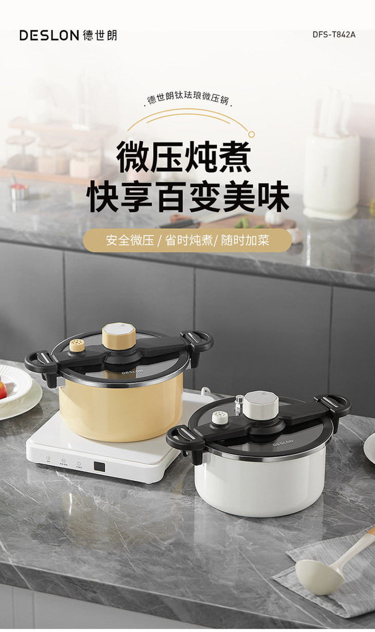 德国DESLON德世朗珐琅微压营养锅升级款 6L 精铁钛优质珐琅釉安全抗造