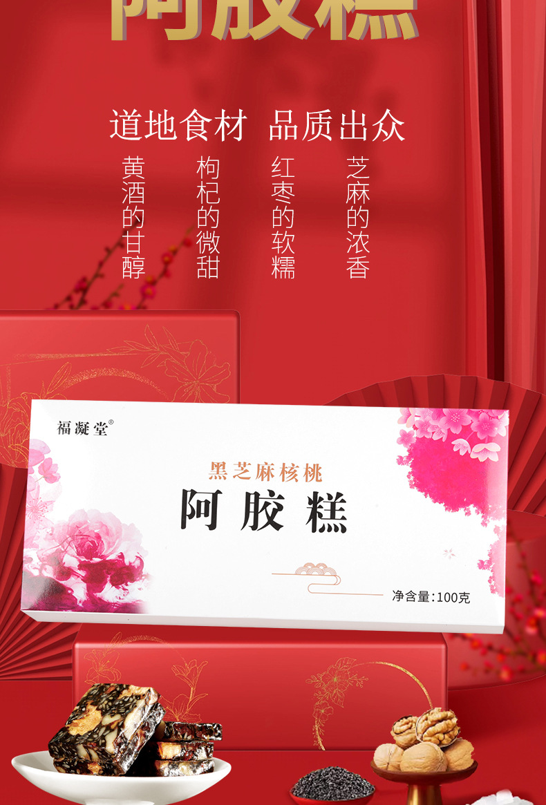 【19.9抢❗️黑芝麻核桃阿胶糕】甄选品质原料制作,黑芝麻,阿胶,核桃仁,红枣,黄酒,枸杞等,传统工艺匠心熬制,阿胶糕即食,阿胶真驴皮阿胶糕L