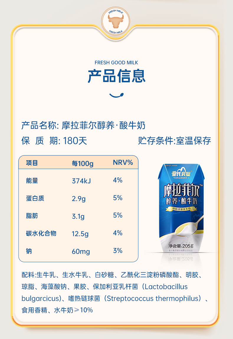 皇氏·摩拉菲尔醇养酸牛奶 205g*12 添加水牛奶 口感丝滑