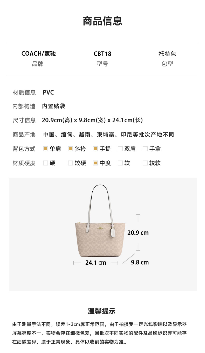 COACH 奥莱款女士PVC单肩手提包CBT18IMXDM