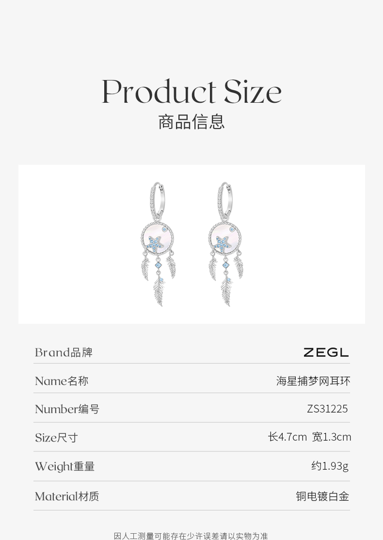 ZEGL设计师环岛日记系列海星捕梦网耳环女小众设计感高级耳钉耳饰