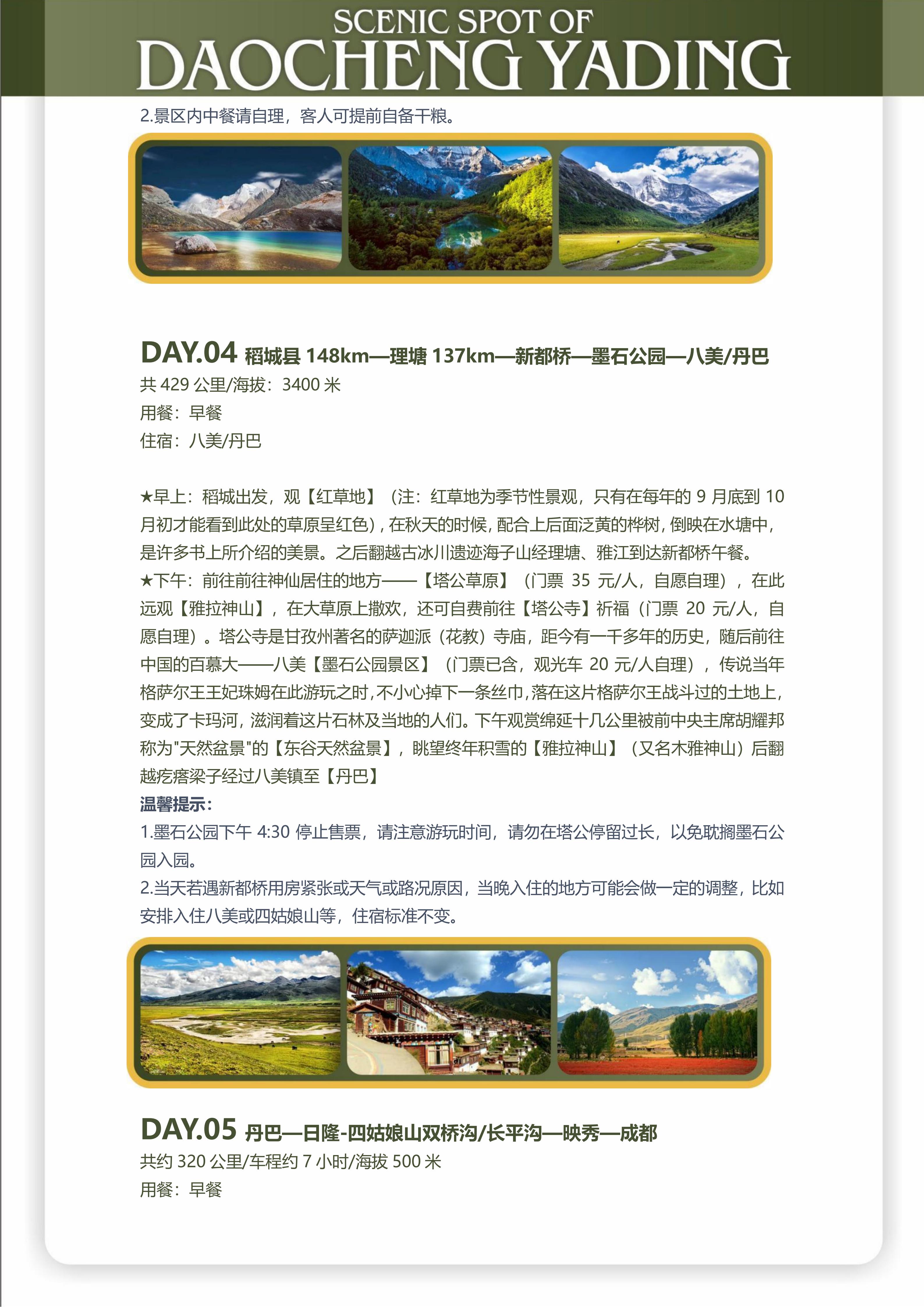 <川西5日8人精品小团(成都起止)>红海子、斯丁措、鱼子西、长青春科尔寺、勒通古镇、高尔寺山、稻城亚丁、红草地、塔公草原、墨石公园、四姑娘山双桥沟