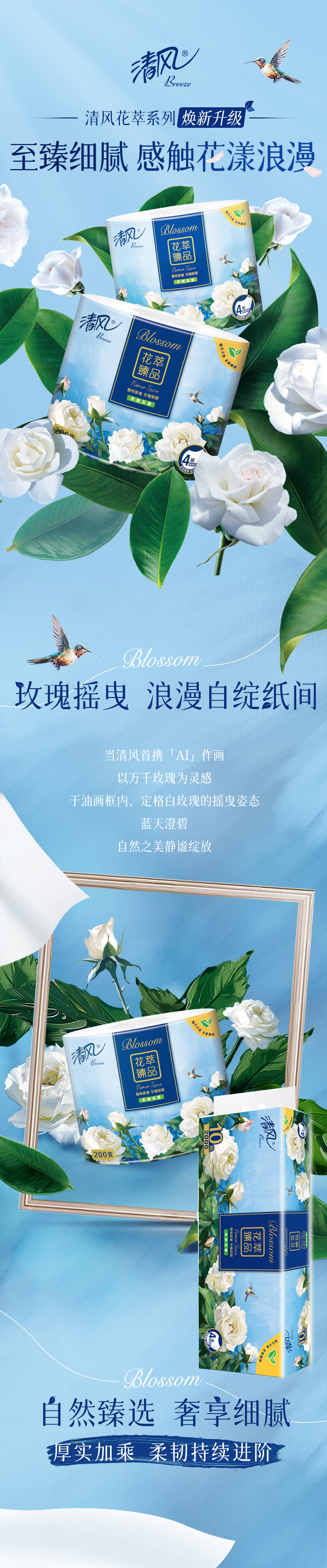 清风牌花萃有芯10卷卷筒卫生纸2000g 【原生木浆】