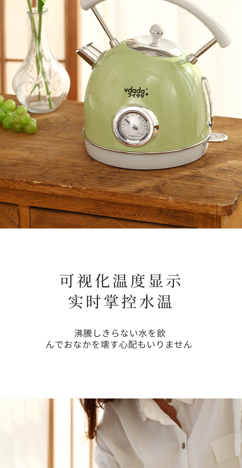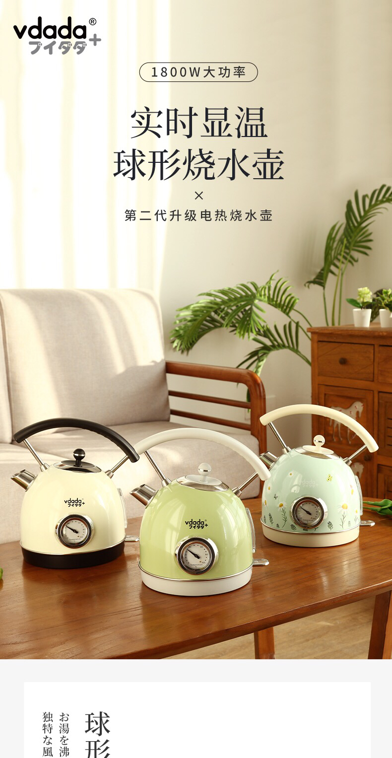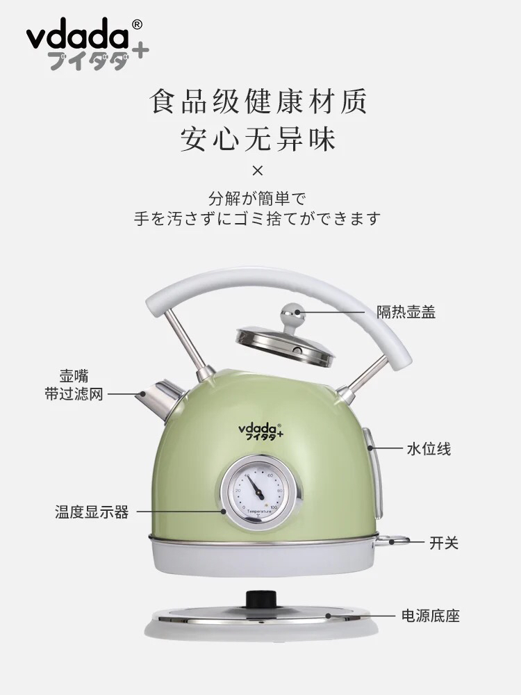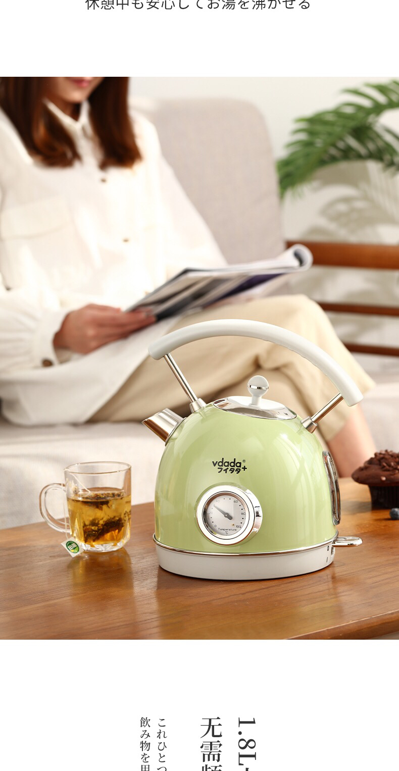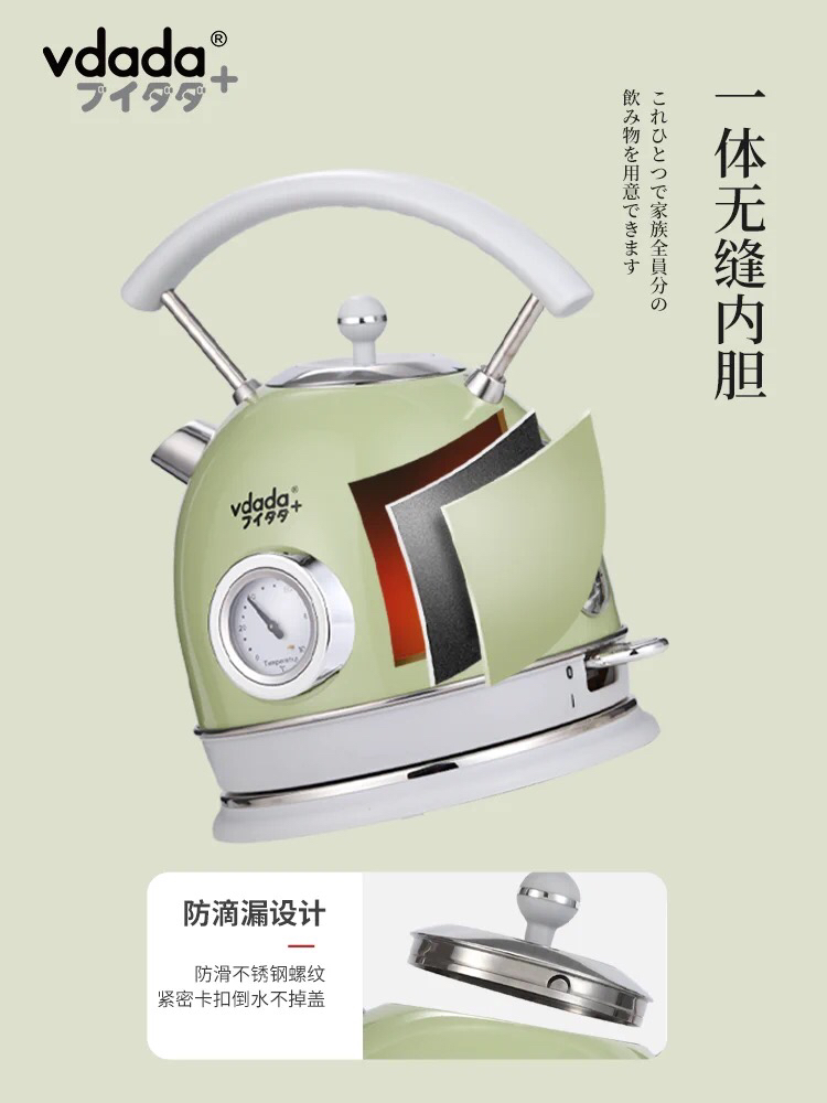 VDADA日本进口电热烧水壶家用大容量1.8L泡茶自动断电复古开水壶-金卡会员6折
