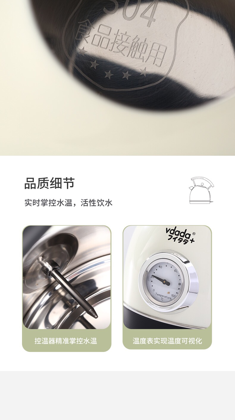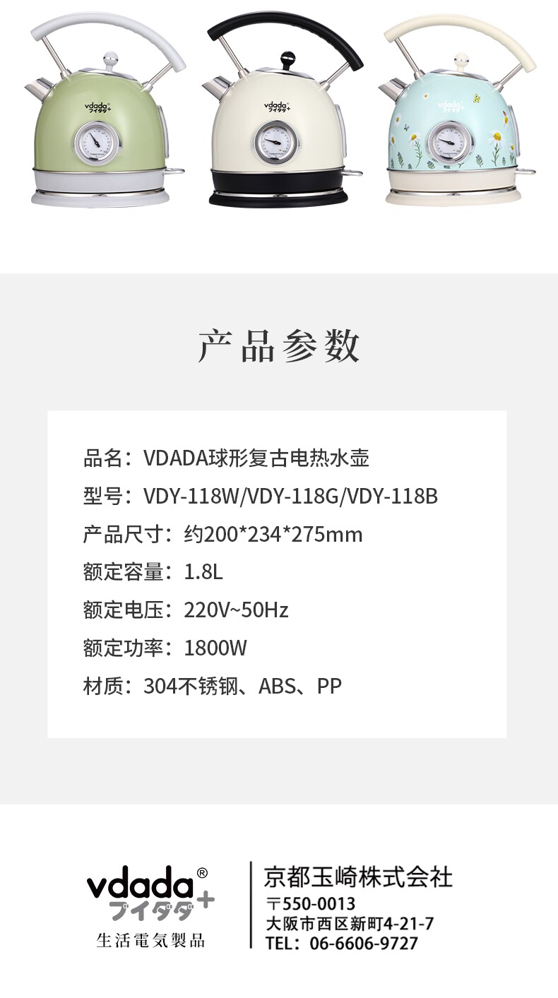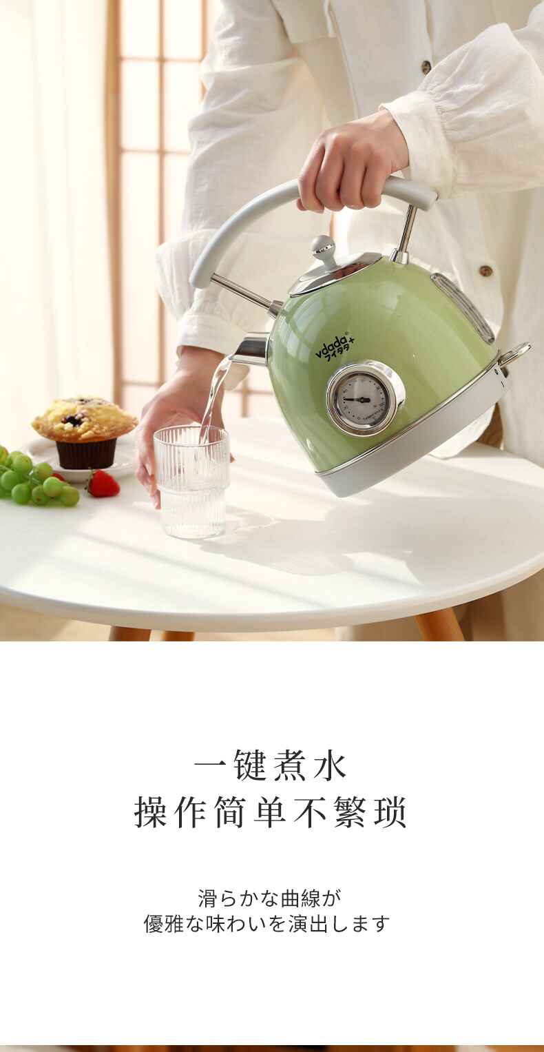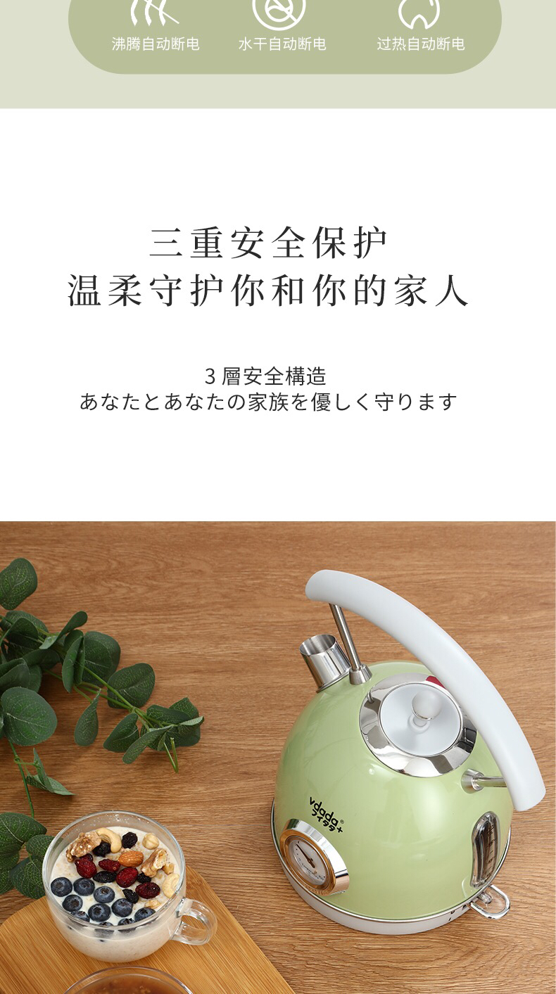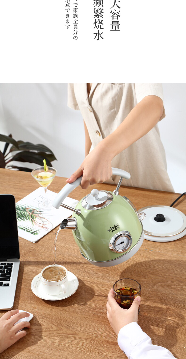 VDADA日本进口电热烧水壶家用大容量1.8L泡茶自动断电复古开水壶-金卡会员6折