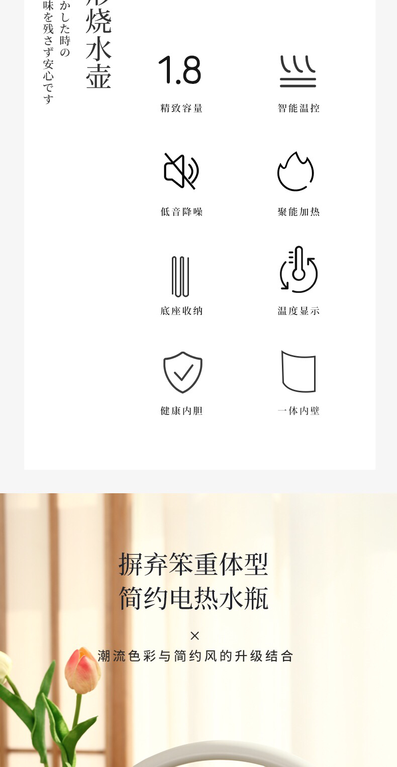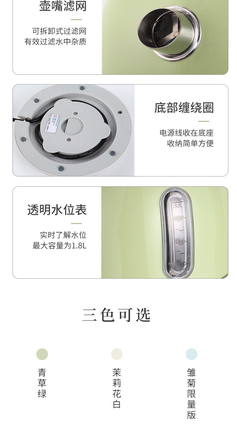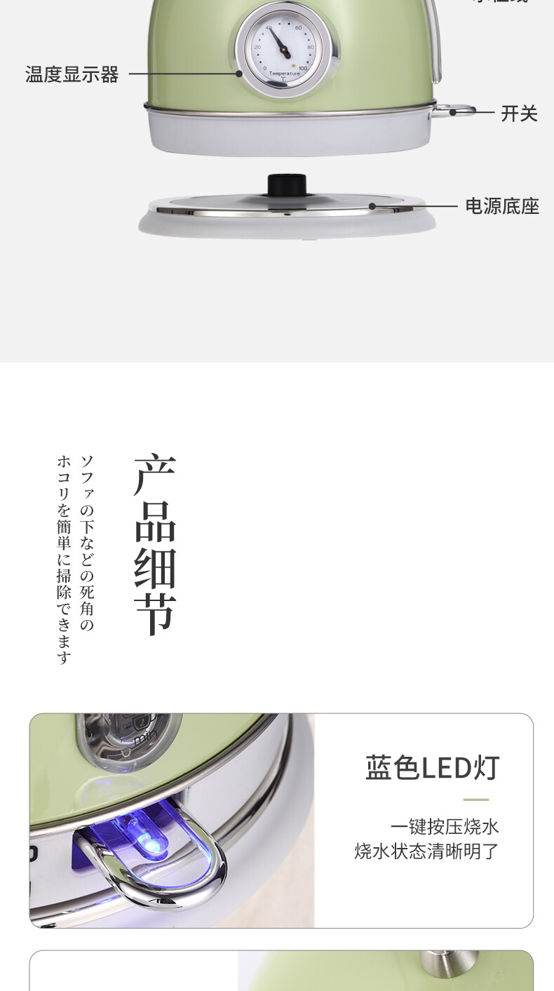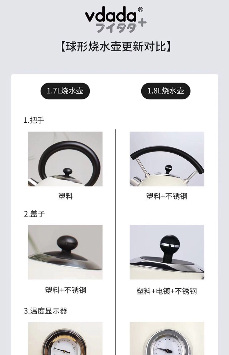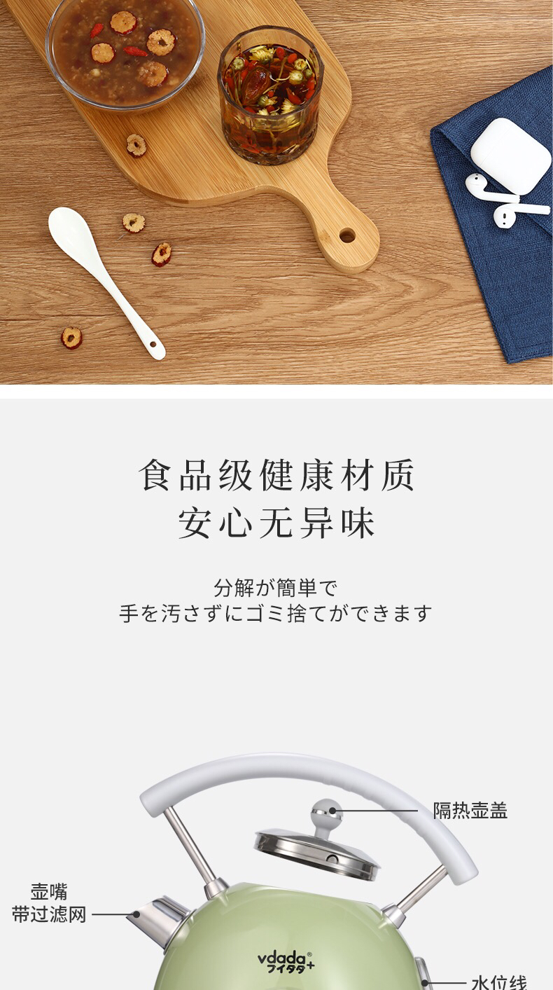 VDADA日本进口电热烧水壶家用大容量1.8L泡茶自动断电复古开水壶-金卡会员6折