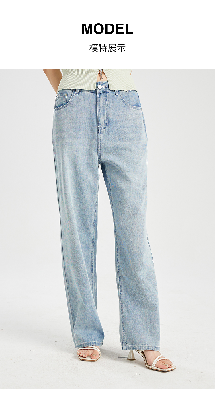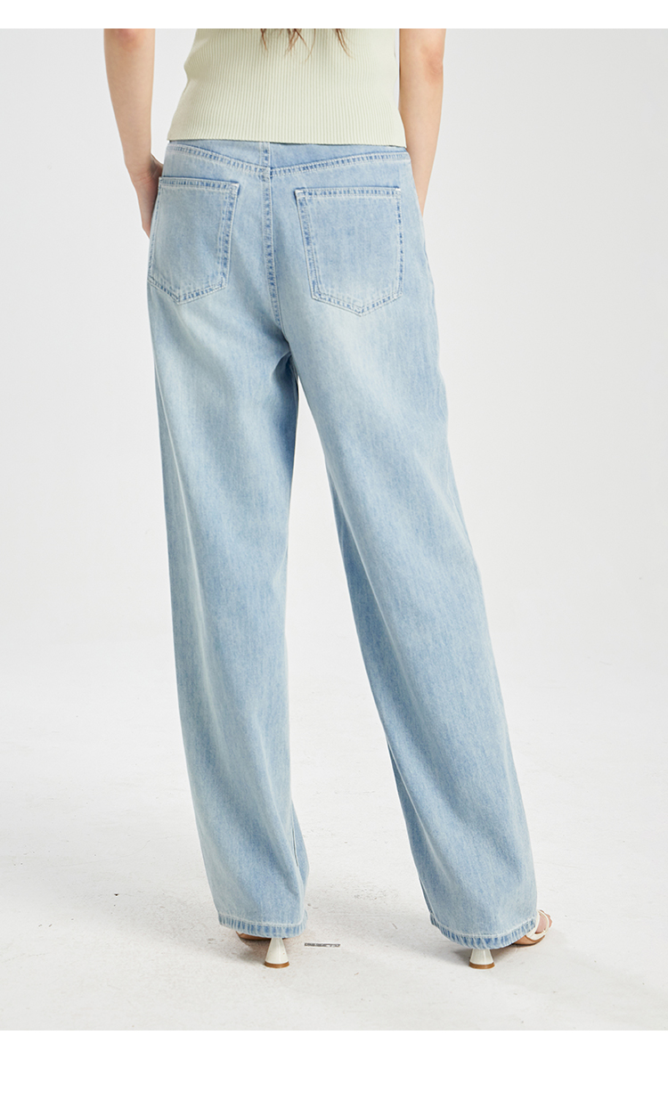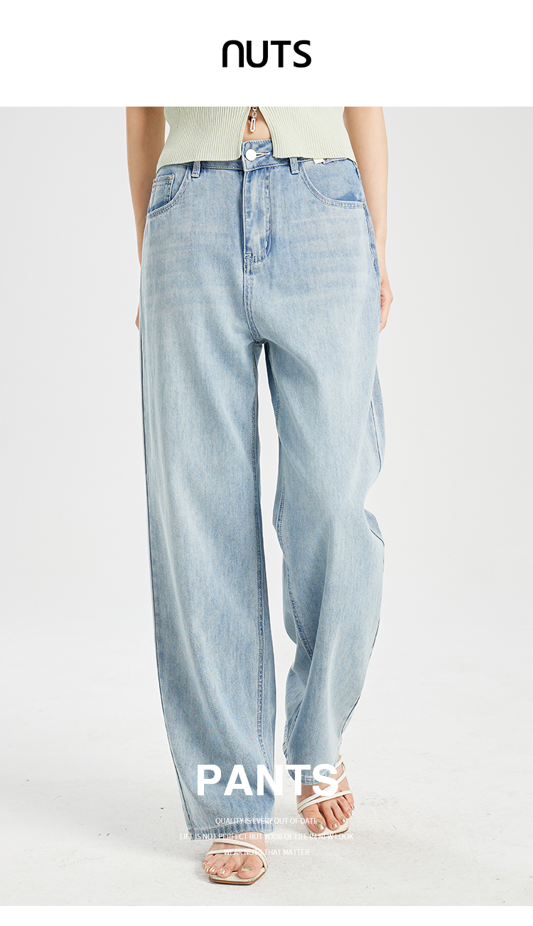 NUTS商场同款夏季蓝色简约气质休闲宽松直筒牛仔裤422112281