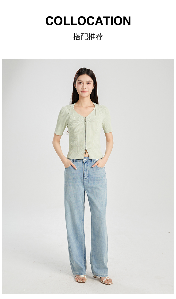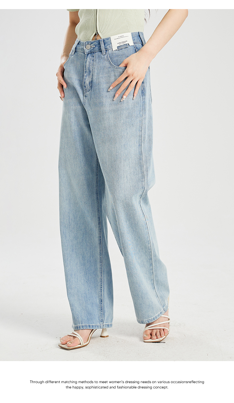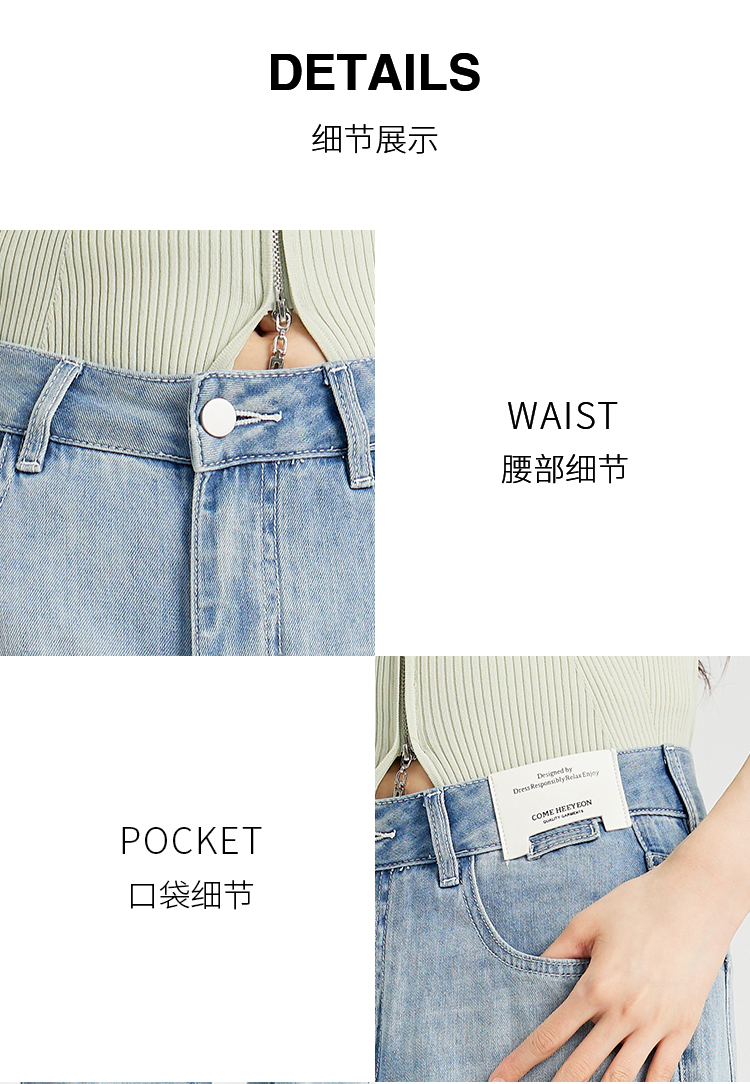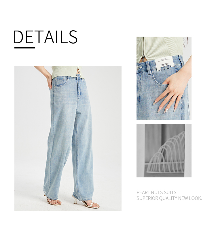 NUTS商场同款夏季蓝色简约气质休闲宽松直筒牛仔裤422112281