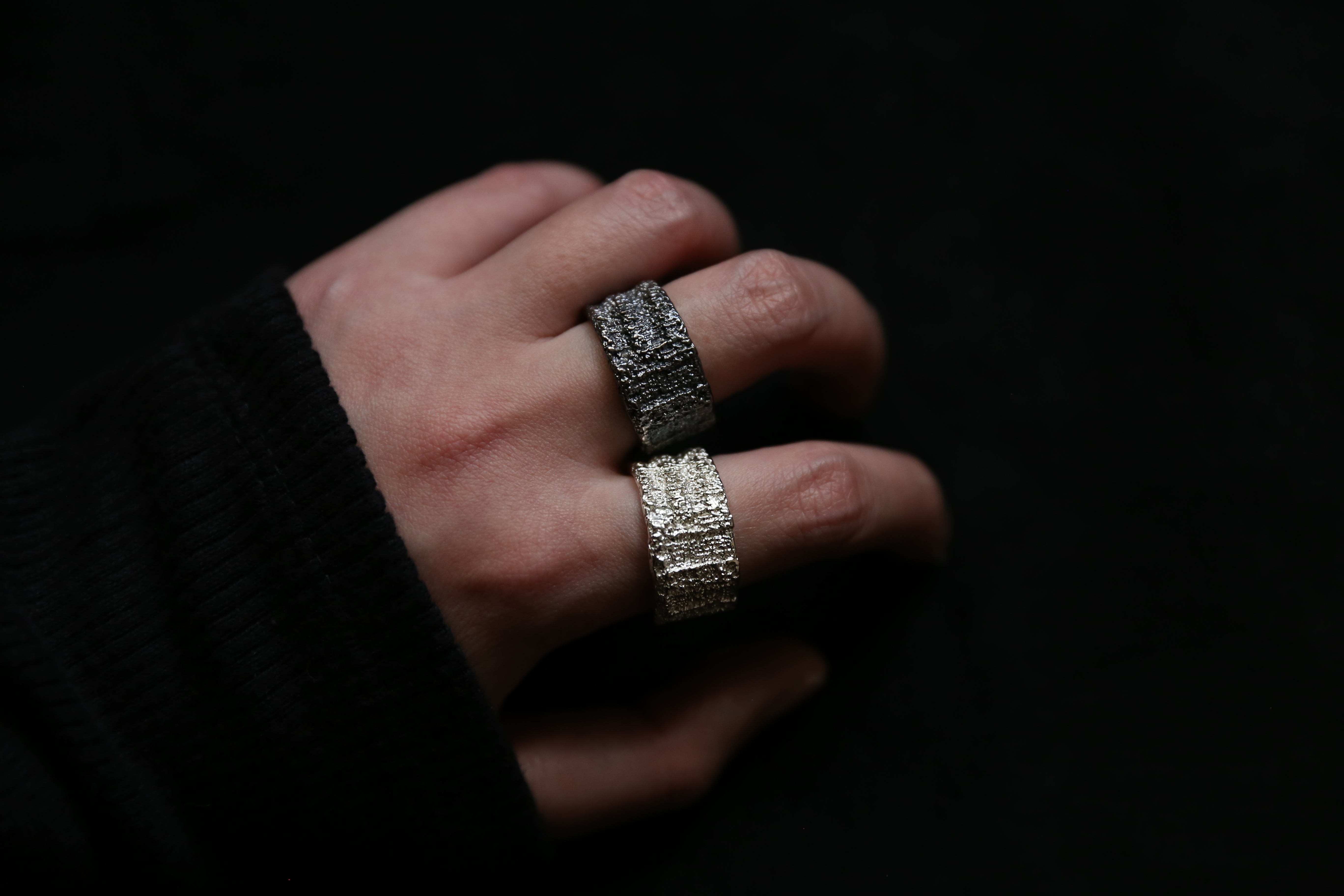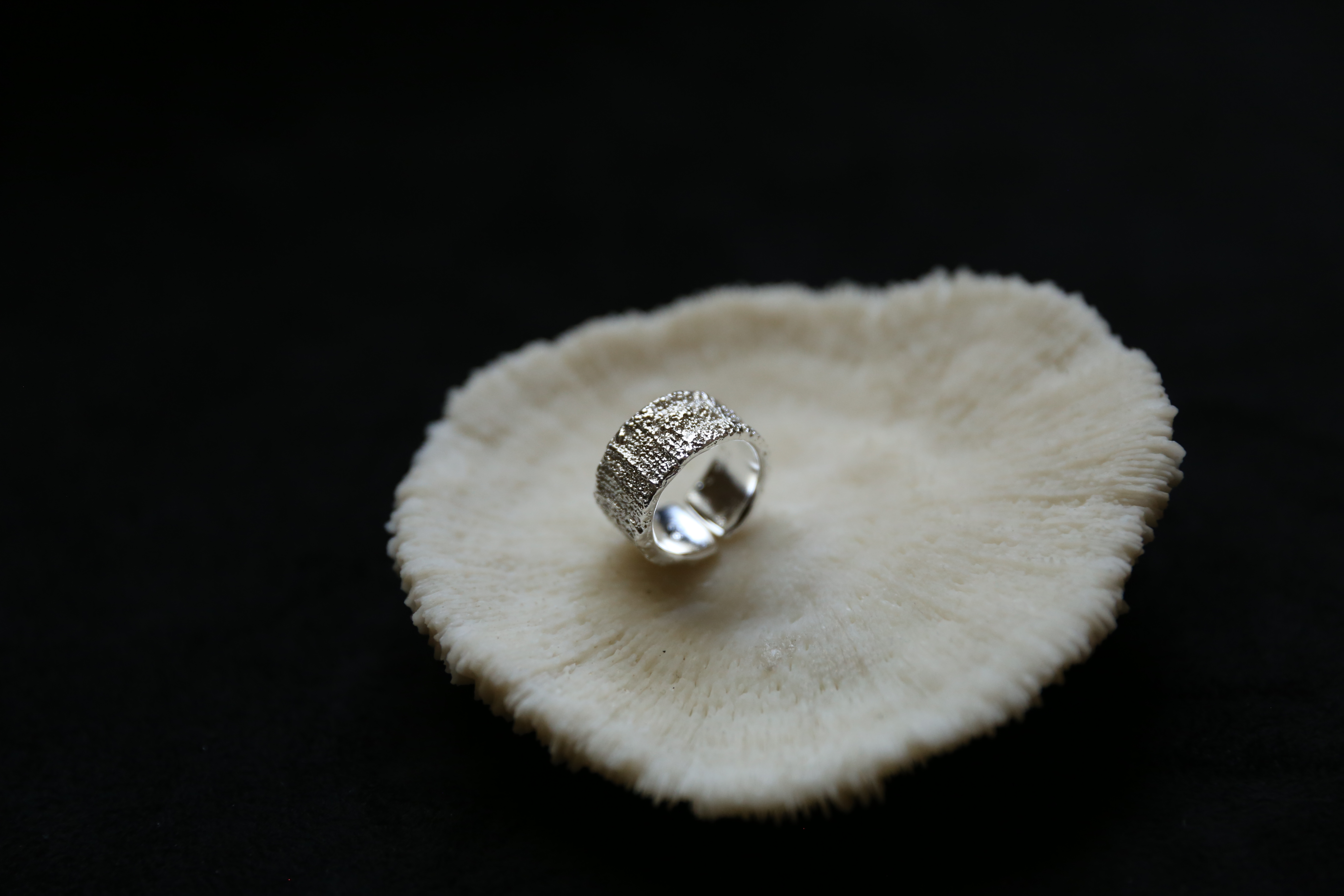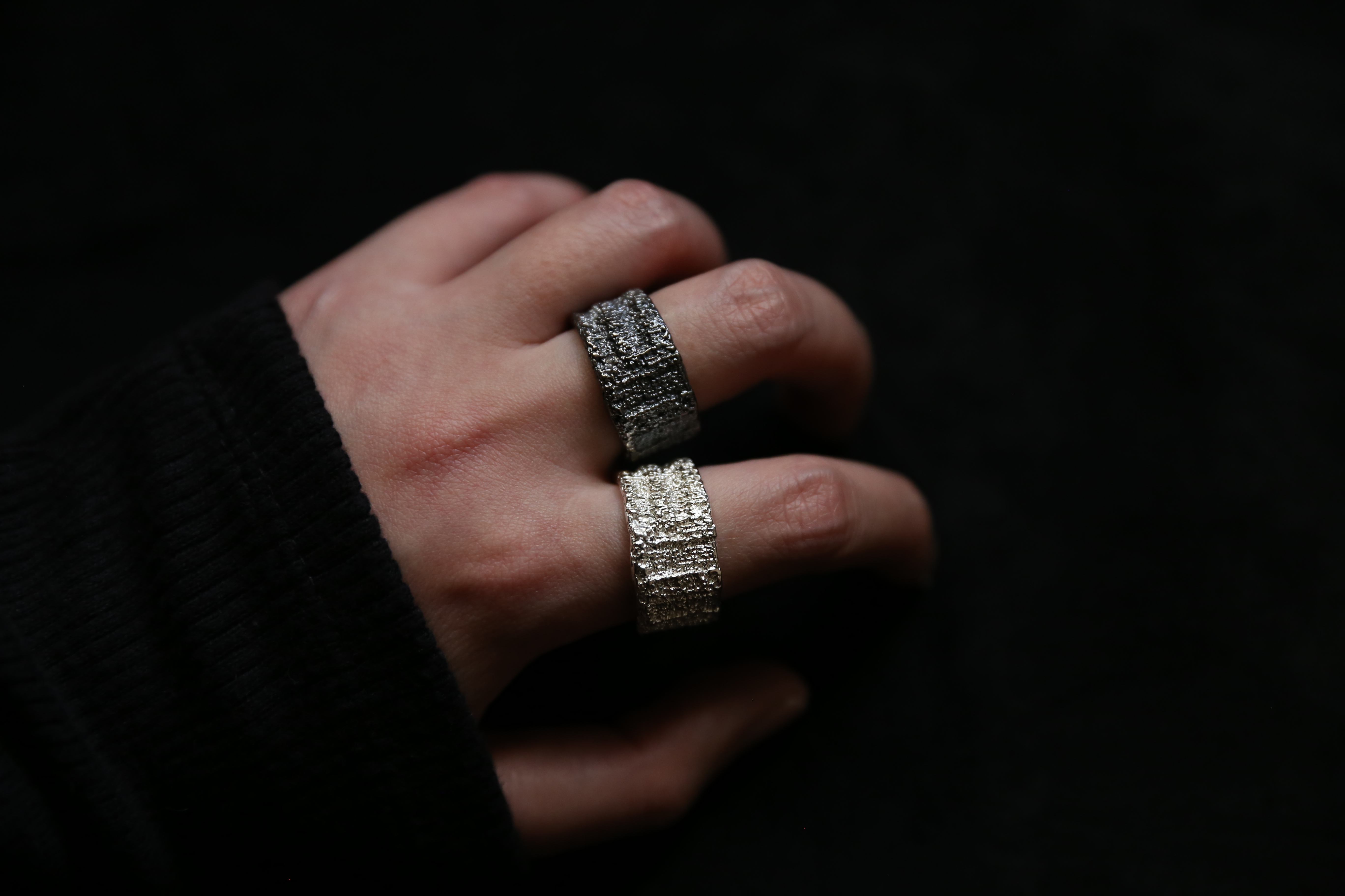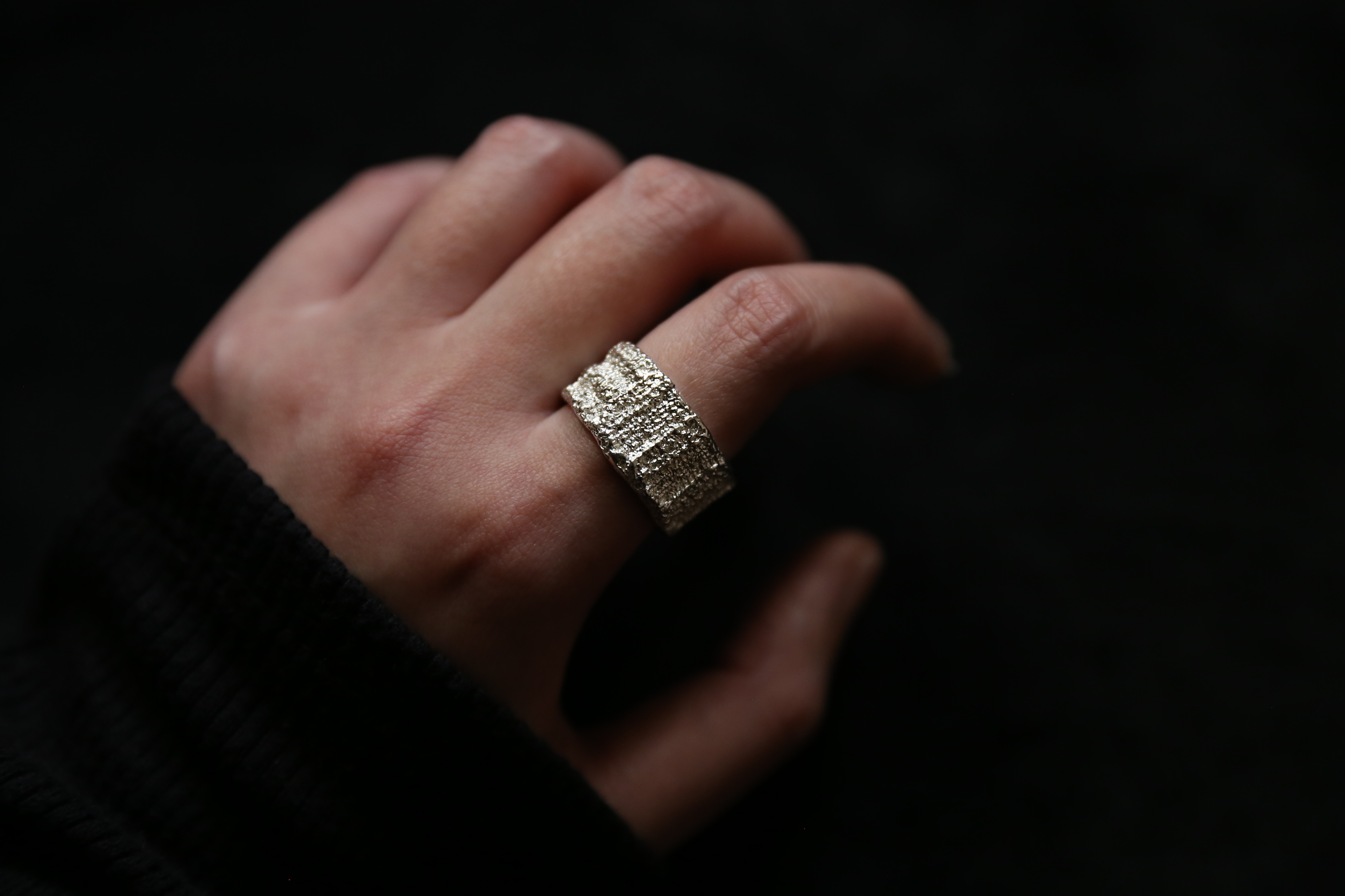 925银手工织物肌理戒指