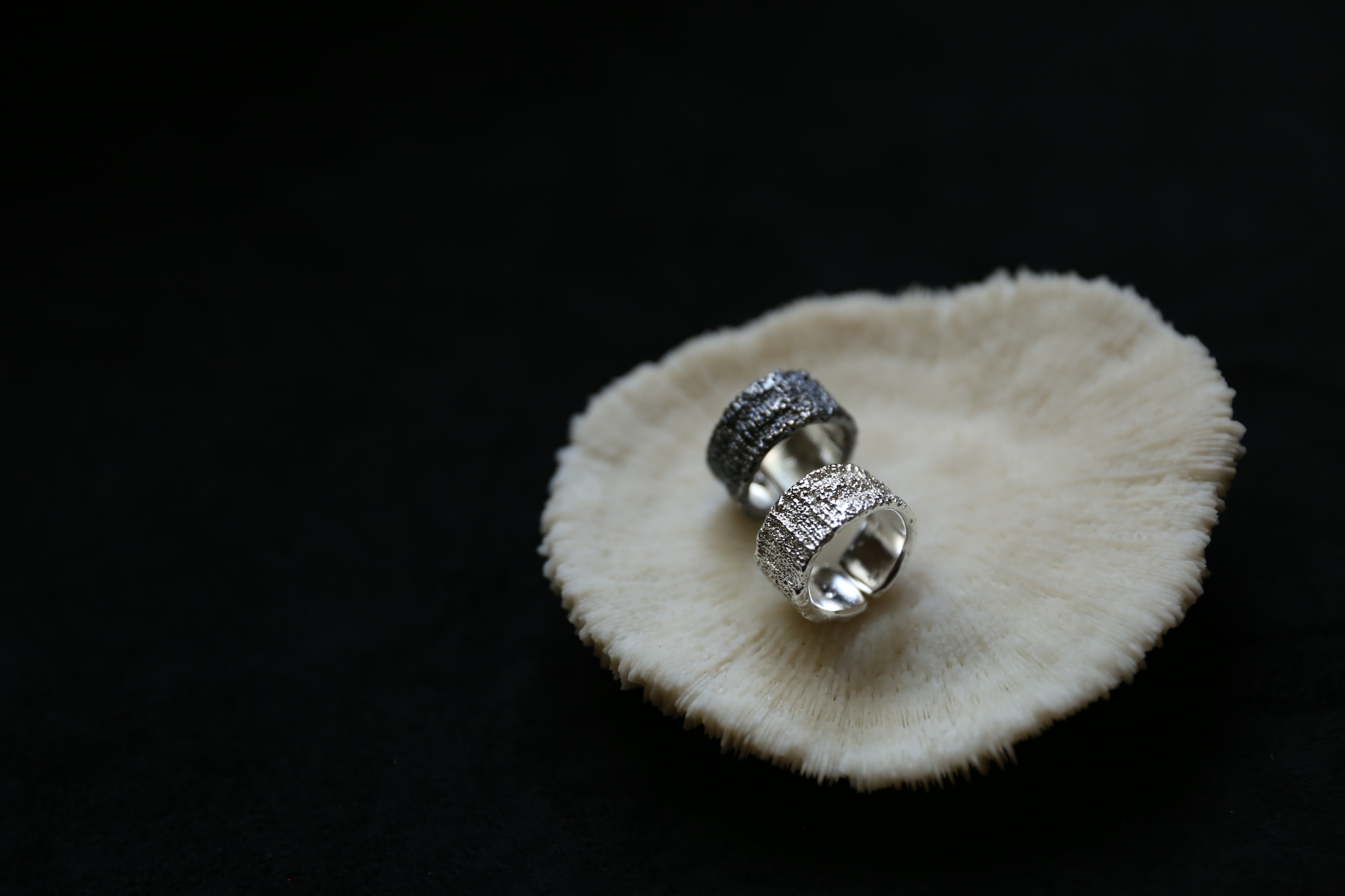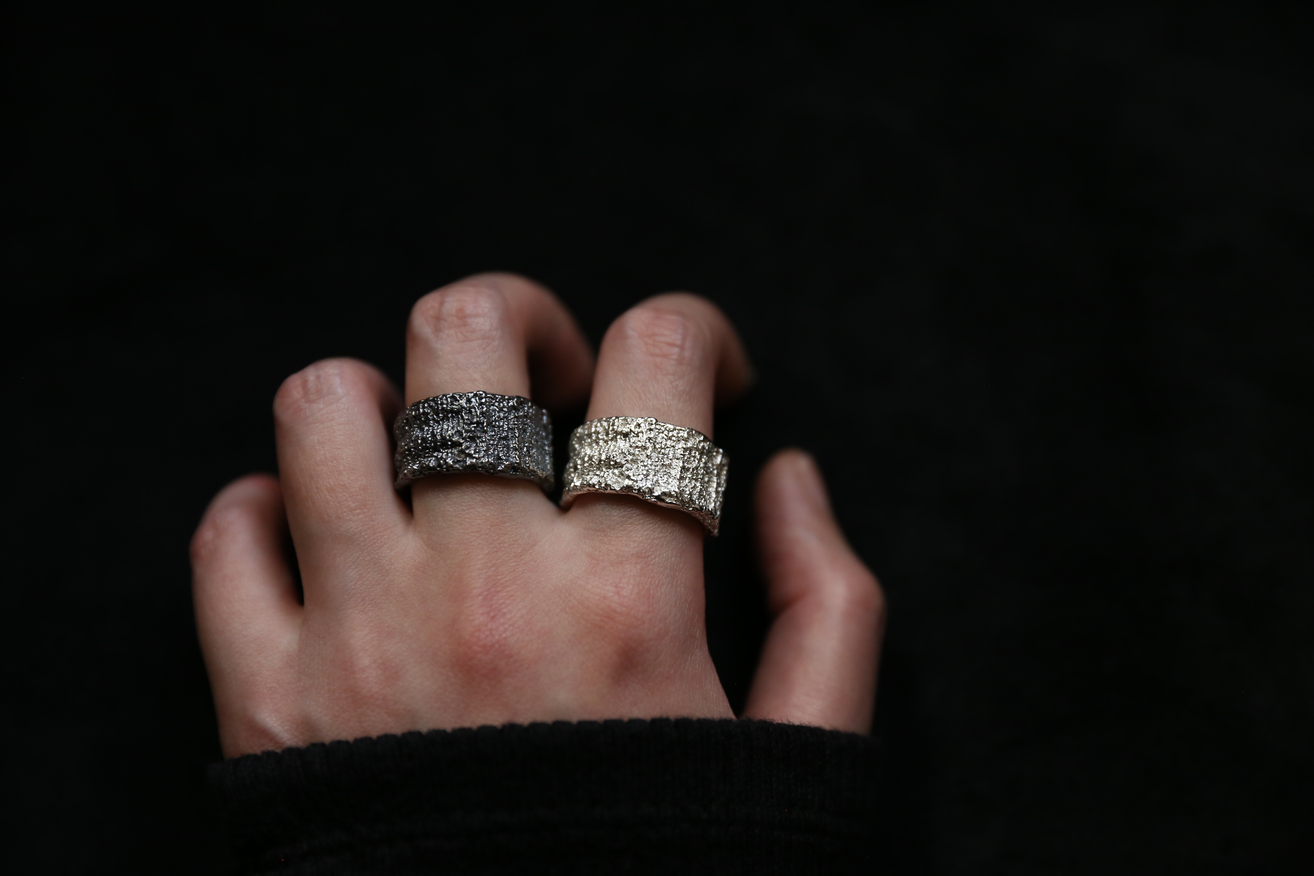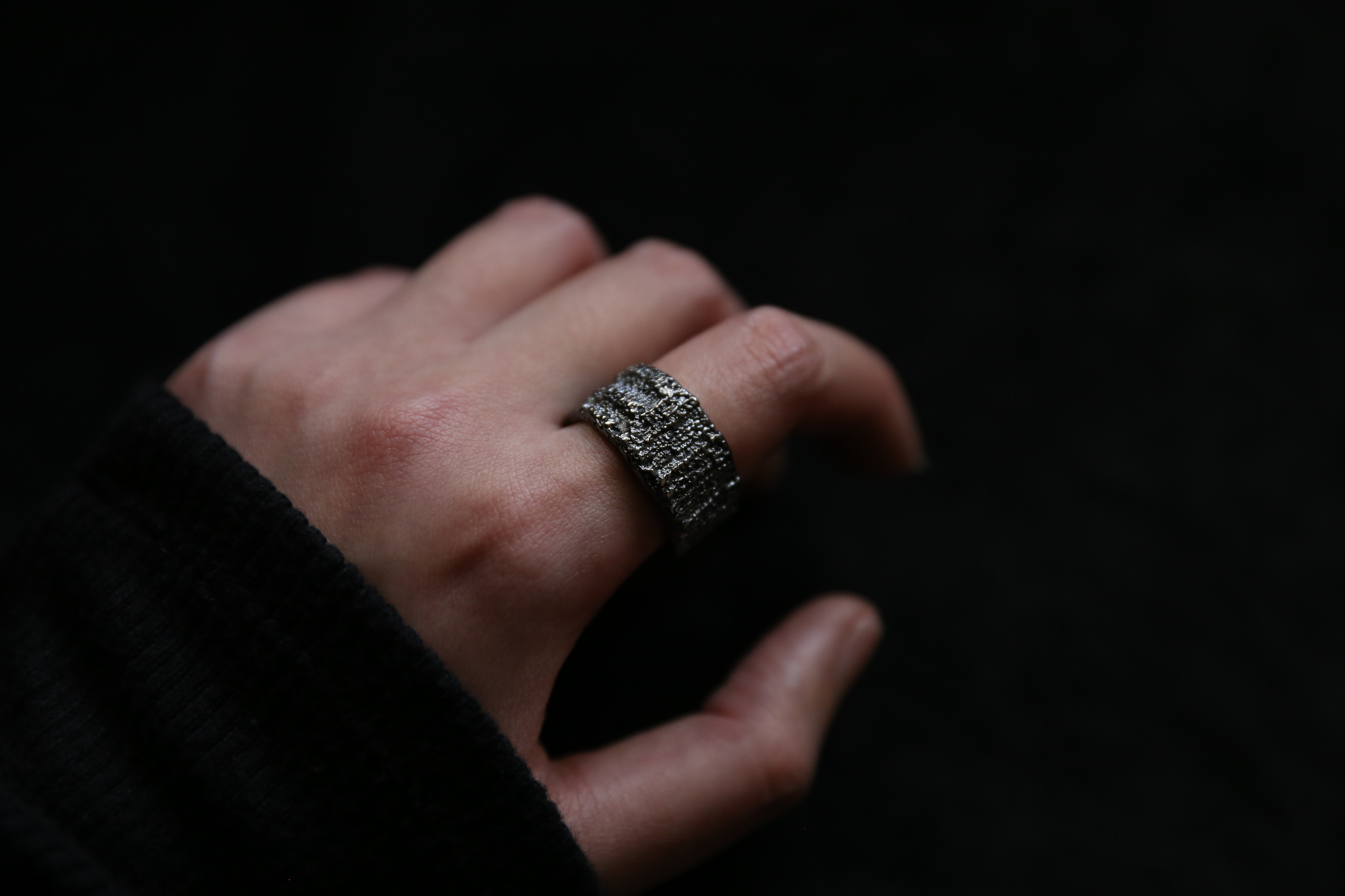 925银手工织物肌理戒指