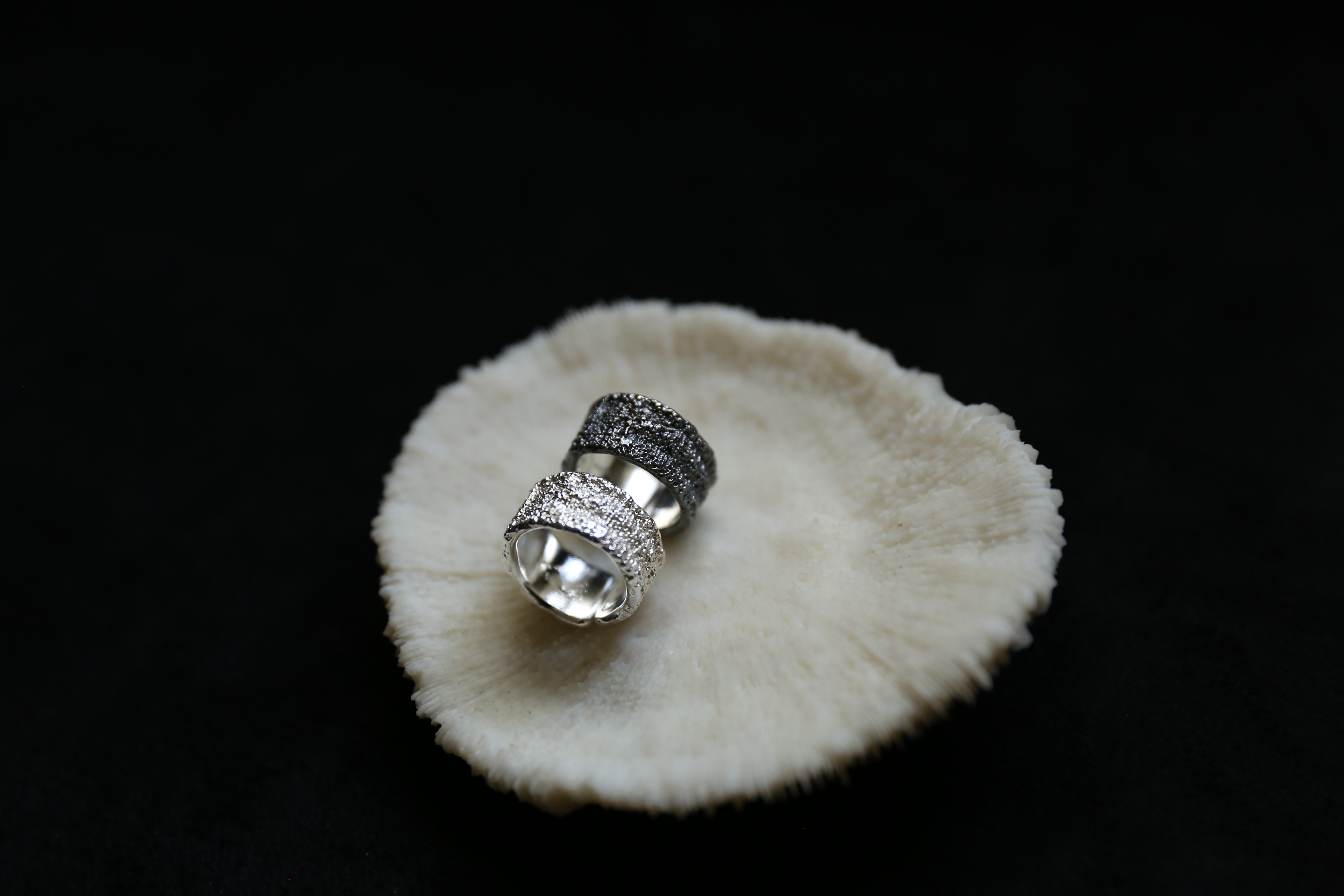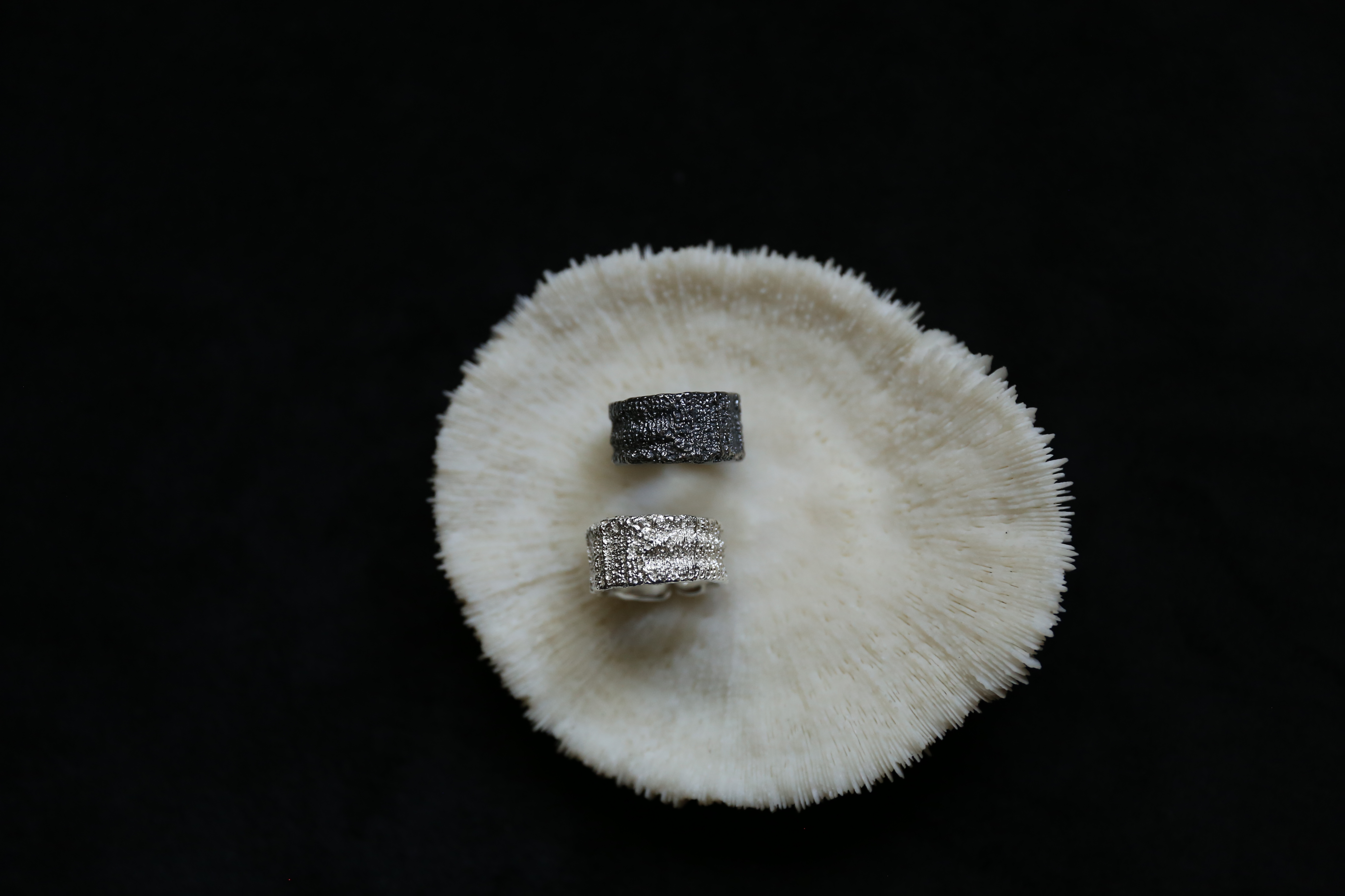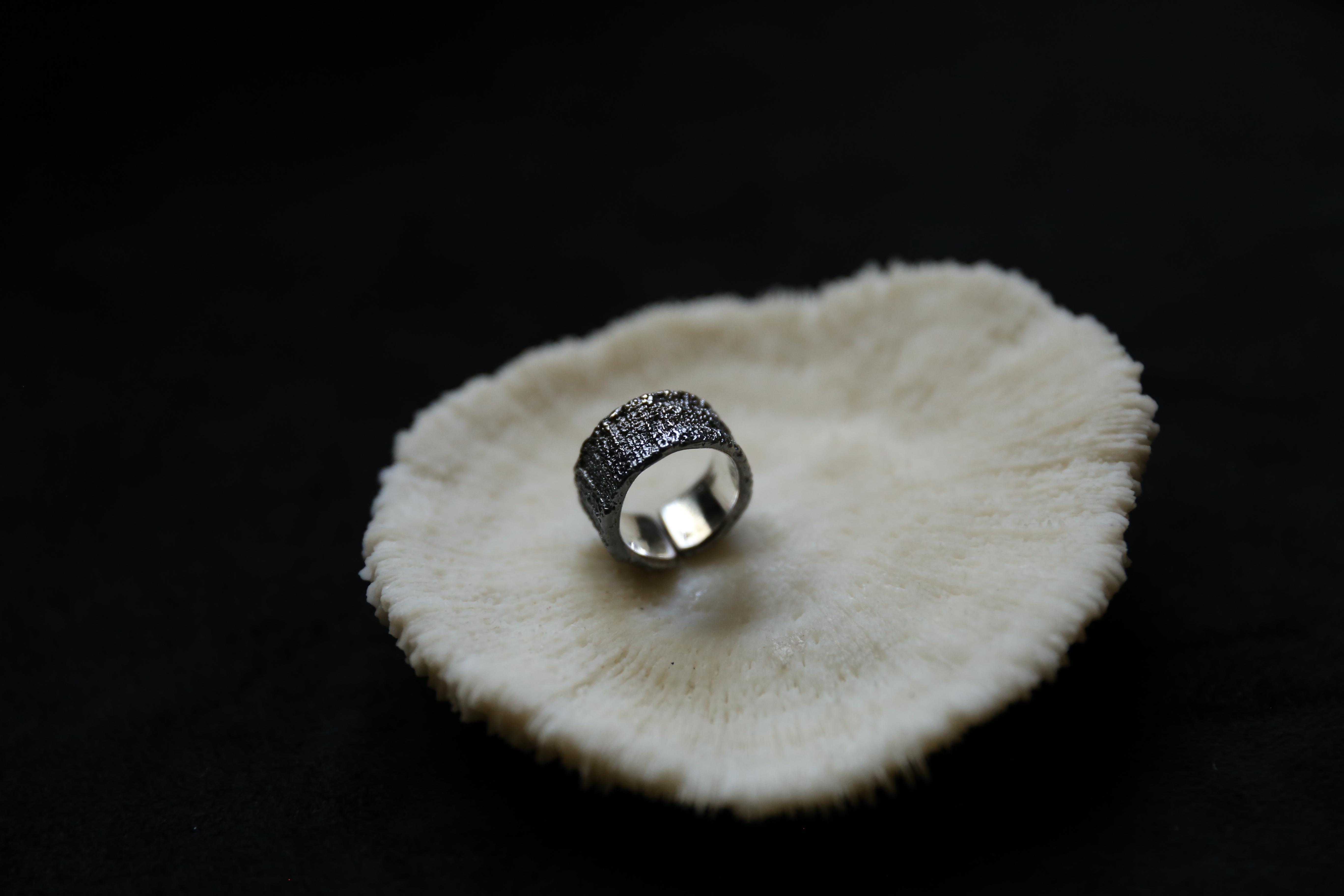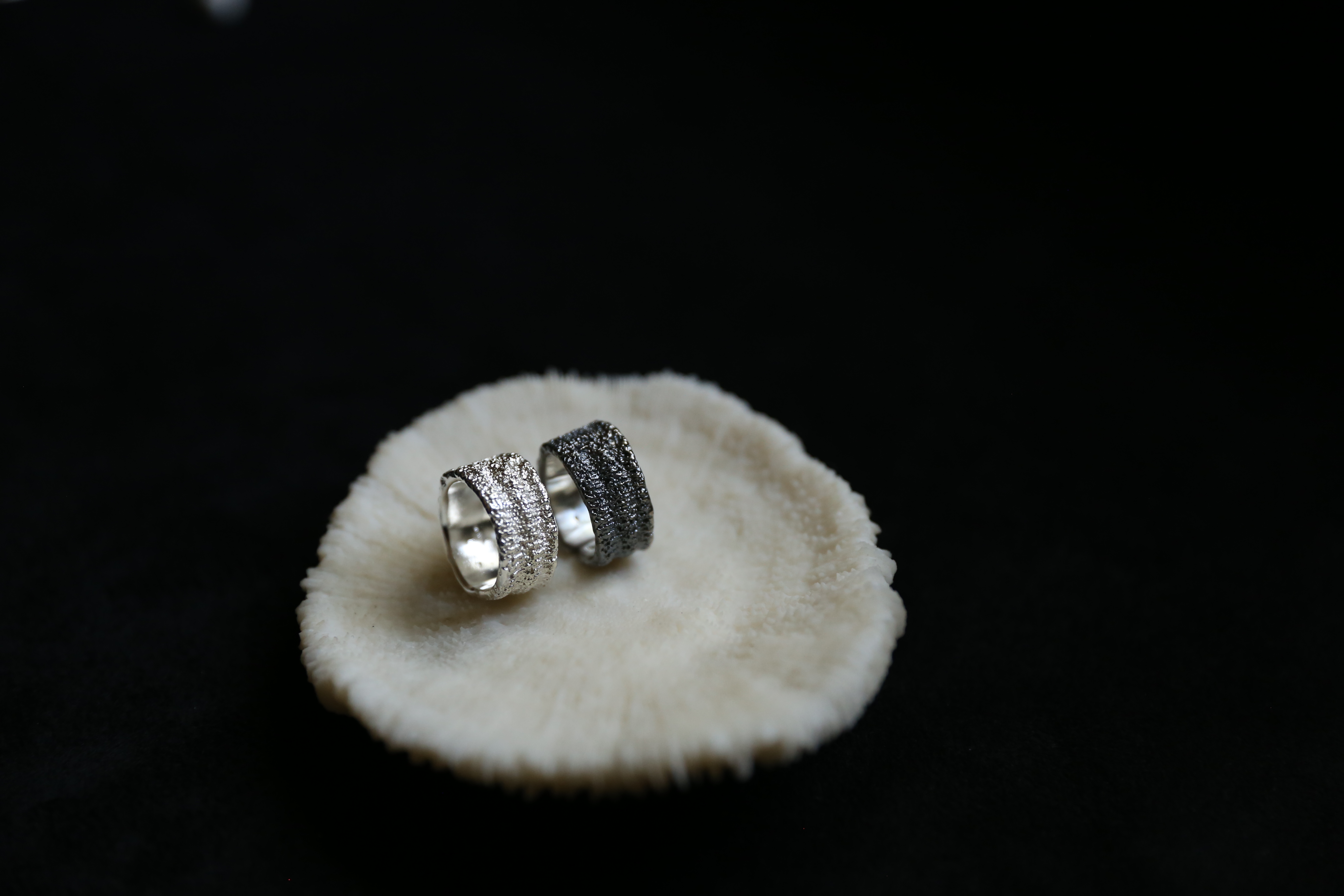 925银手工织物肌理戒指