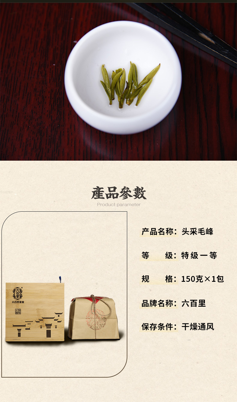 六百里茶叶 2024新茶明前头采黄山毛峰 150g 甘香味醇 48小时发货