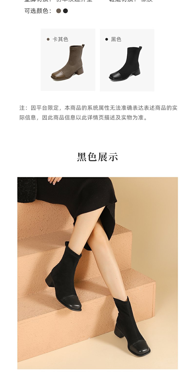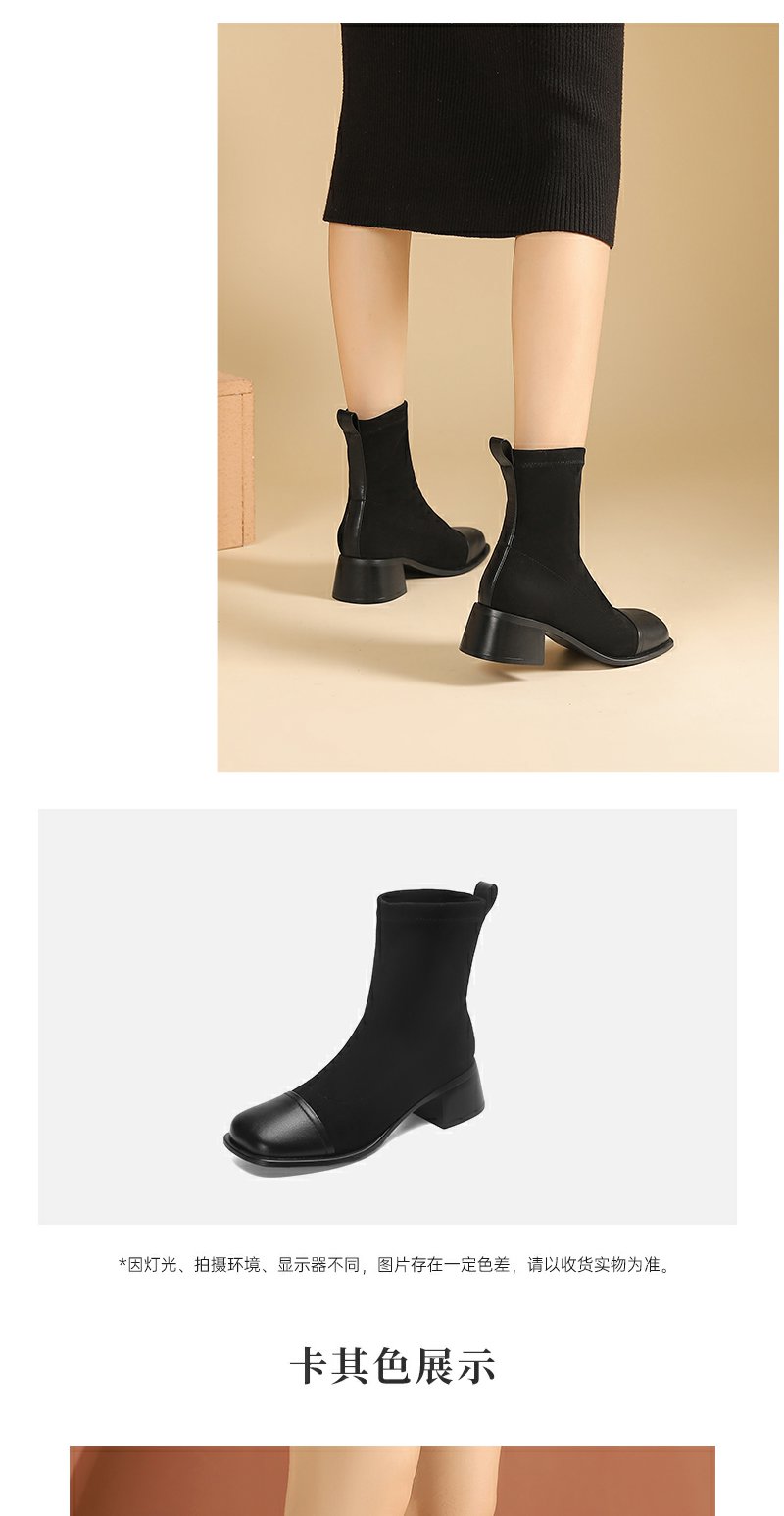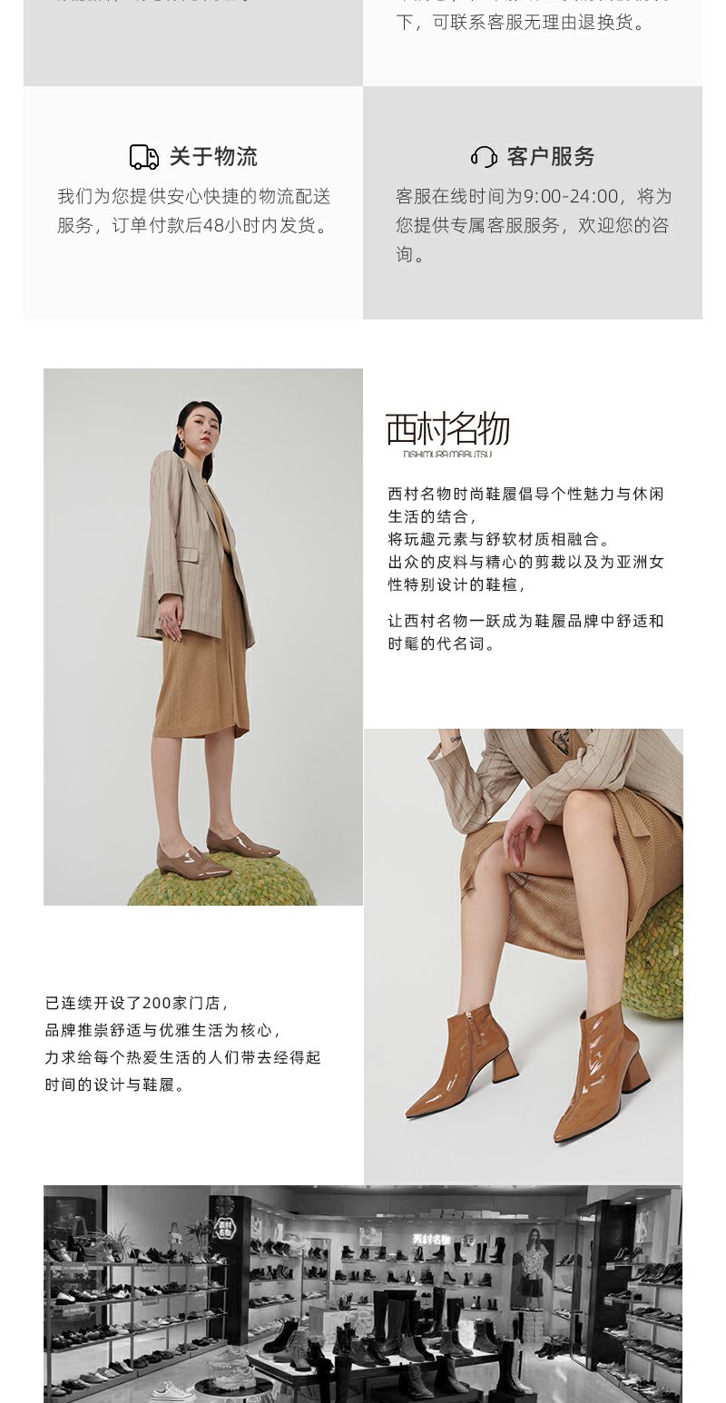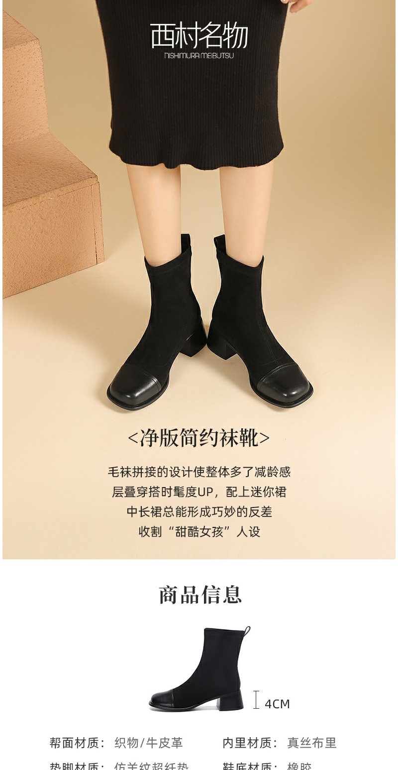西村名物法式小短靴及踝靴女2022秋季新款简约拼接瘦瘦靴43971