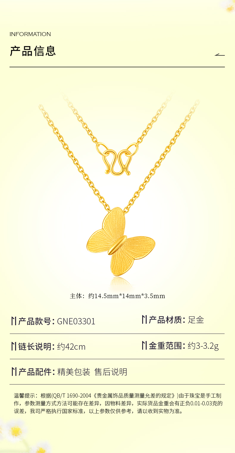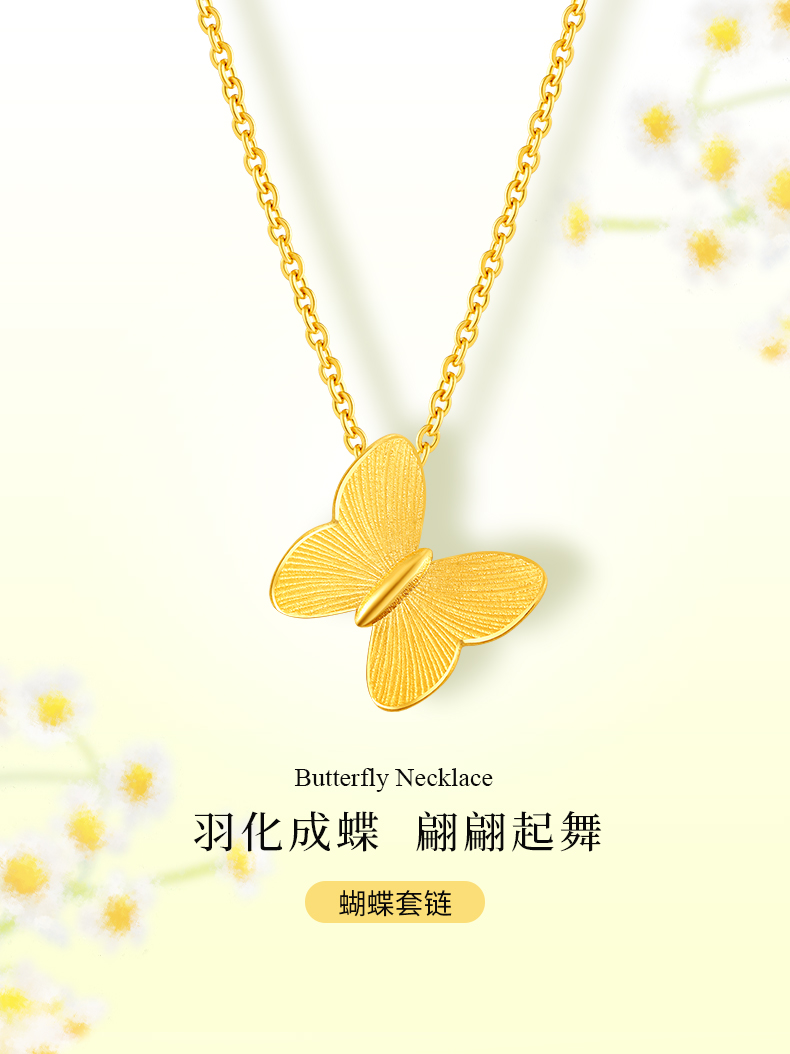 黄金项链女足金蝴蝶套链百搭锁骨链送女友礼物【按克计价黄金1】MEMORA诗普琳GNE03301(线上专供)