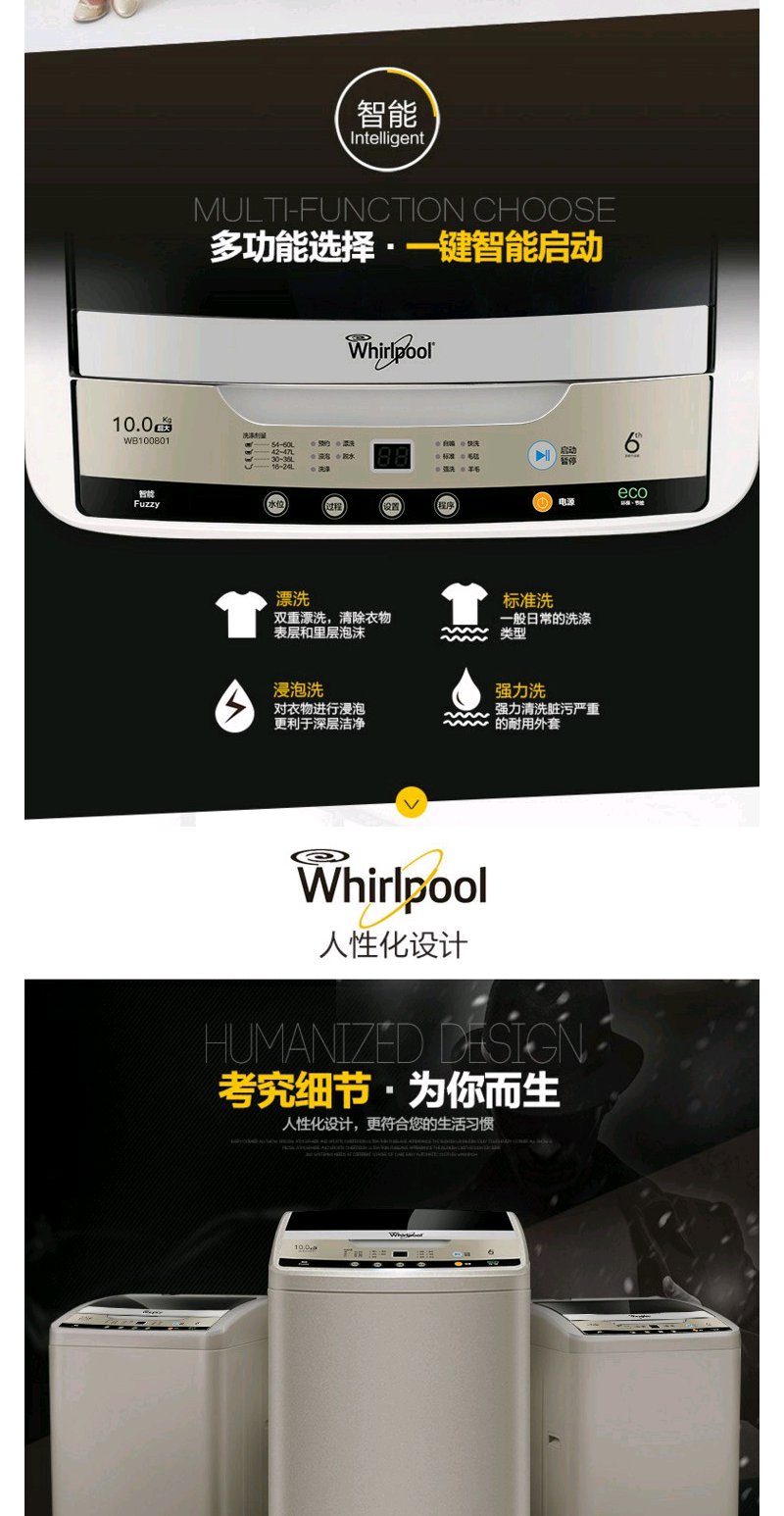 惠而浦(Whirlpool)WB100801 10公斤大容量全自动波轮洗衣机