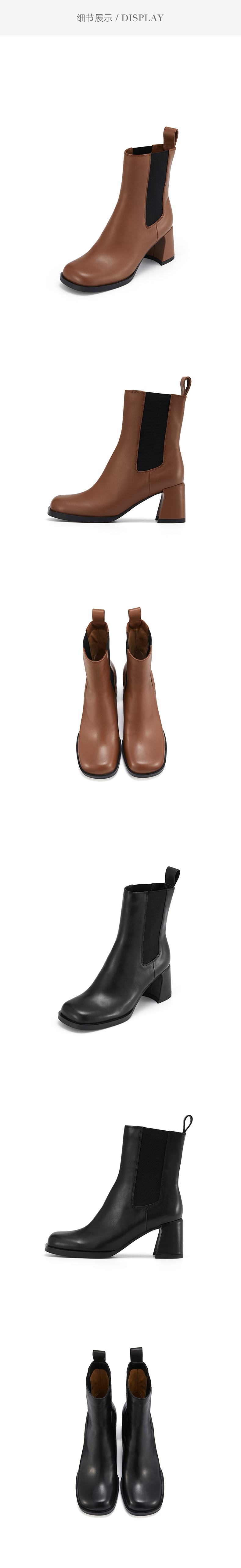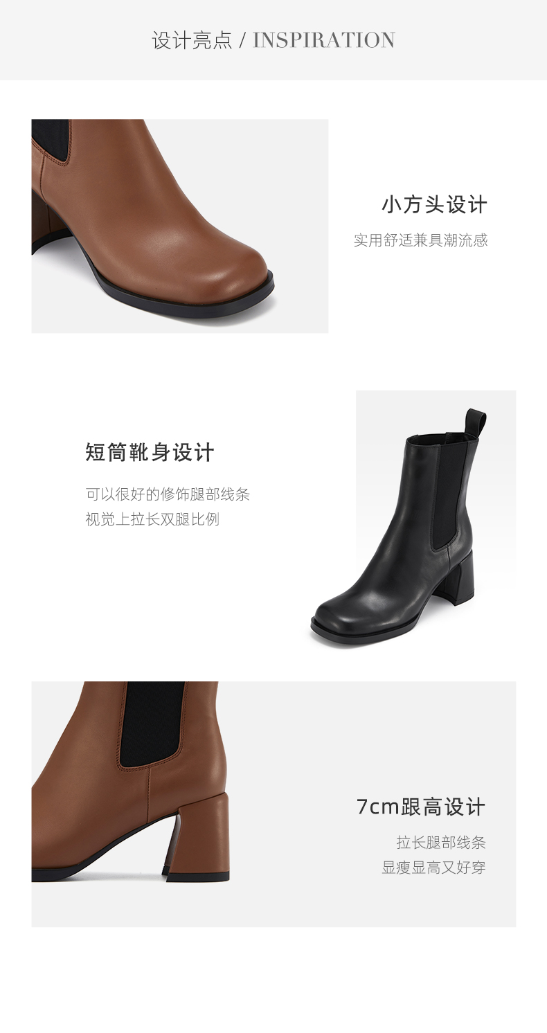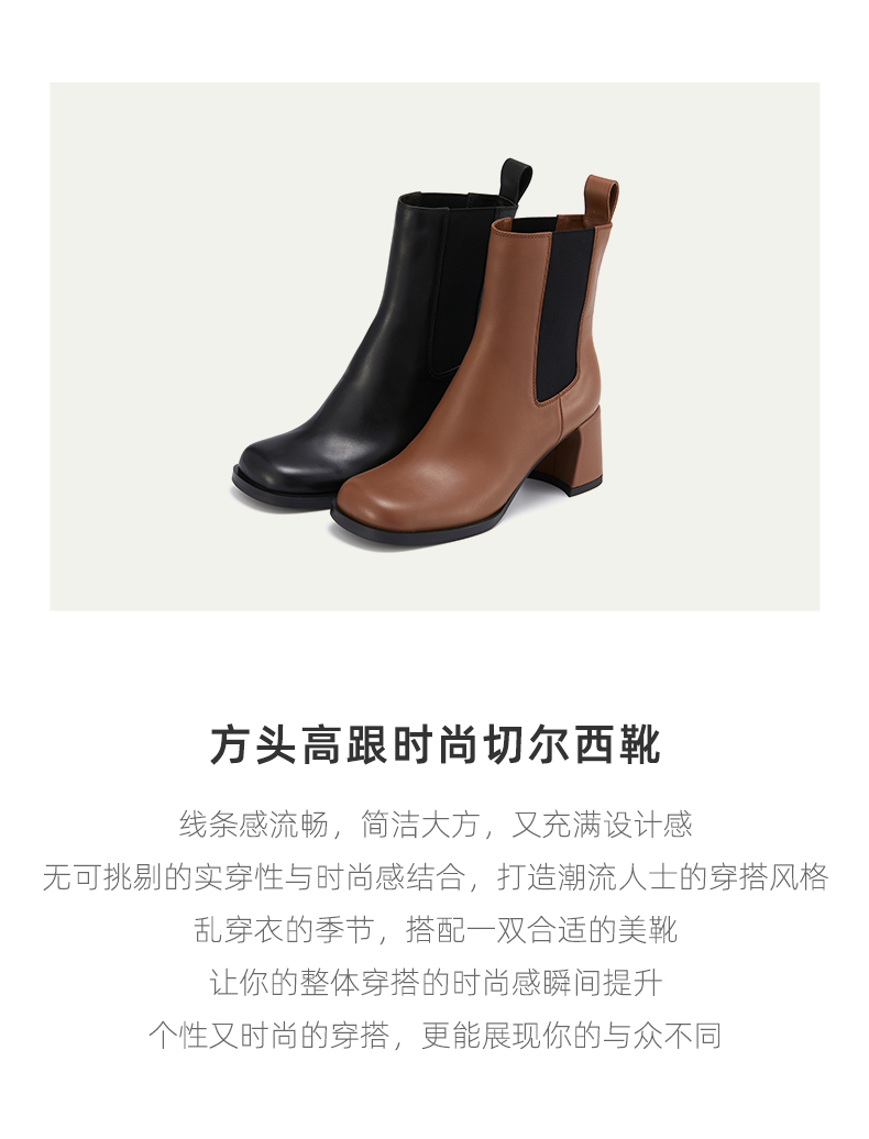 westory2021秋季新品粗高跟切尔西短靴方头女靴W21DS81411