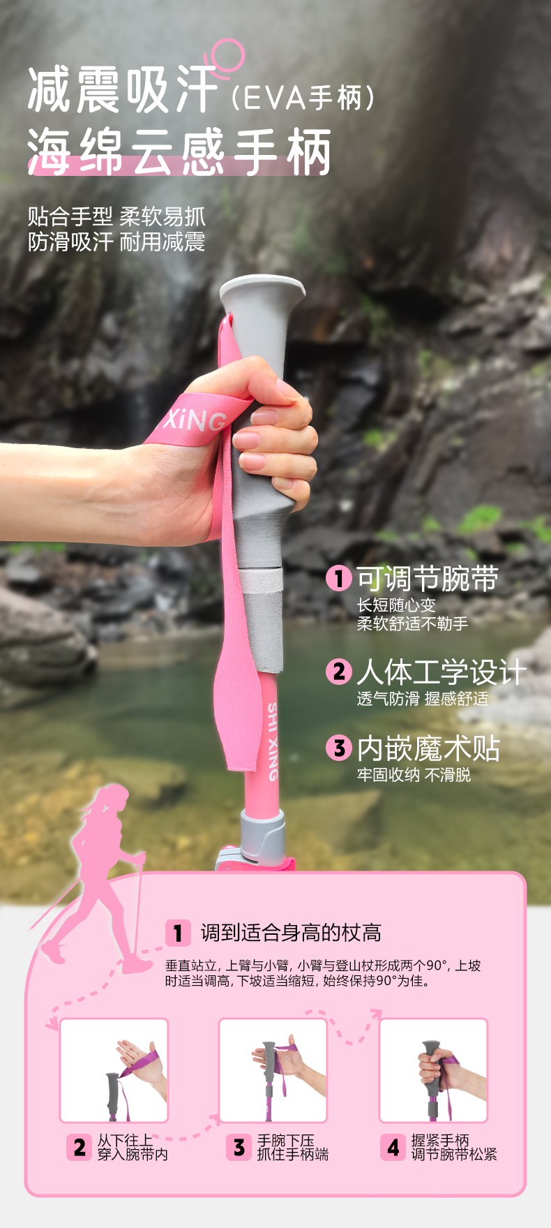 [秒杀]时行扶摇碳纤维可折叠轻量化登山杖