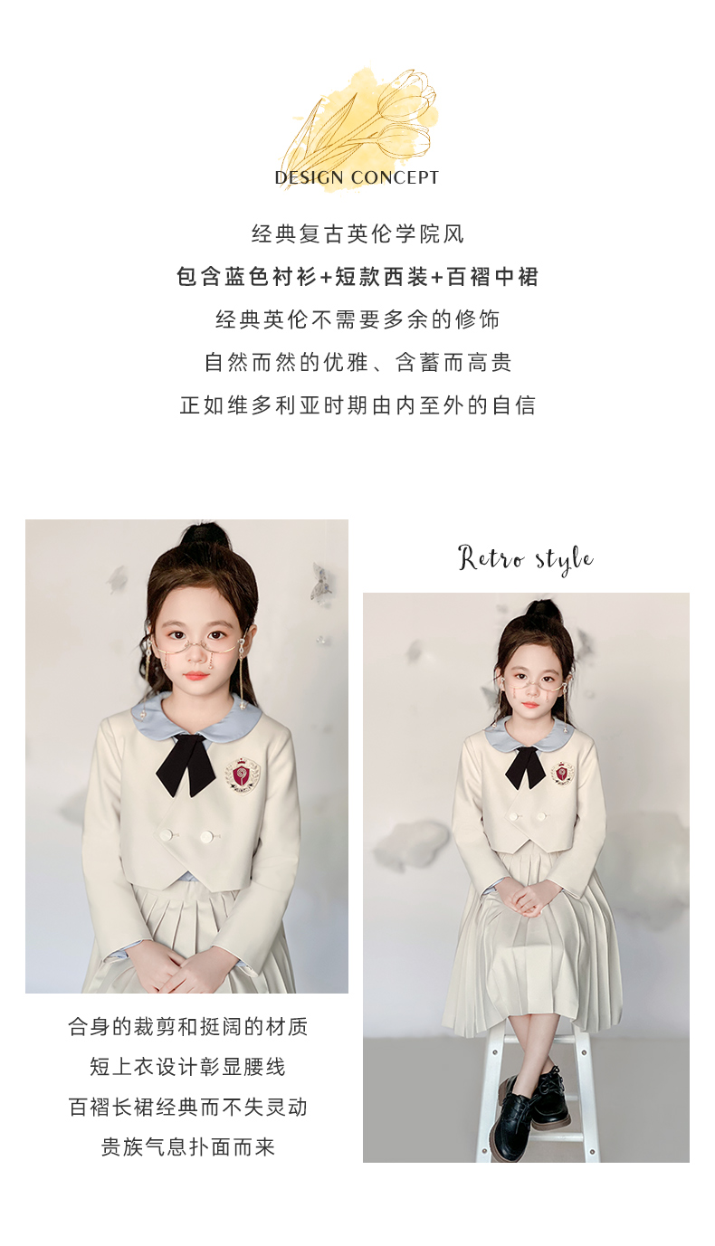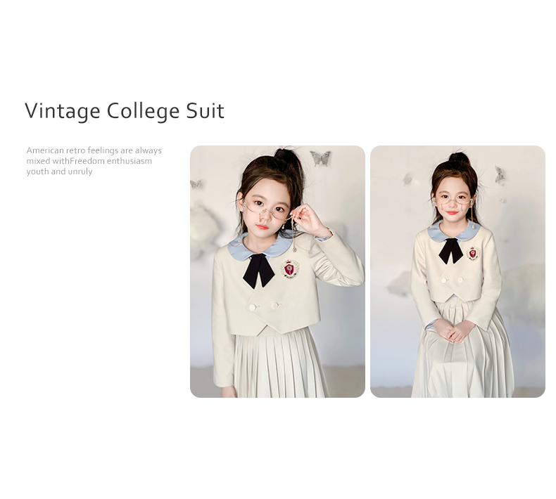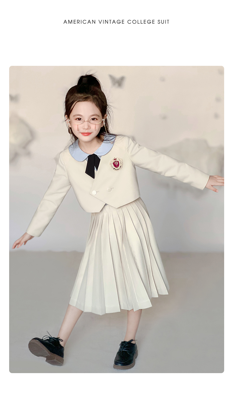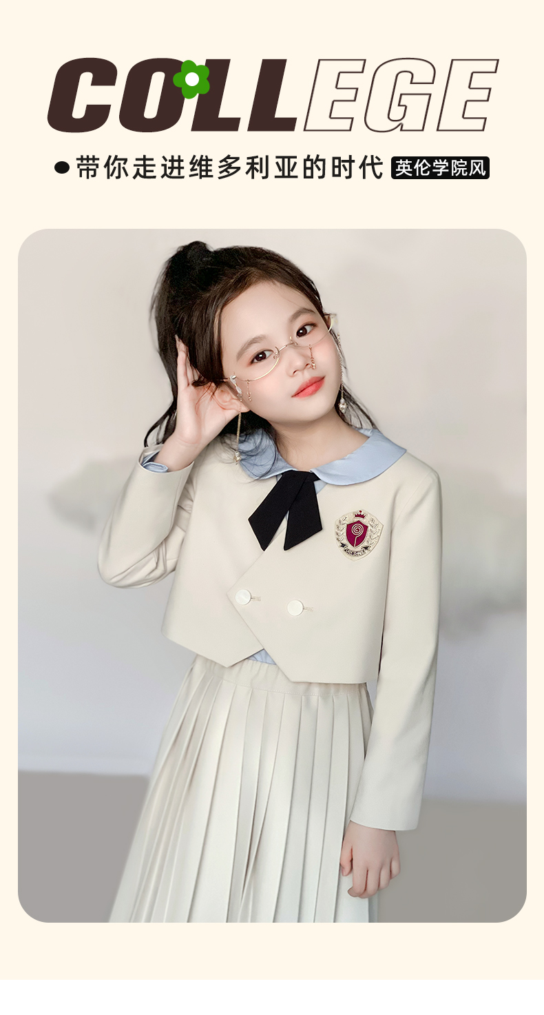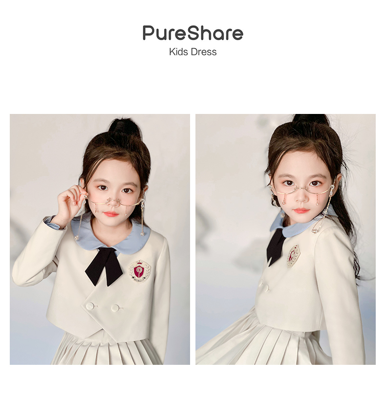 【云优选】pureshare蓬纱馆 女童学院风套装春秋2025新款春儿童百褶裙(裙子+西装外套+领结,不含衬衫)