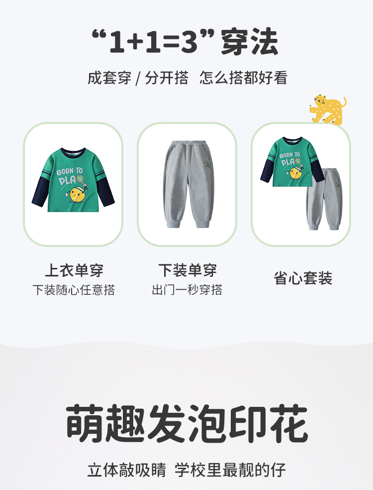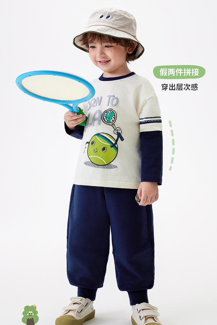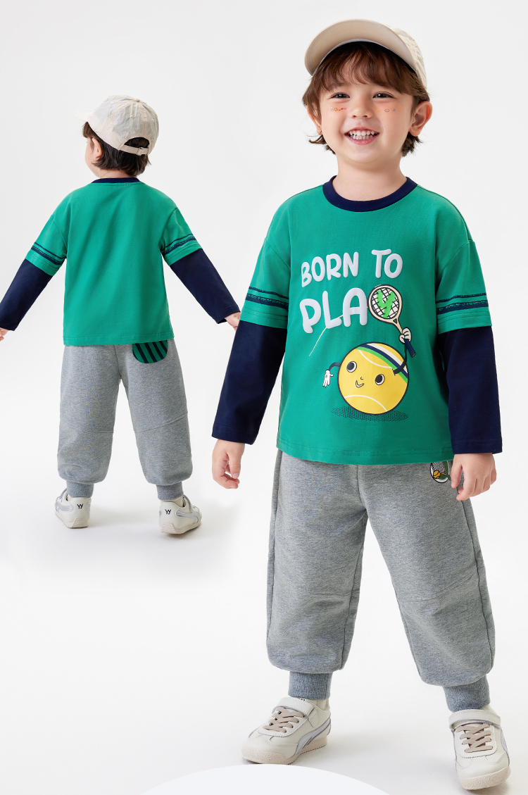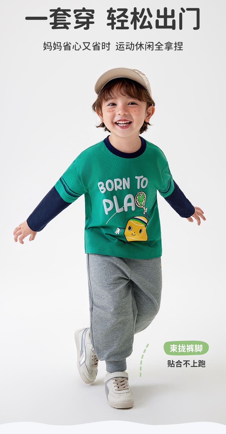 【5A抑菌 两件套】【90-140】【MQDmini】男童春秋假两件长袖T恤长裤套装