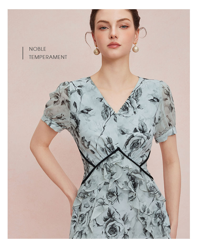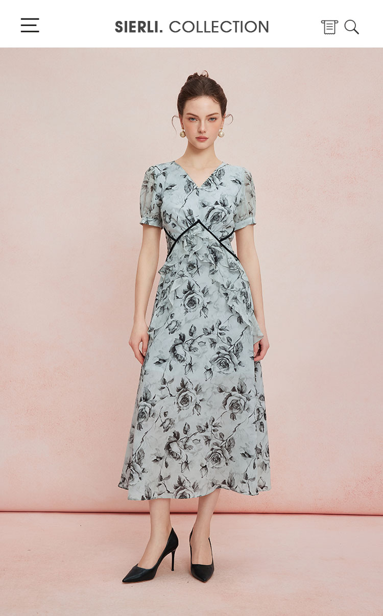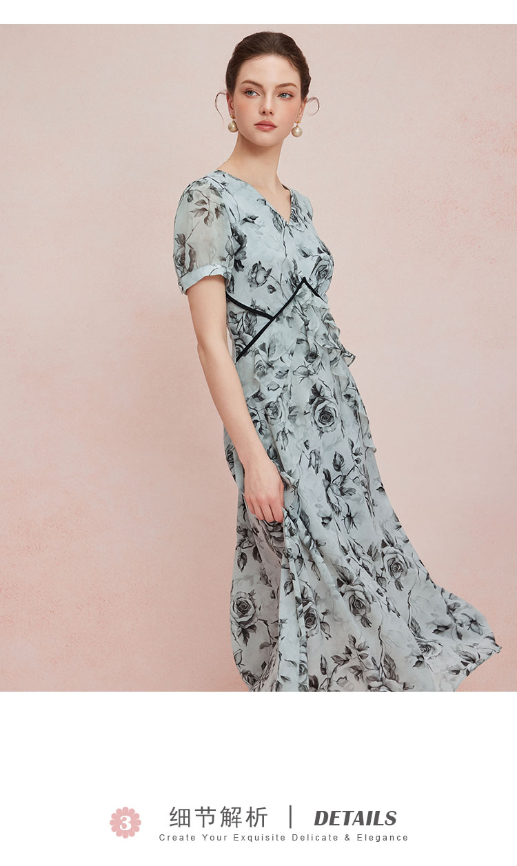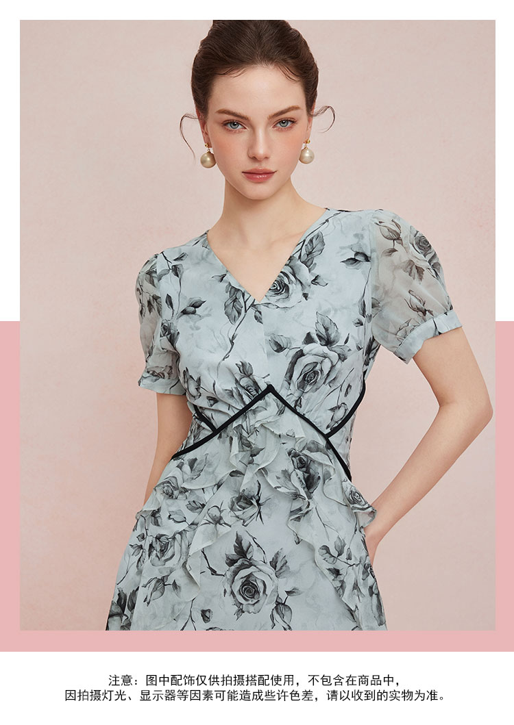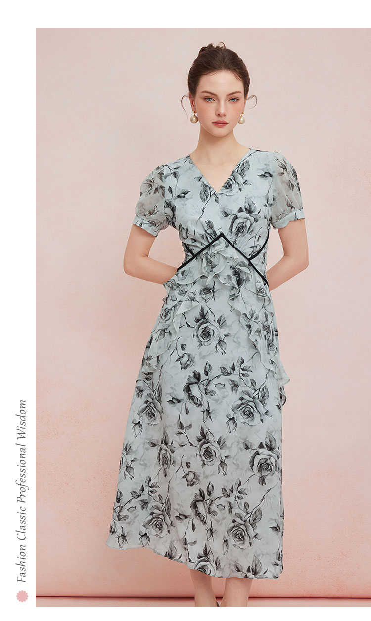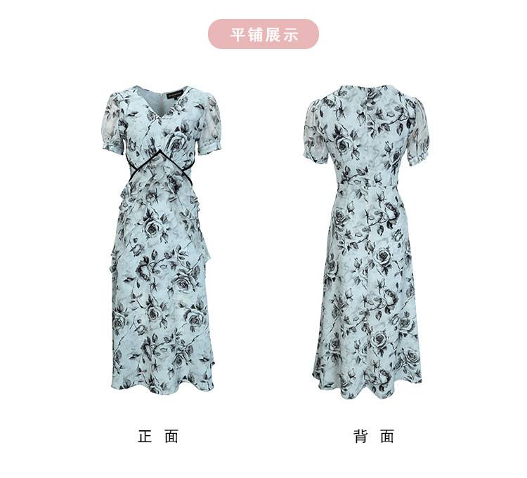 QF887斯尔丽25新款法式浪漫高腰节分割线太阳摆荷叶边显瘦出游连衣裙